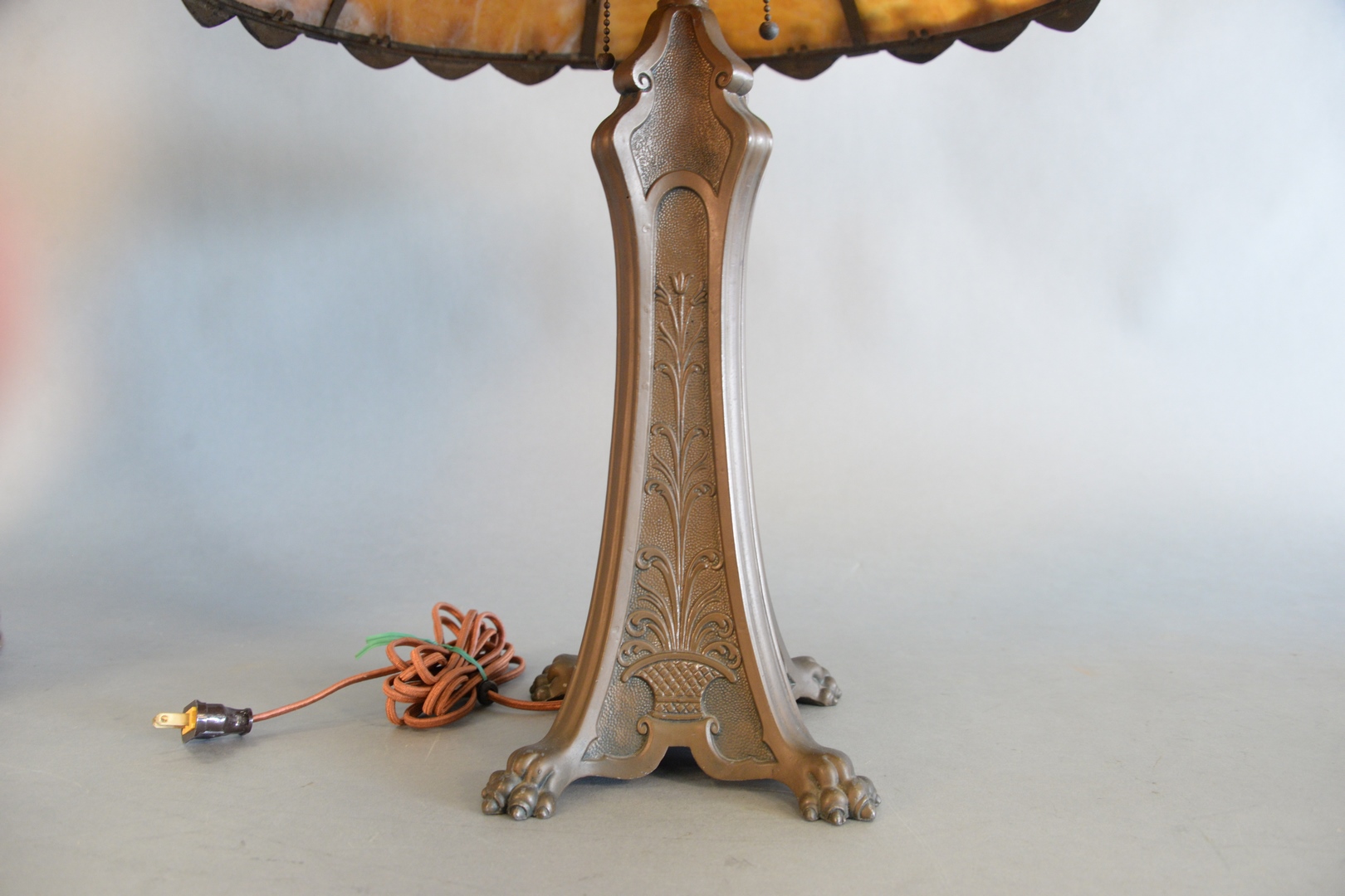 Lot 559: Caramel Panel Shade Table Lamp base with claw feet height 22 inches, diameter 20 1/2 inches Provenance: Thirty-five year collection …