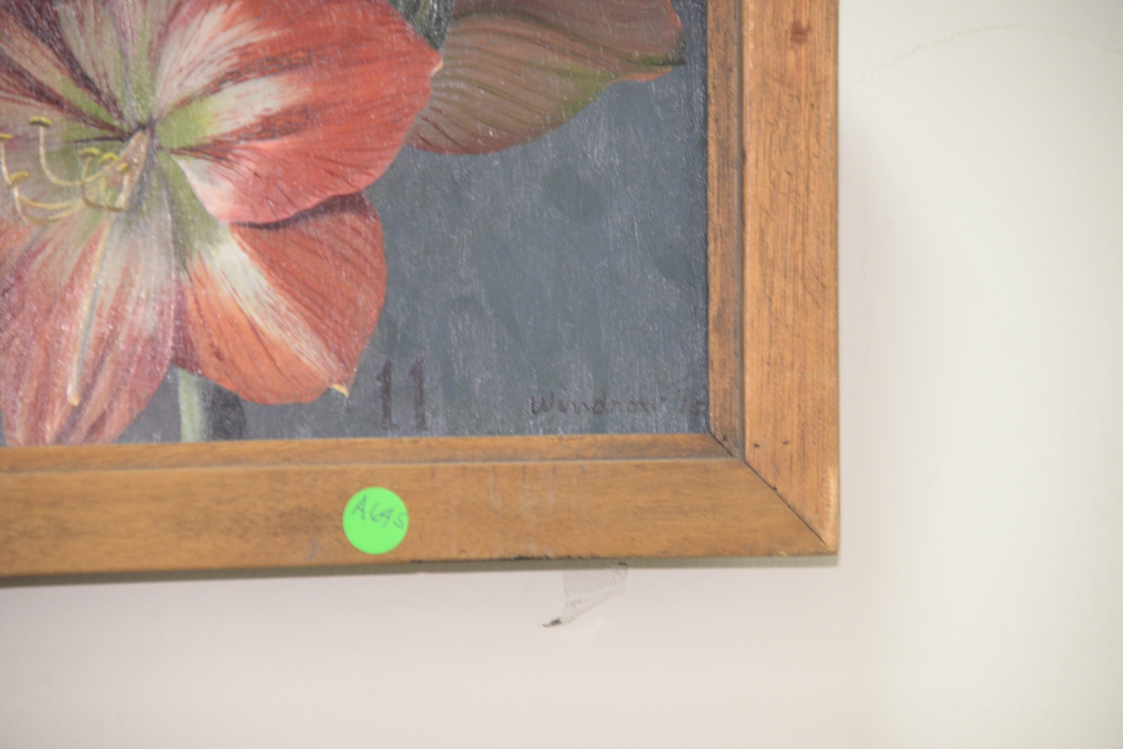 Lot 559: Patricia Hope Windrow (American, 20th century), Flowering Amaryllis, oil on board, signed and dated lower right “Windrow 78″, signed, titled and dated on the reverse, 5 1/2″ x 41”, having a Belanth Gallery label adhered to the reverse.