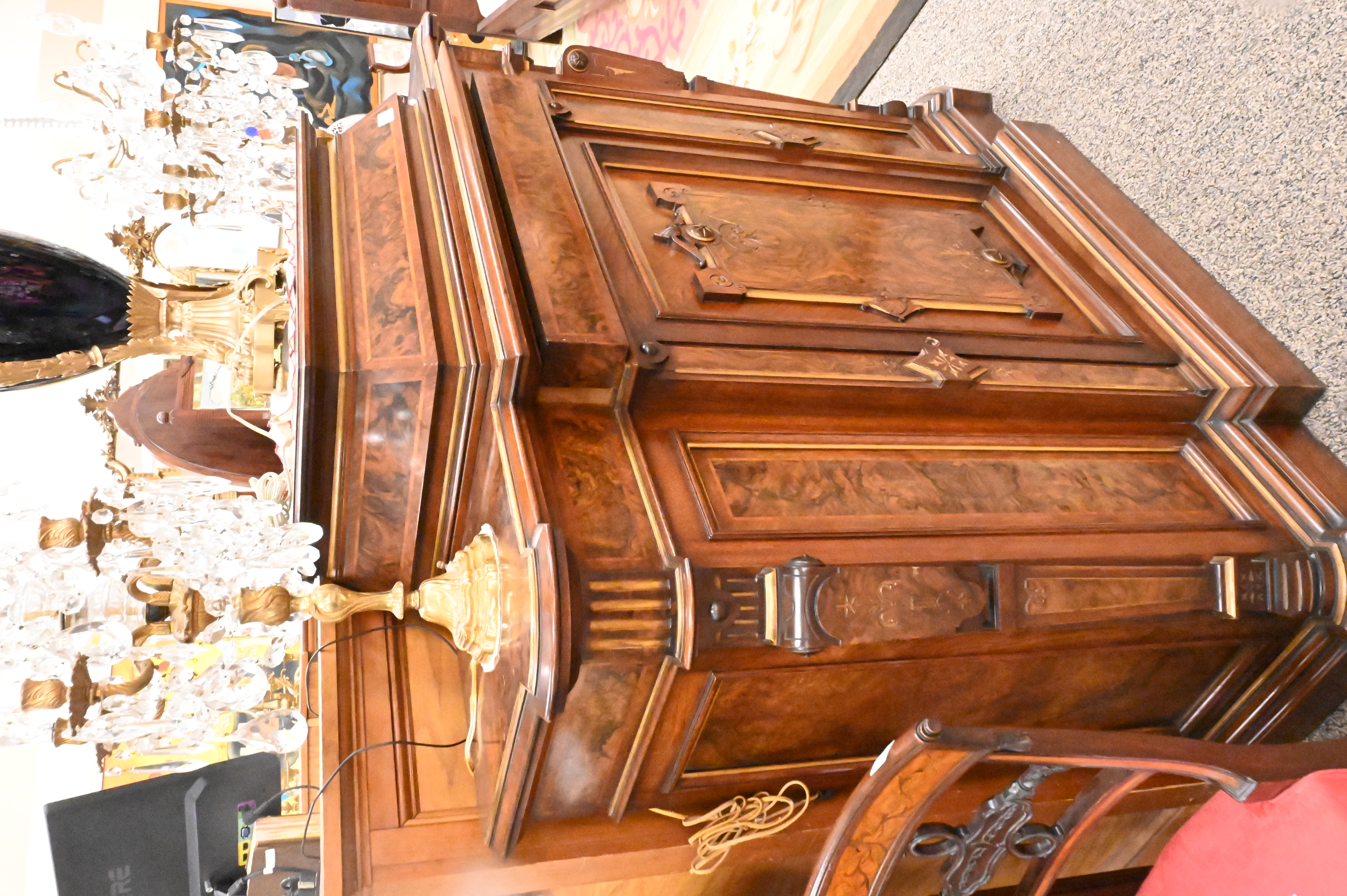 Lot 559: Renaissance Revival Walnut and Burl Walnut Side Cabinet