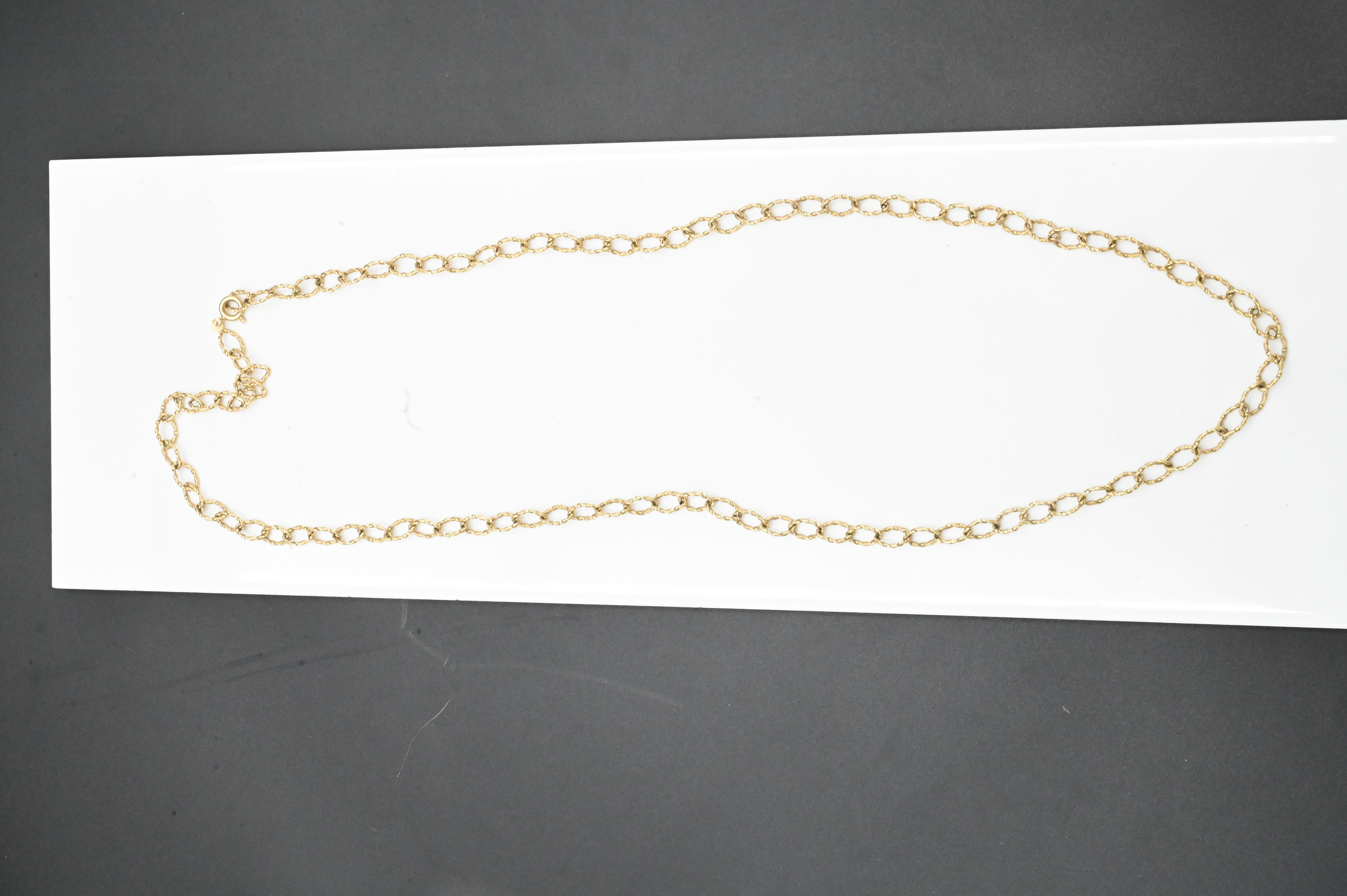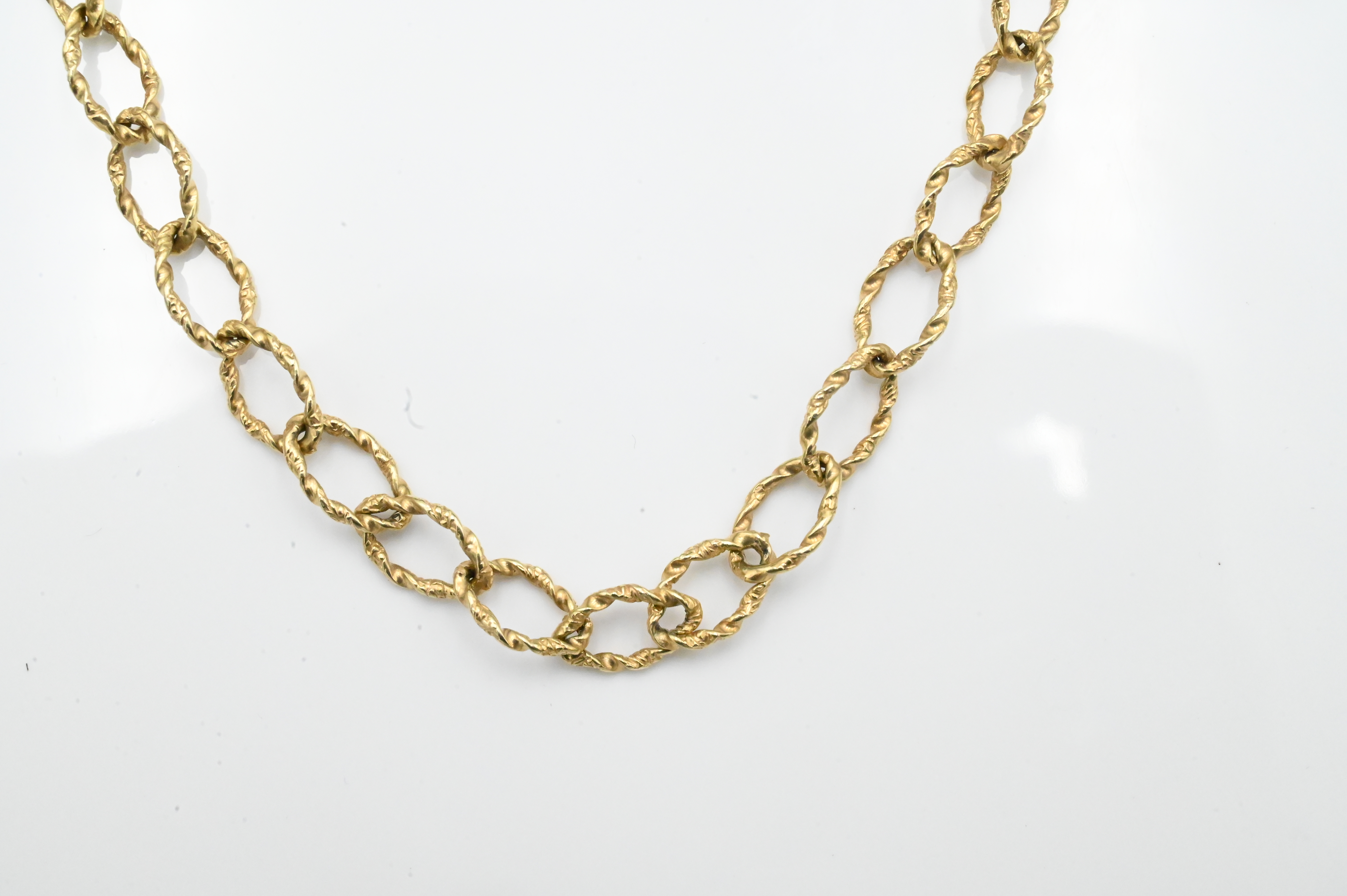 UNOAERRE 14 Karat Yellow Gold Chain having textured links marked UNO-A-ERRE 14K length 35 inches, 42.2 grams Condition: good condition