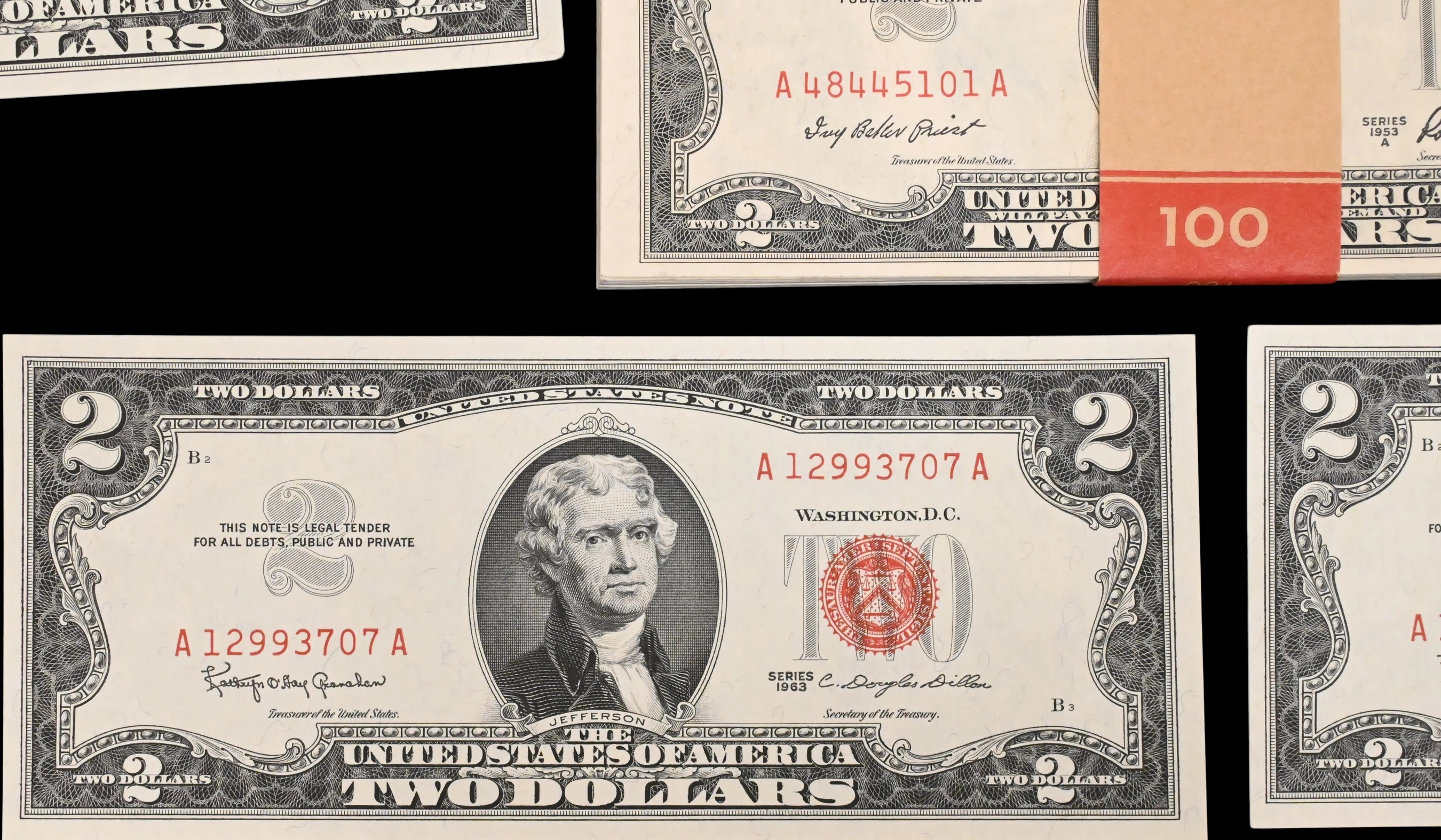 Lot 56: 50 Each FR1510 1953-A Red Seal Crisp UNC $2 Dollar Bills