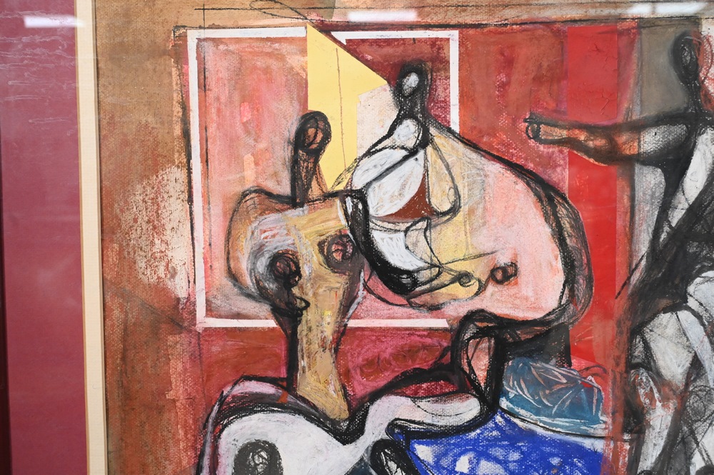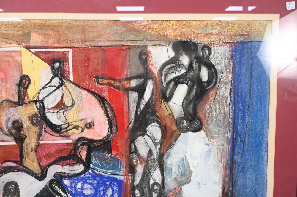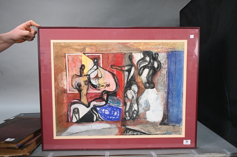 Lot 56: Arpad Kovacs (Romania b. 1948), abstract figures, mixed media, signed lower left “Kovacs”, 19″ x 26 1/2″.
