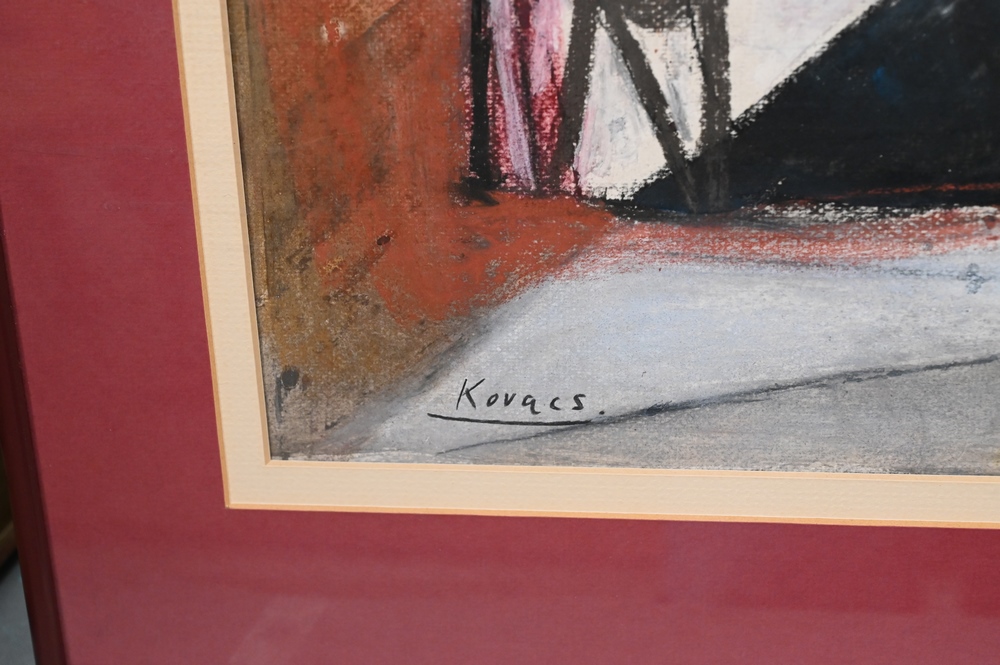 Arpad Kovacs (Romania b. 1948), abstract figures, mixed media, signed lower left “Kovacs”, 19″ x 26 1/2″.