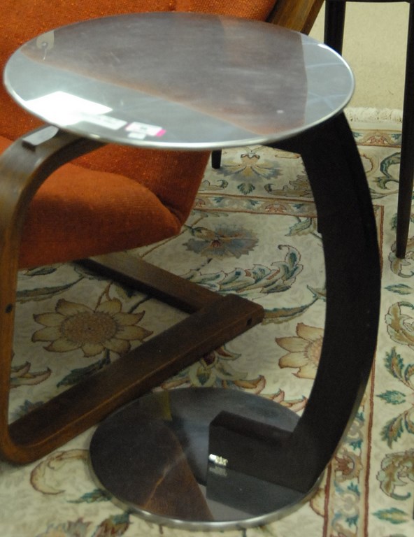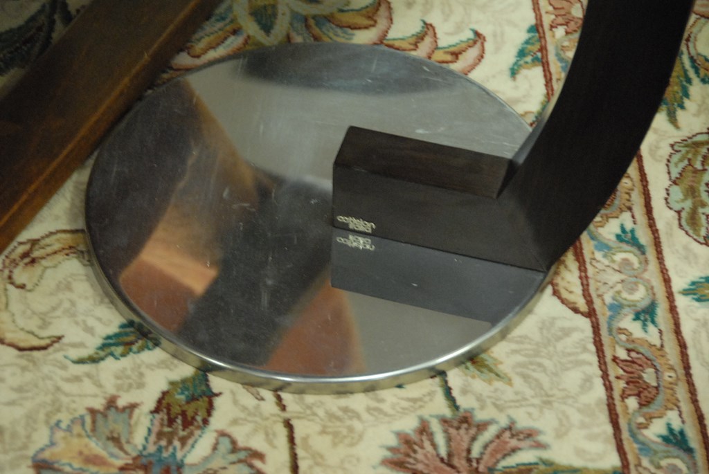 Cattelan Italia zen chrome and wood round side table, ht. 23in. dia. 18in.