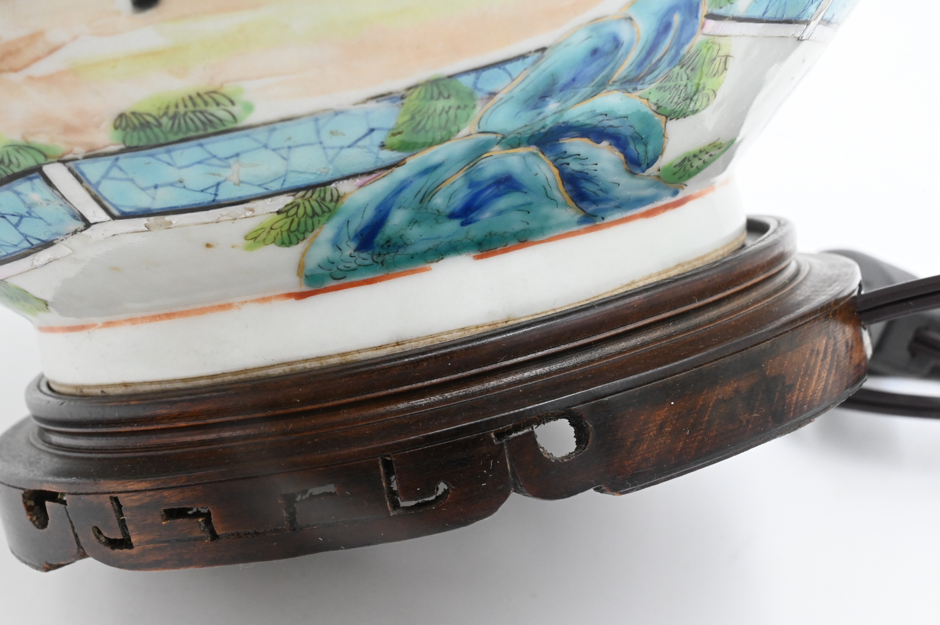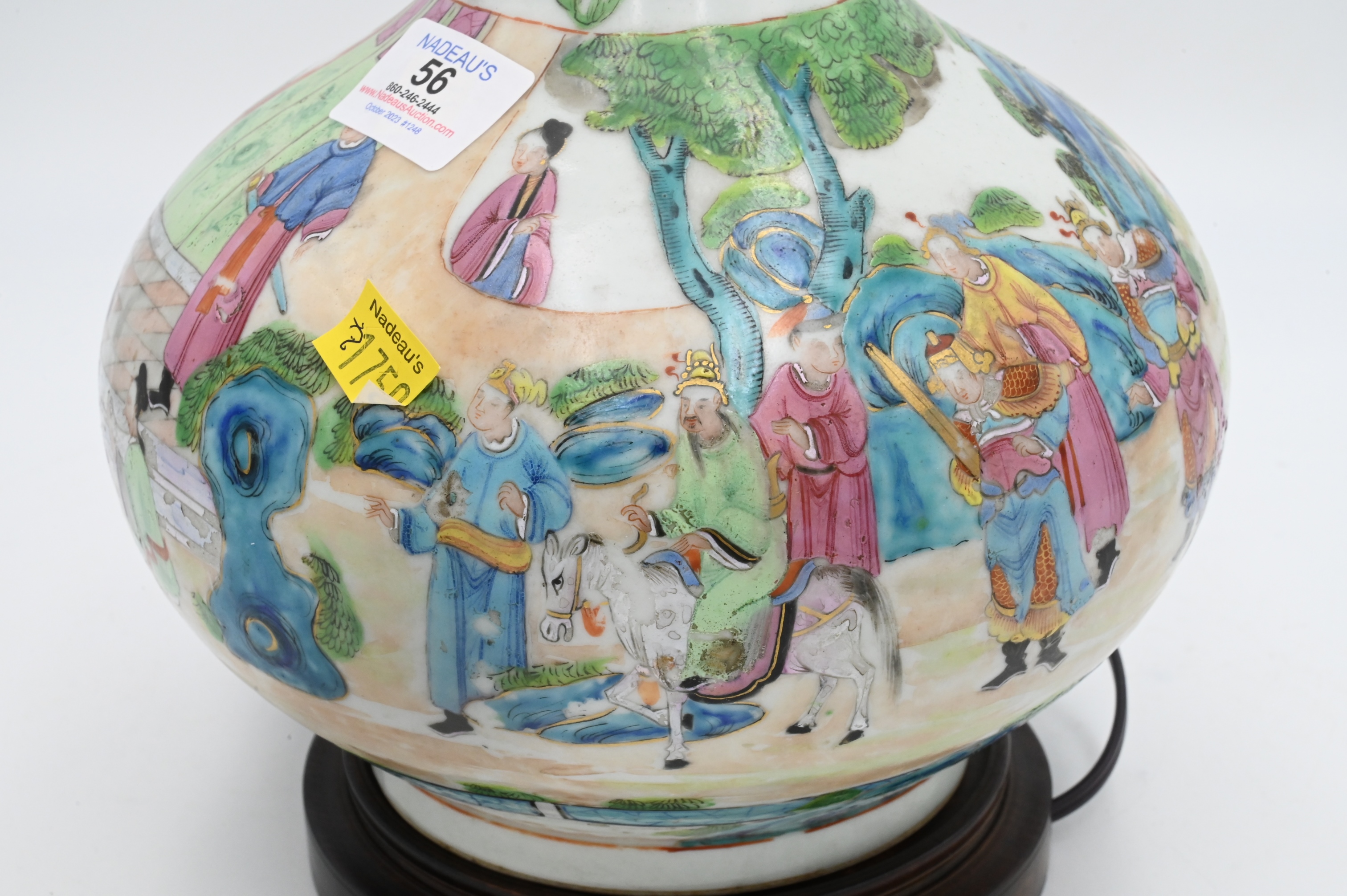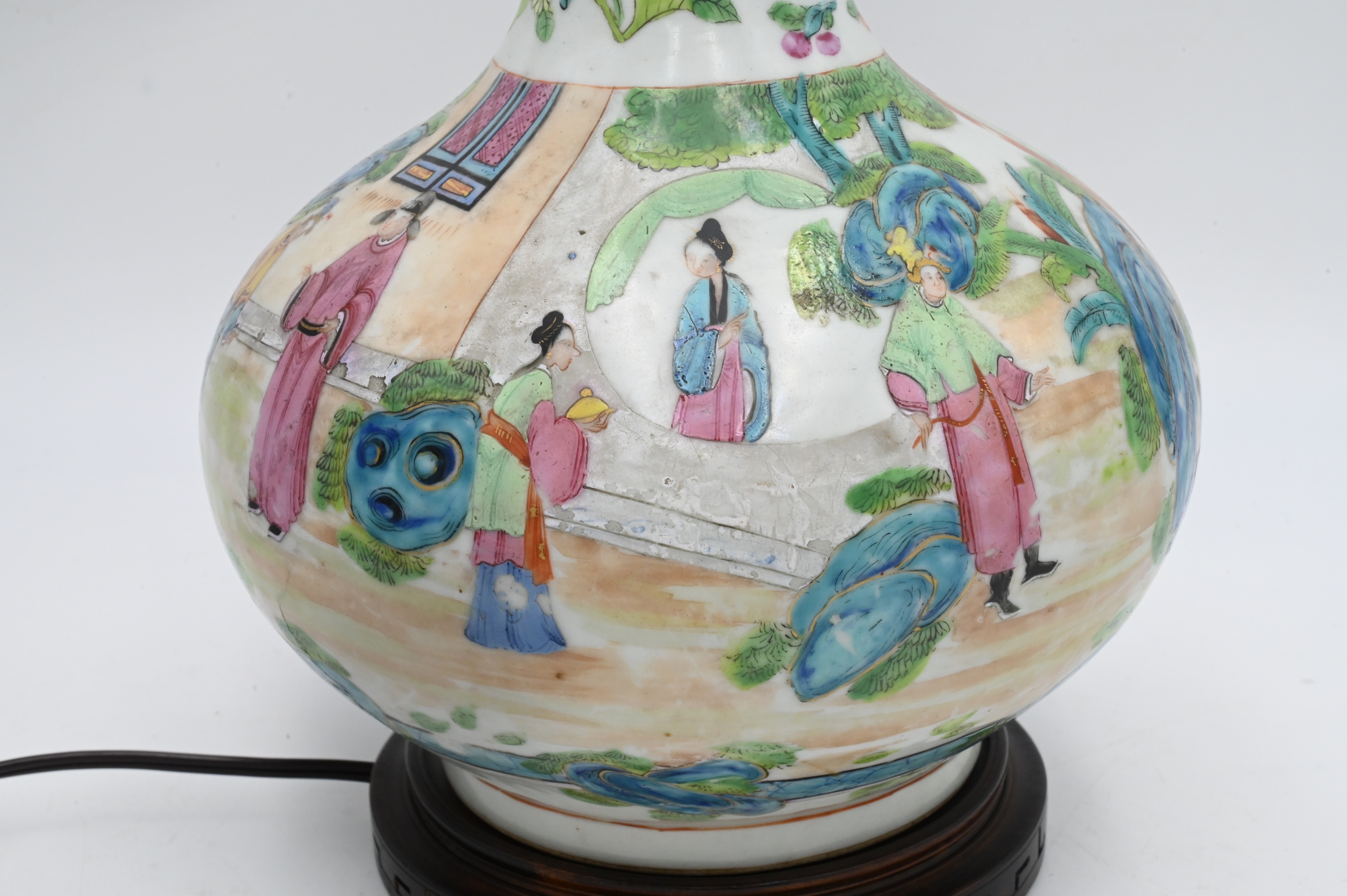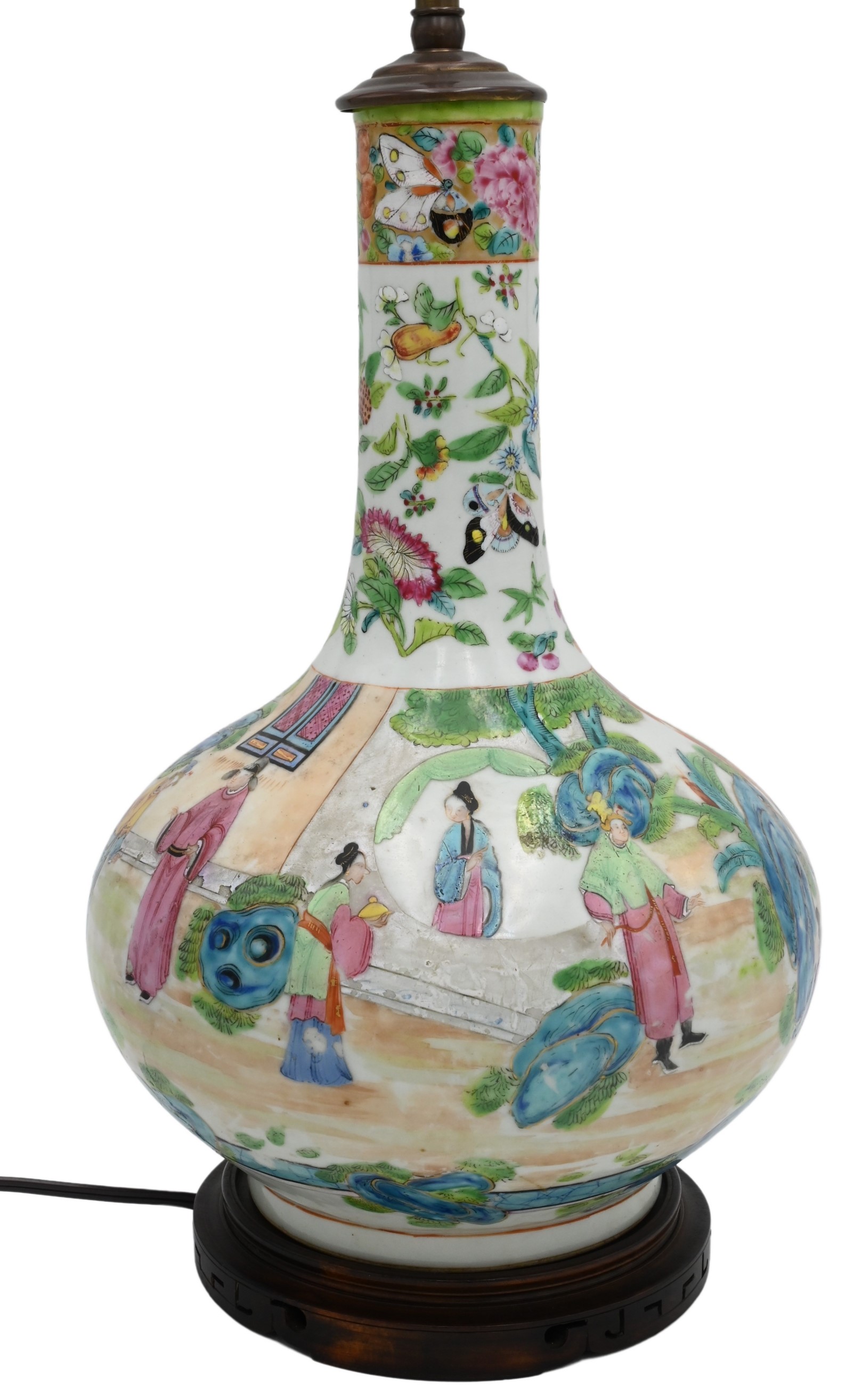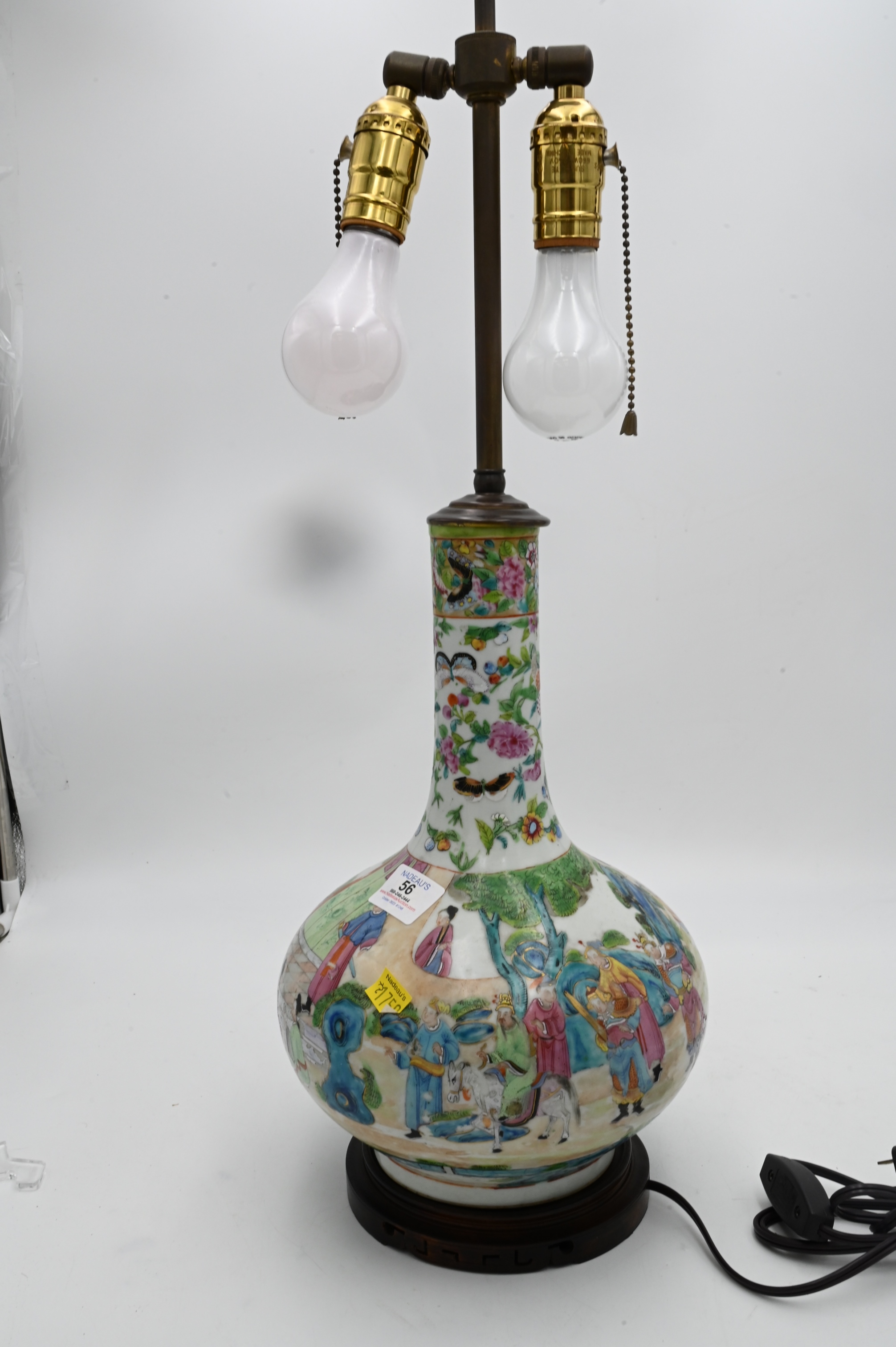 Lot 56: Chinese Export Porcelain Mandarin Palette Bottle Vase Fitted as a Table Lamp