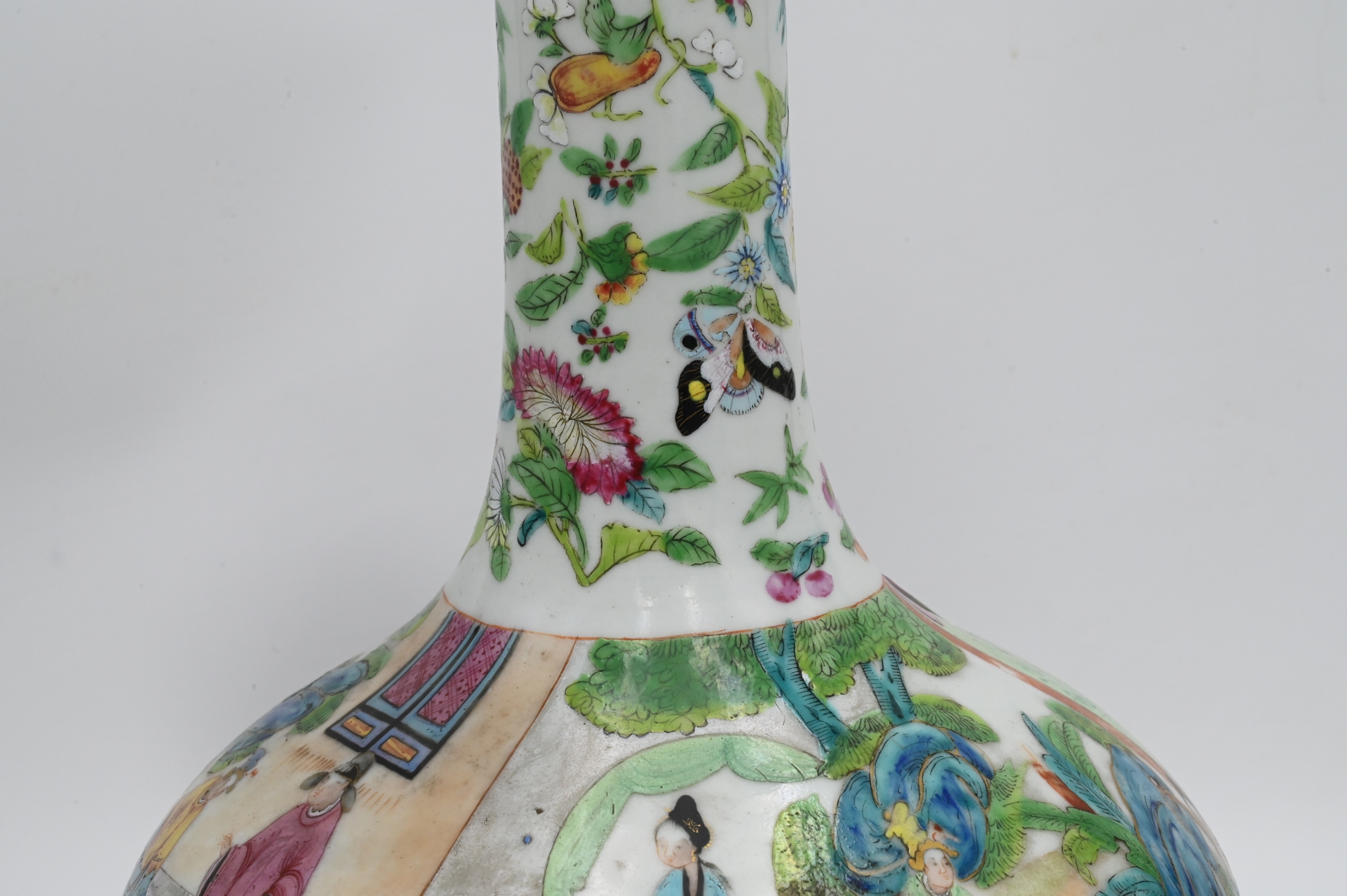 Chinese Export Porcelain Mandarin Palette Bottle Vase Fitted as a Table Lamp