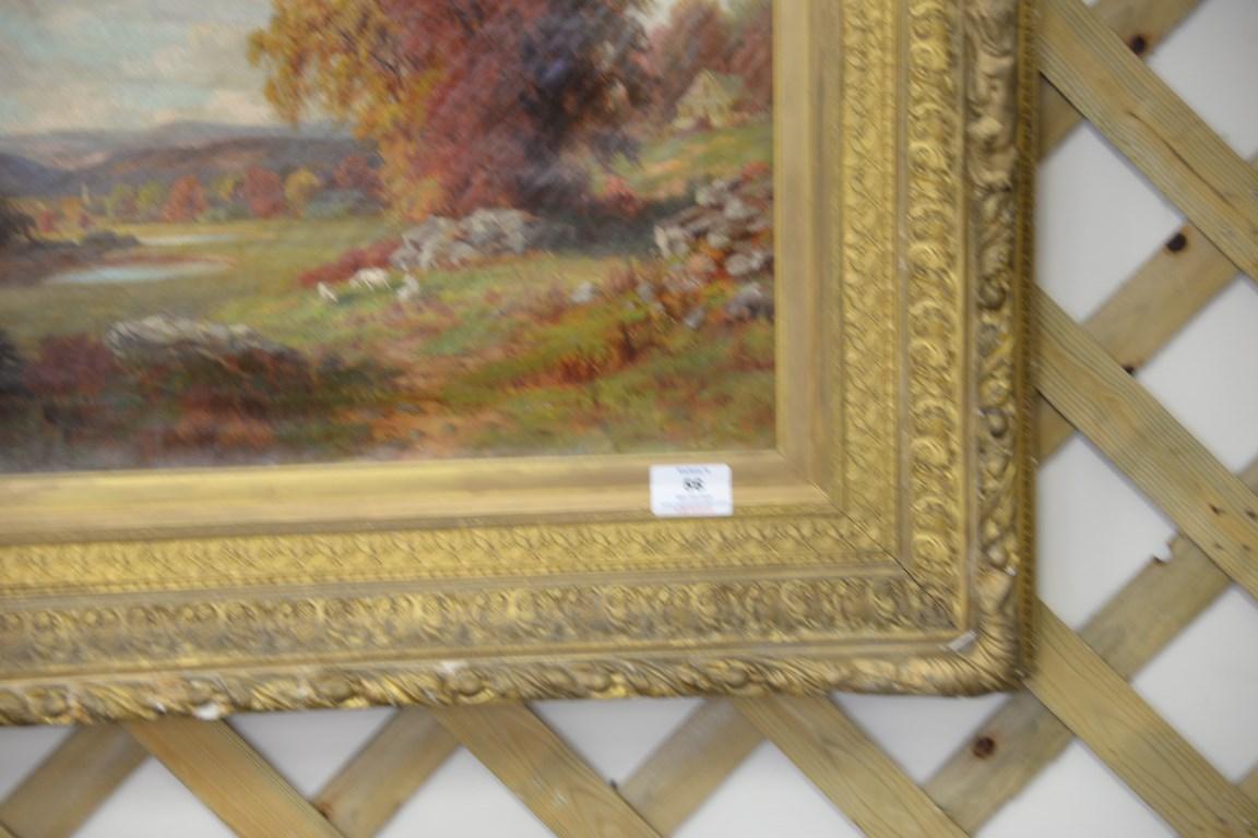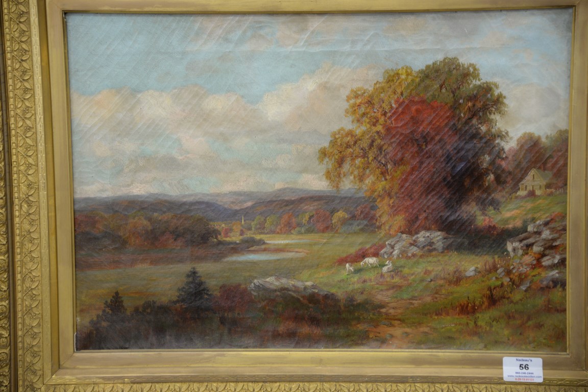 Fall landscape oil on canvas in gilt frame, 19th century, 14 x 20.