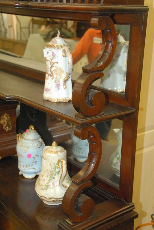 Mahogany credenza with butler’s desk and mirrored gallery back.