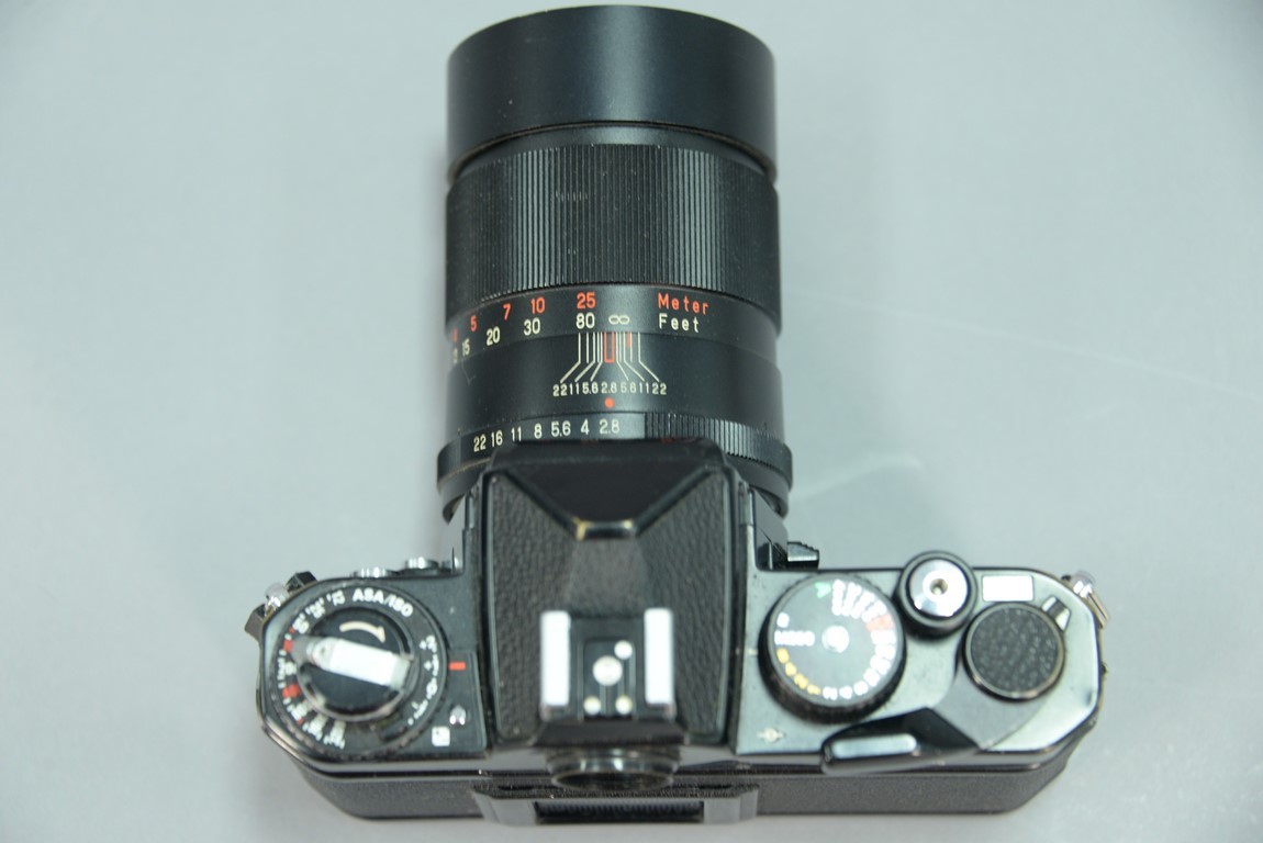 Nikon camera lot including Nikon F4 missing battery door 2173394 with 50/1.8 series E 2904015 and Nikon FE2 2552730 with Vivitar 135/2.8 28120116.