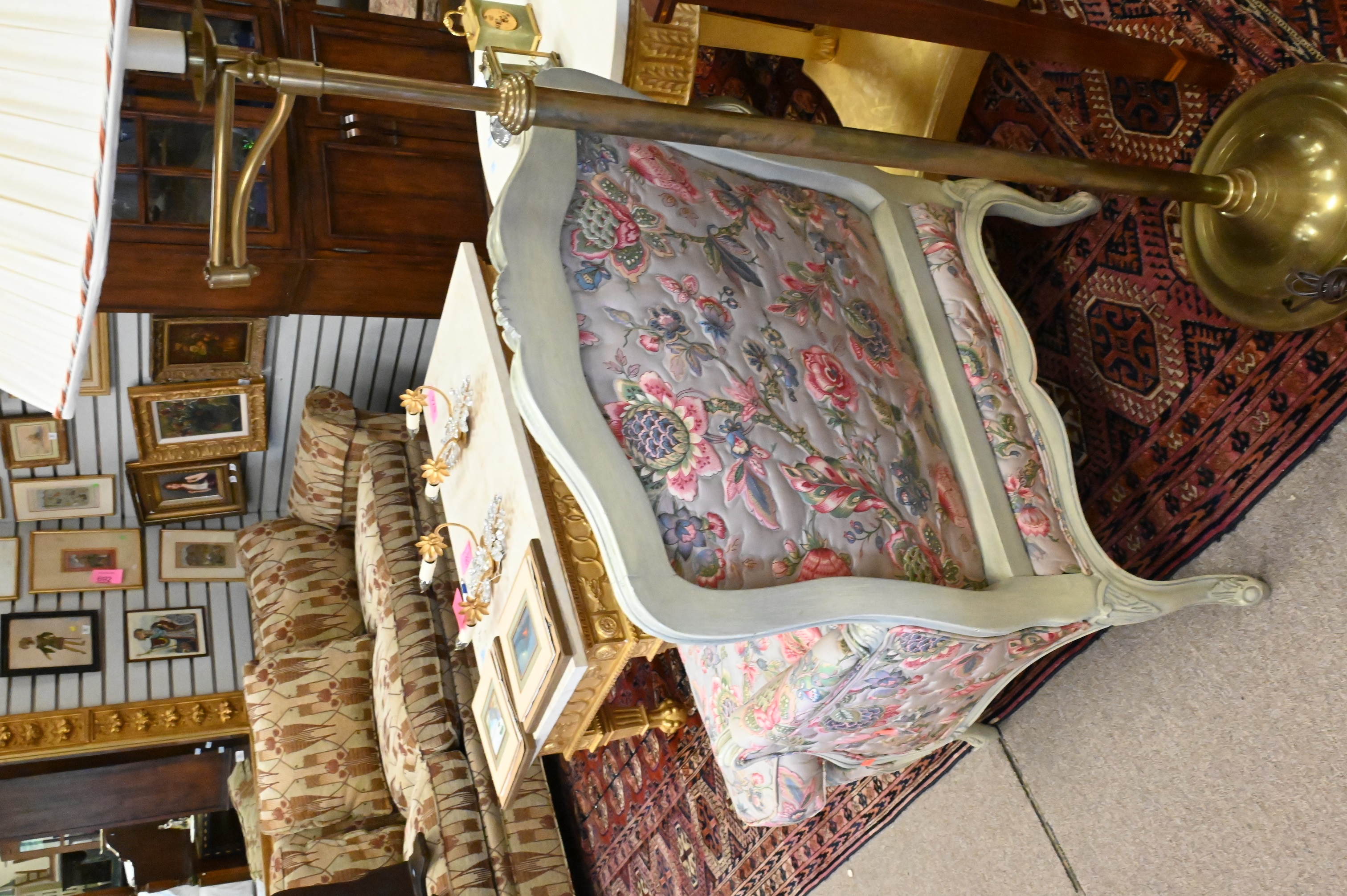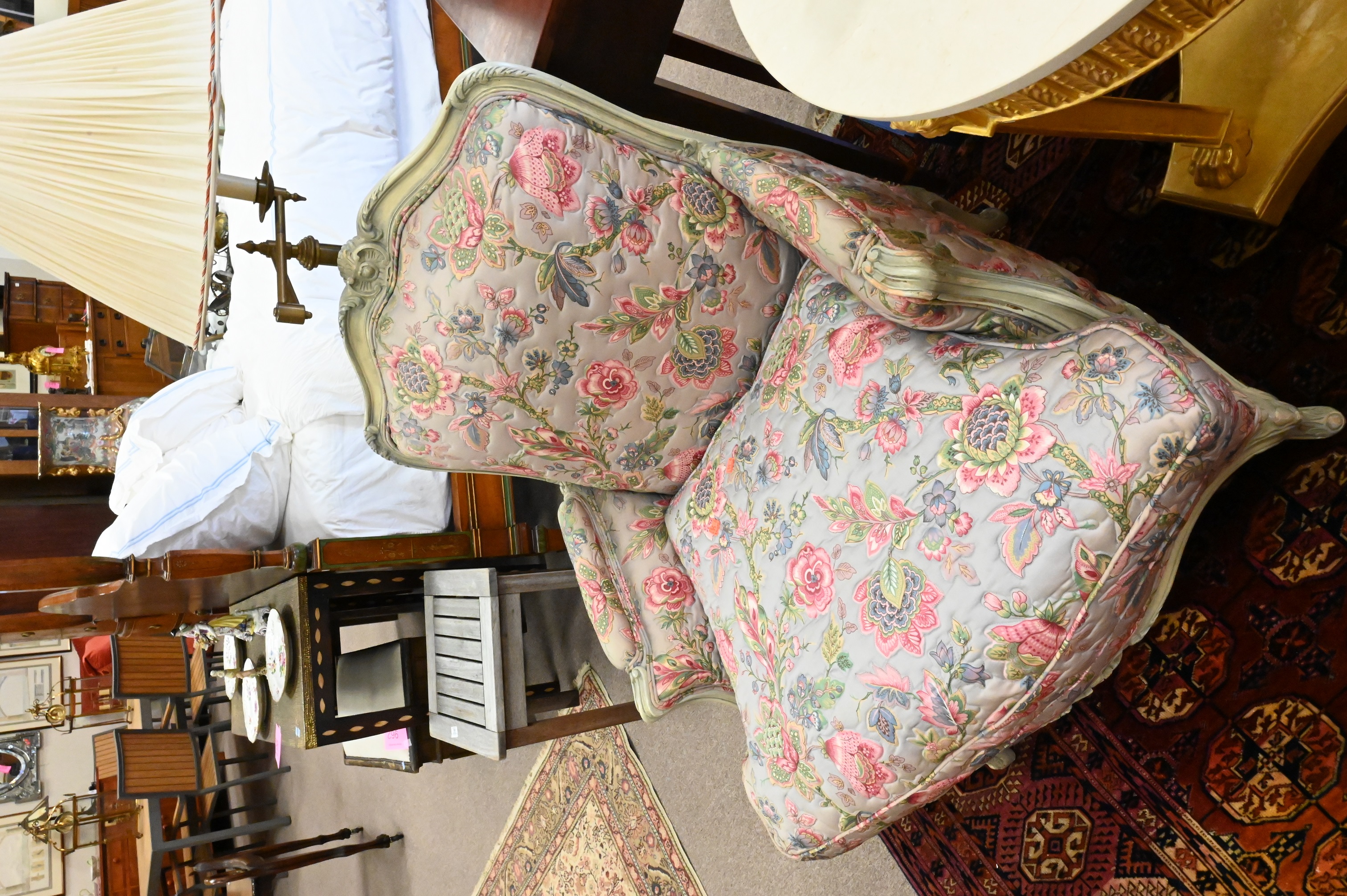 having custom quilted upholstery and grey frames, with Regency Decorators labels Mt. Vernon New York