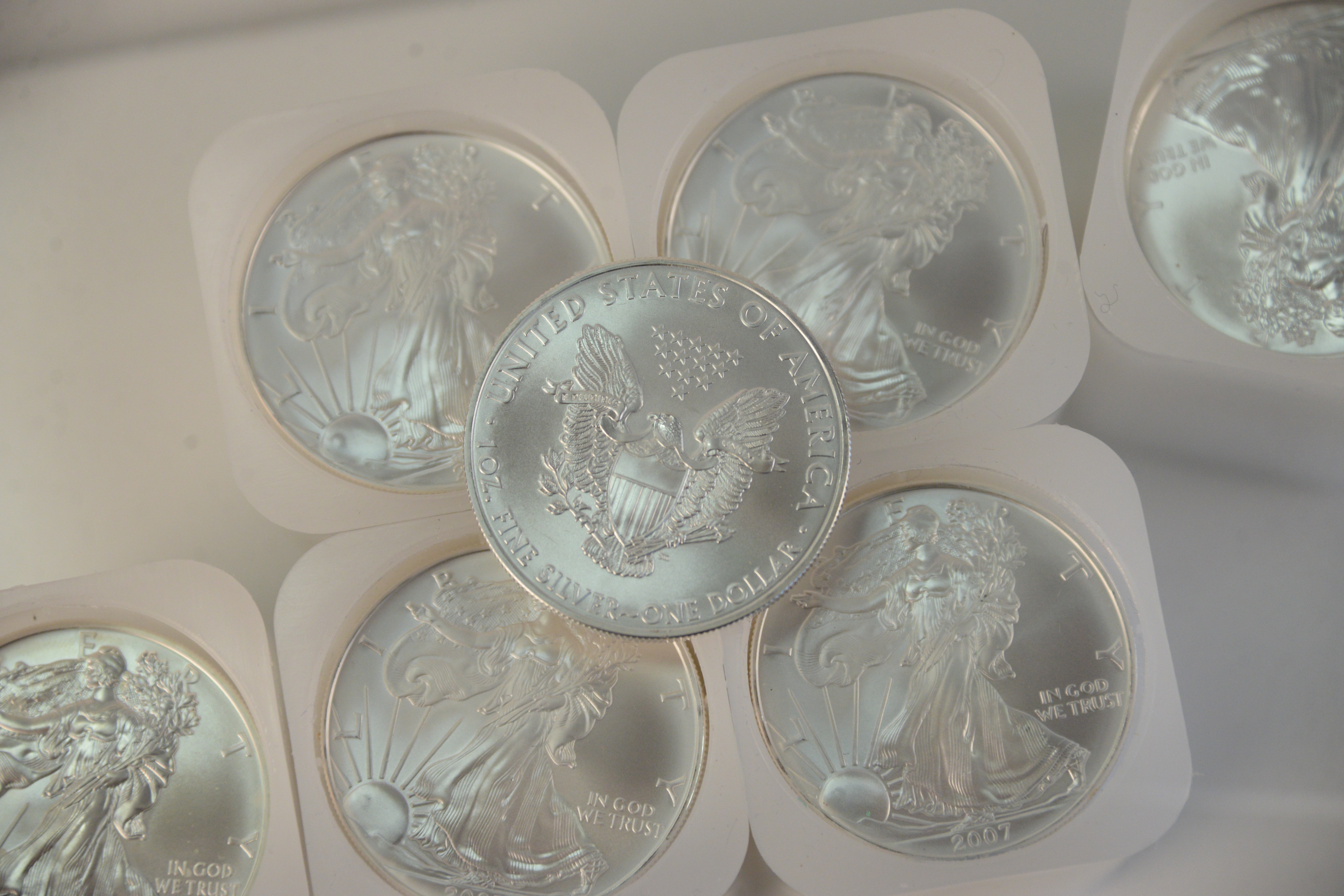 Six Rolls of Silver Eagles, 1 oz. each, 120 t.oz.