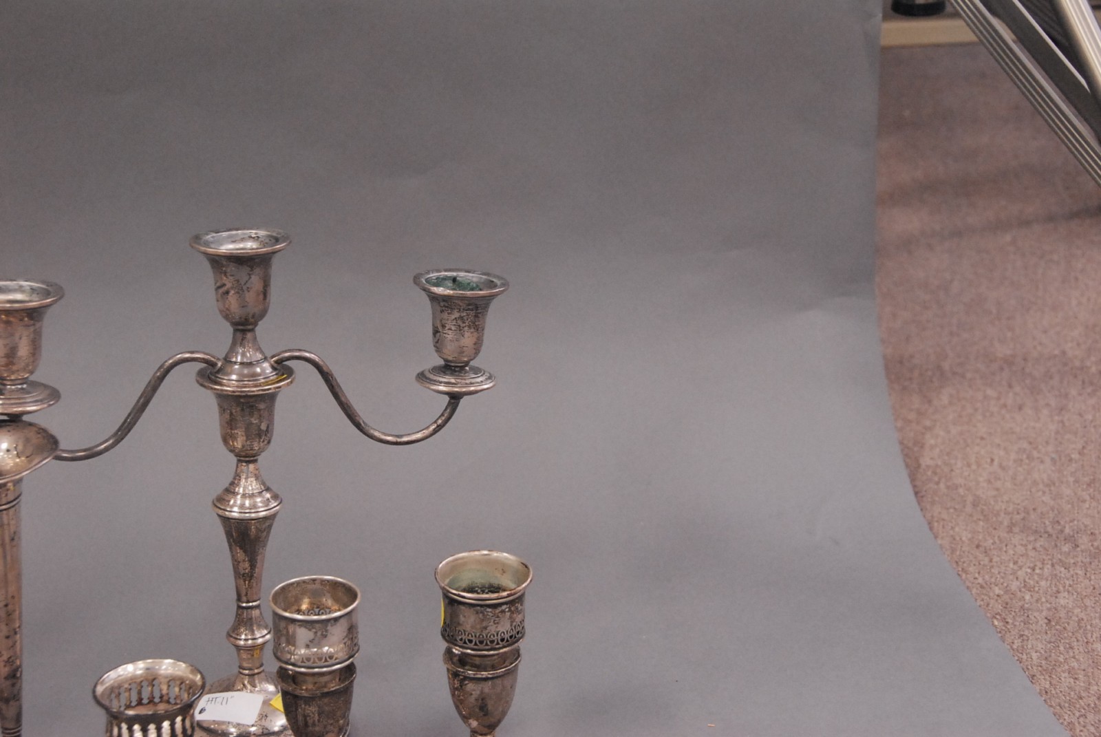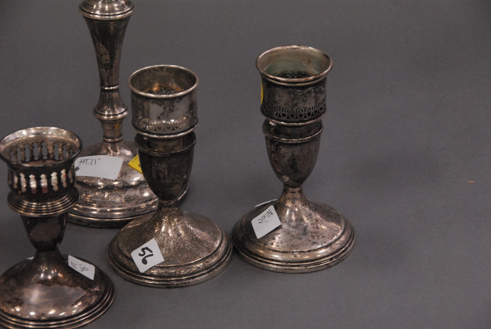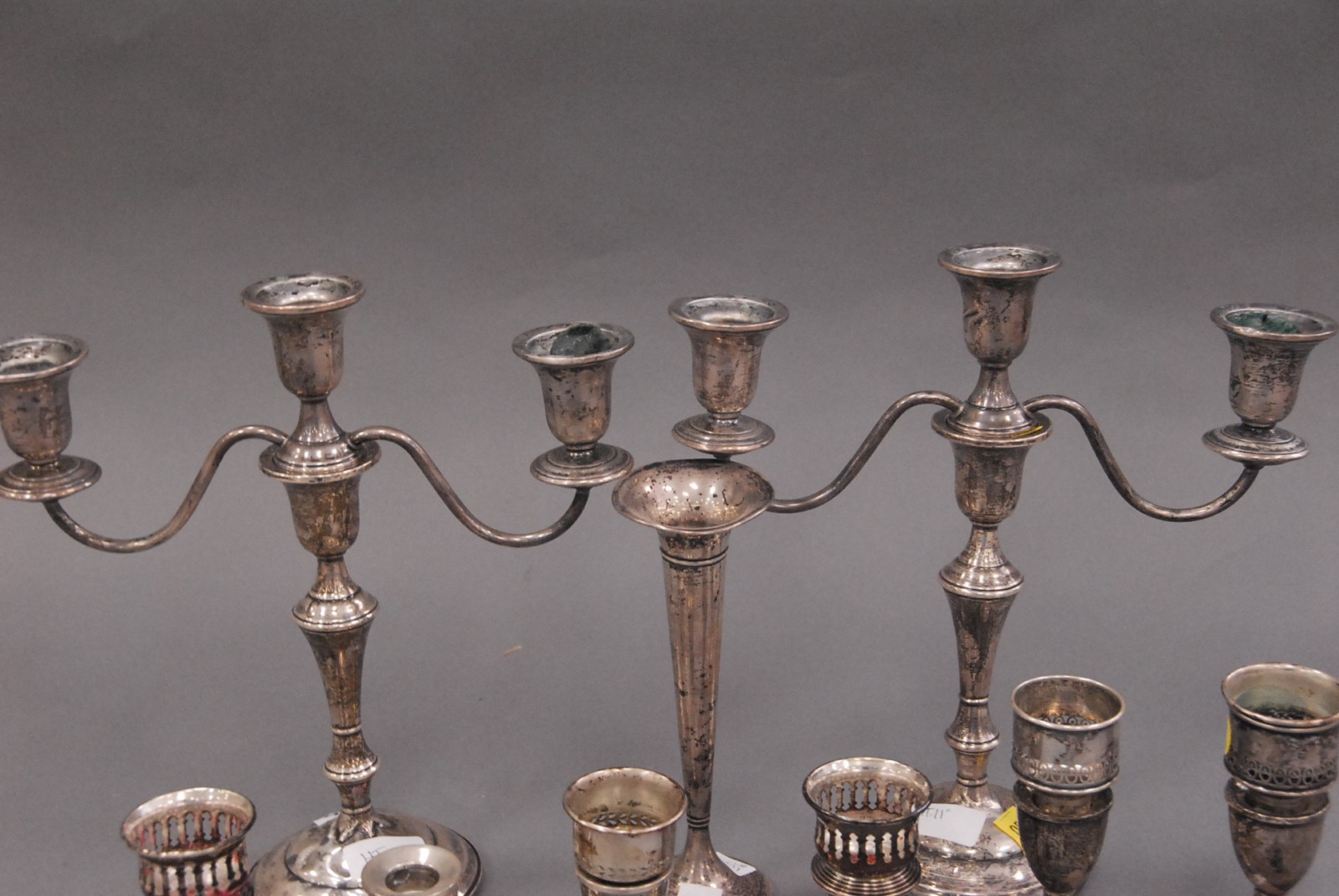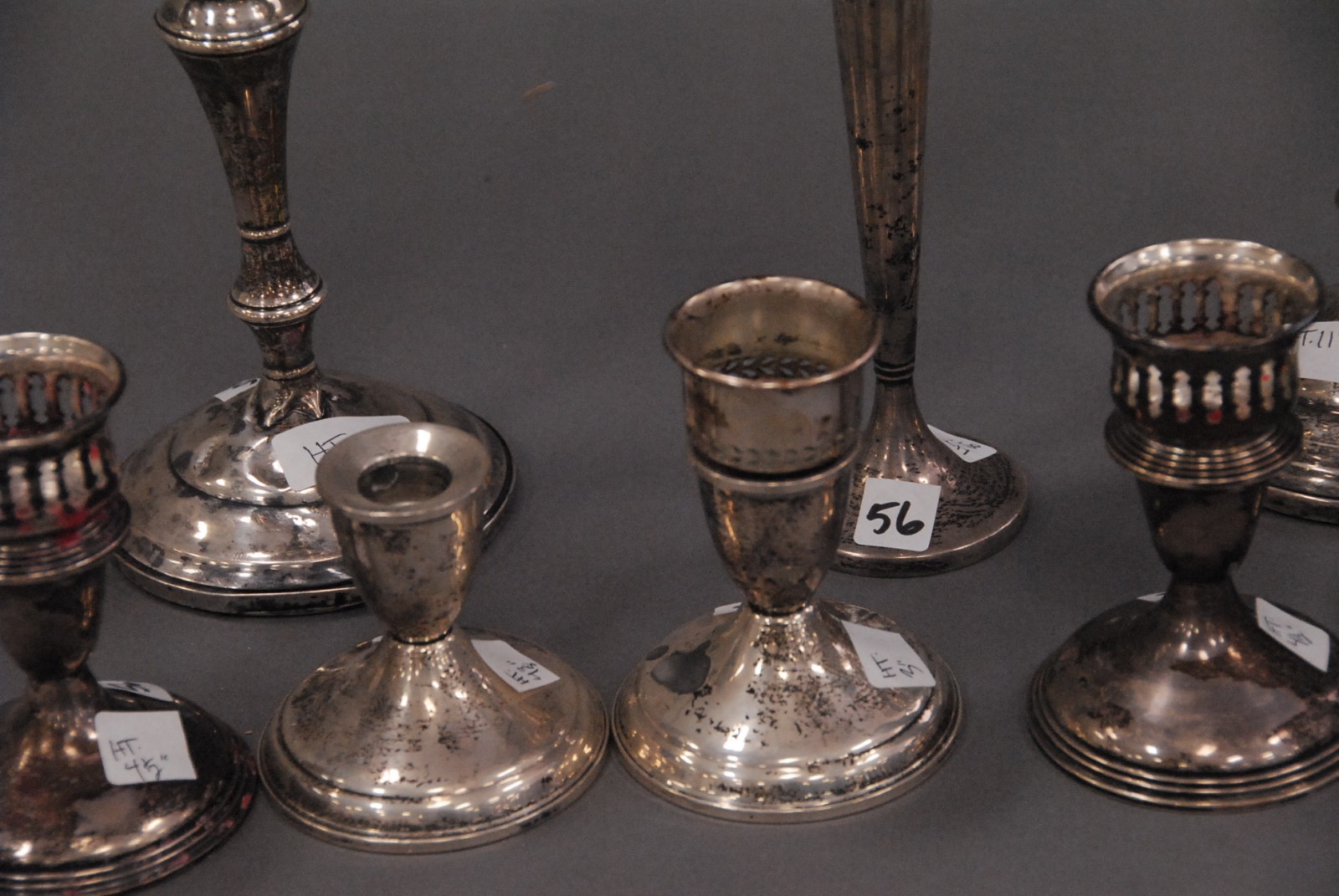 Sterling silver lot to include a pair of candelabra, 6 candlesticks and a sterling vase