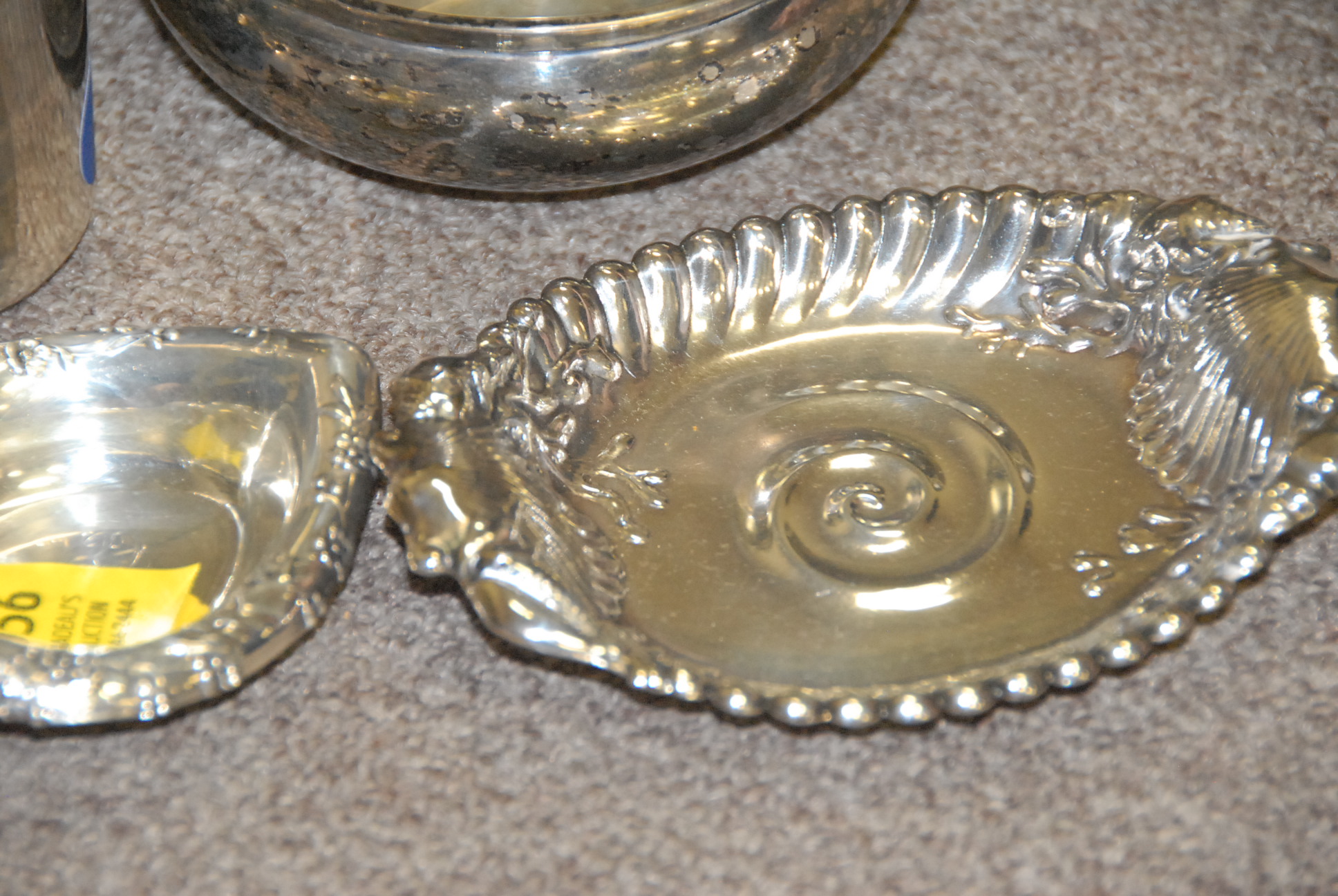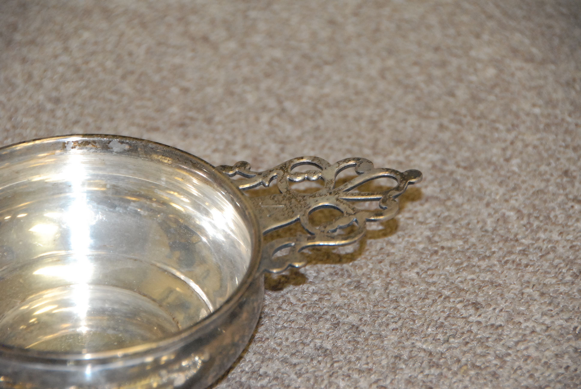 Sterling silver lot to include porringer, two heart shaped dishes, cup, and small dish, 11.2 t oz.