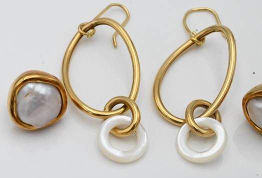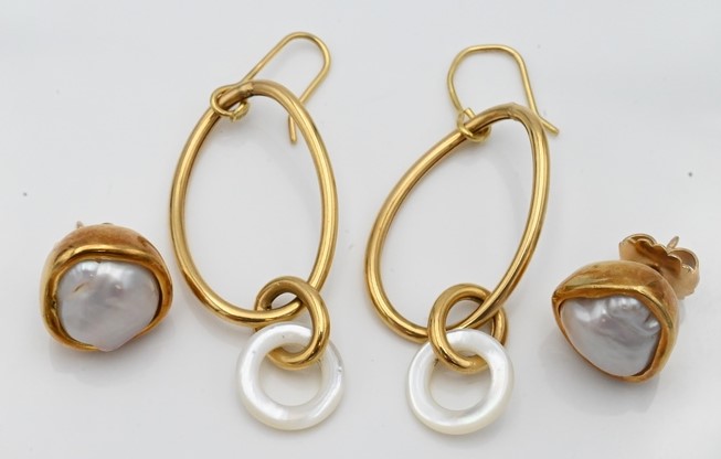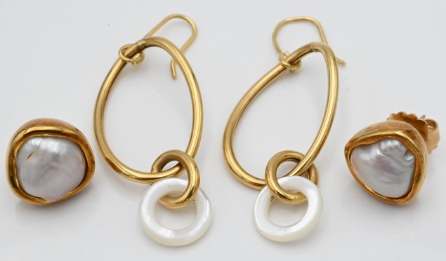 Lot 56: Two Pairs of 18 Karat Gold Earrings, to include loop marked 750 and a pair of 18 karat stud mounted with pearls, unmarked, total 17….