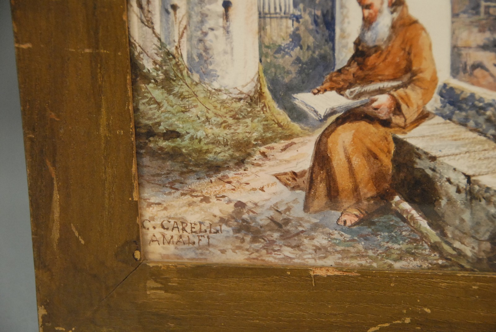 Consalvo Carelli 1818-1910 AMALFI COAST watercolor signed lower left C. Carelli 8 1/2 x 11 1/2