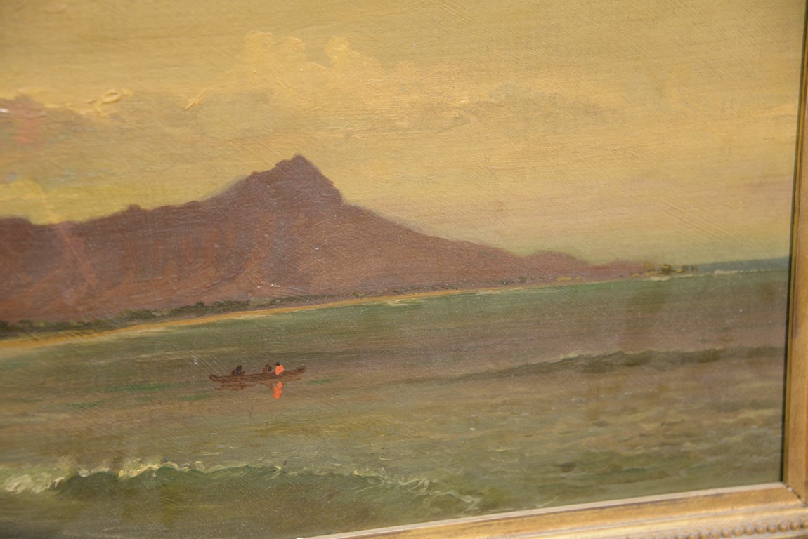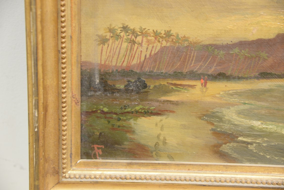 Frank Chamberlin Diamond Cove, Hawaii Waikiki Beach oil on panel initialed lower left: C.F. 11 3/4 x 20