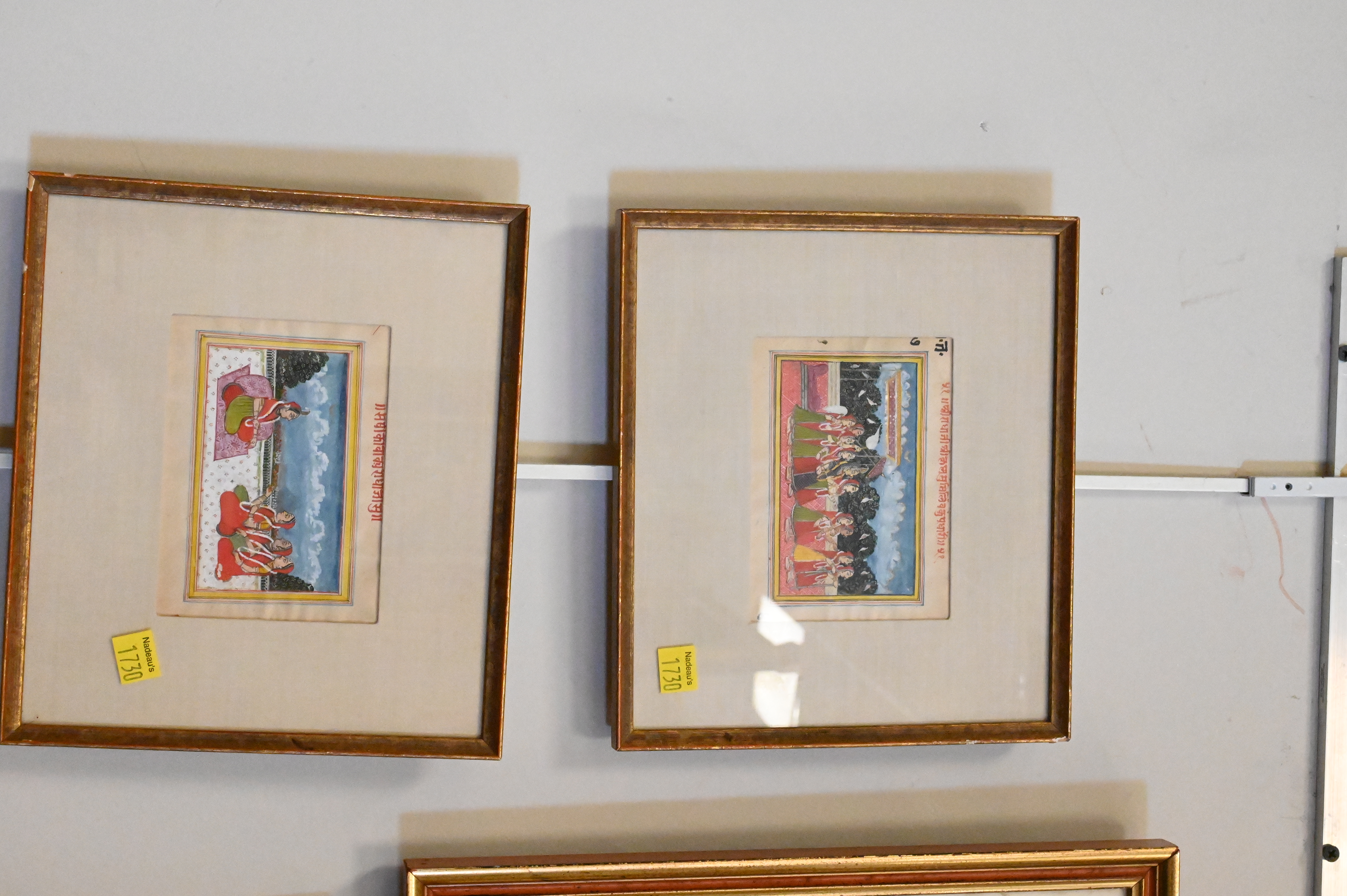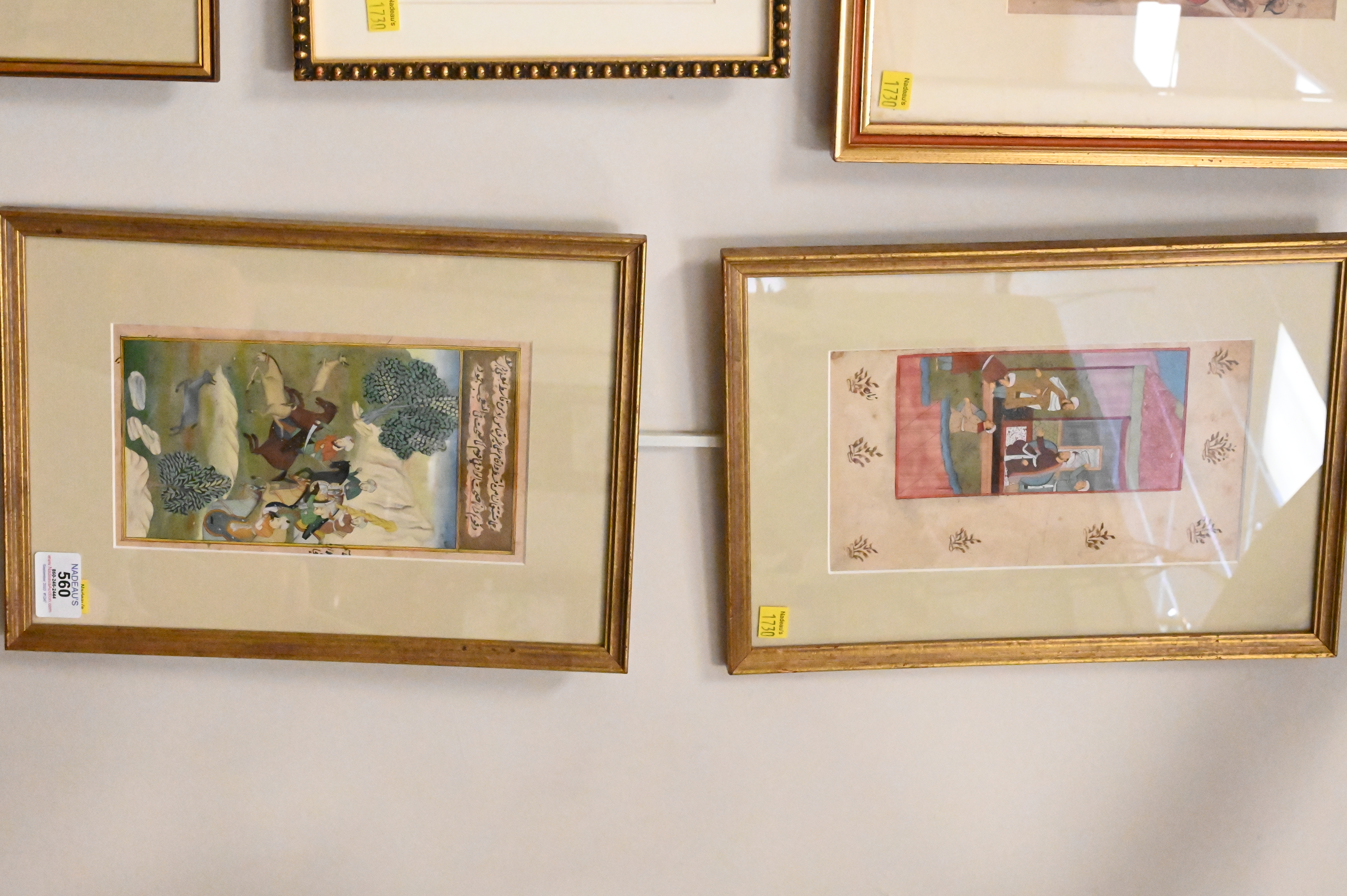 Group of Eight Indo-Persian Miniatures Gouaches on Paper, 17th century or later, to include Udaipur, Mewer School circa 1760, early Bikaer piece, etc.. largest 9 1/2″ x 5 1/2″