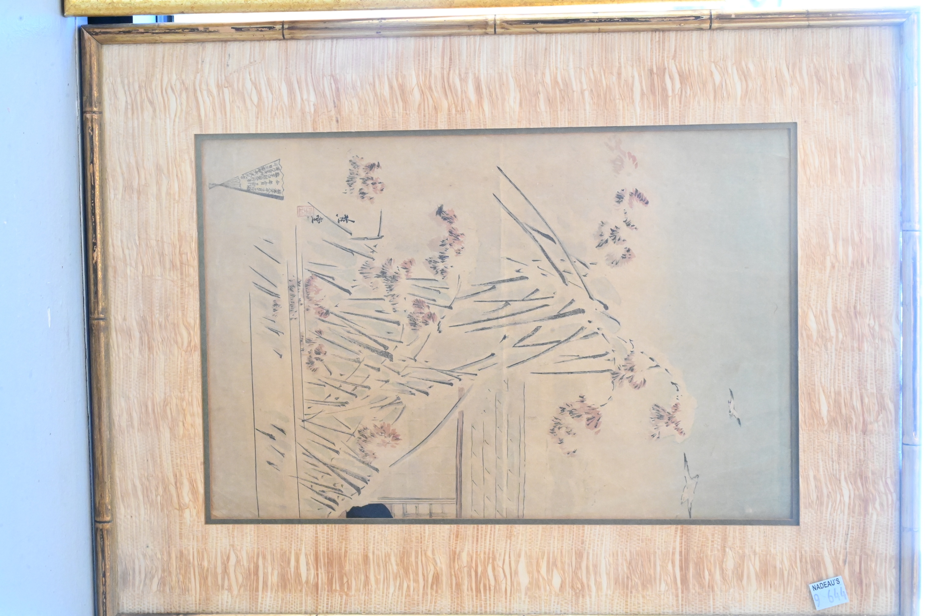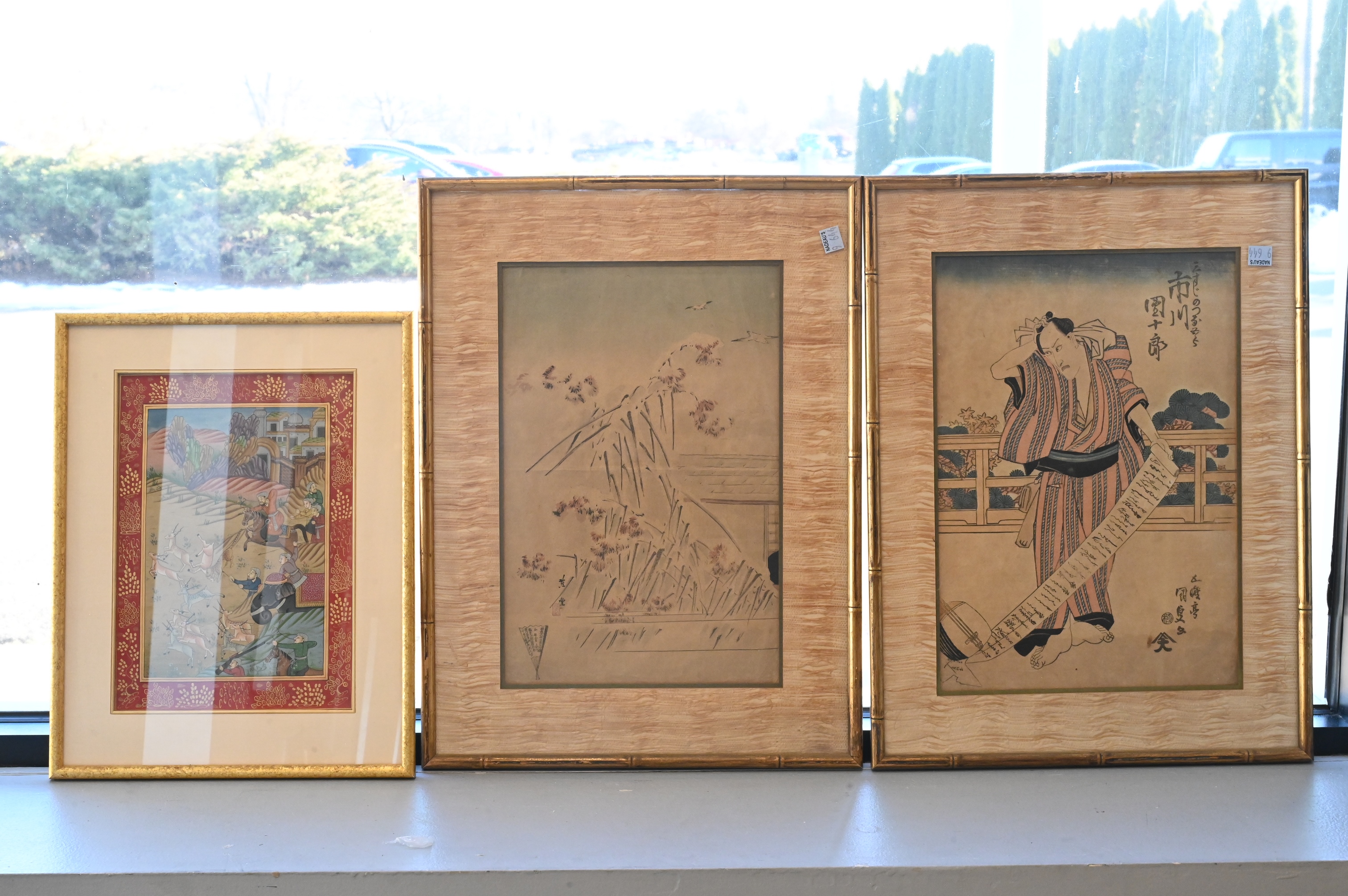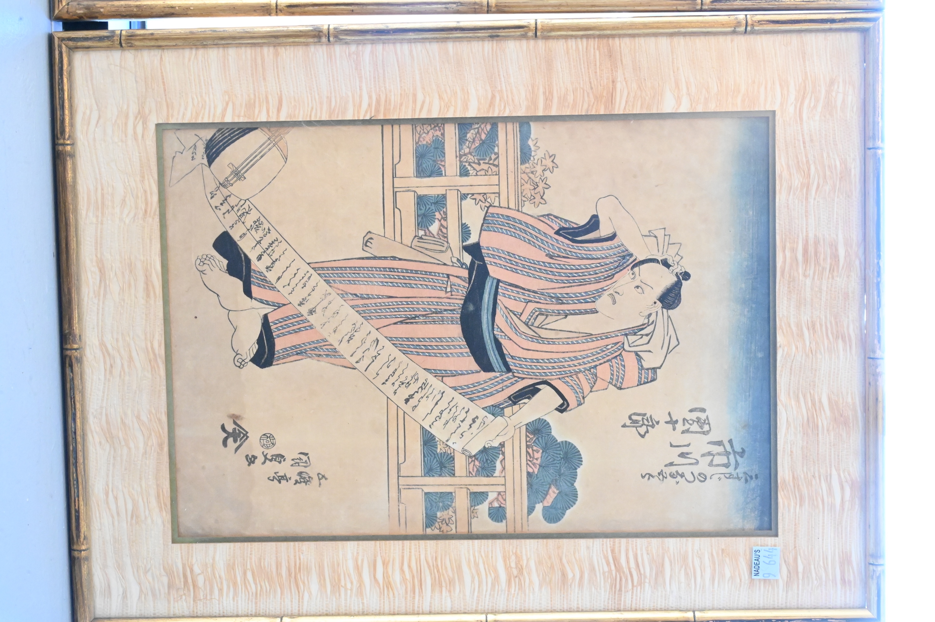 Two Japanese Woodblock Prints, Tokaido Gojusan-tsugi no Uchi, “Fifty-Three Stations of the Tokaido”, after Hiroshige by Goyo, circa 1915, station 6 and 48, each matted in contemporary frame