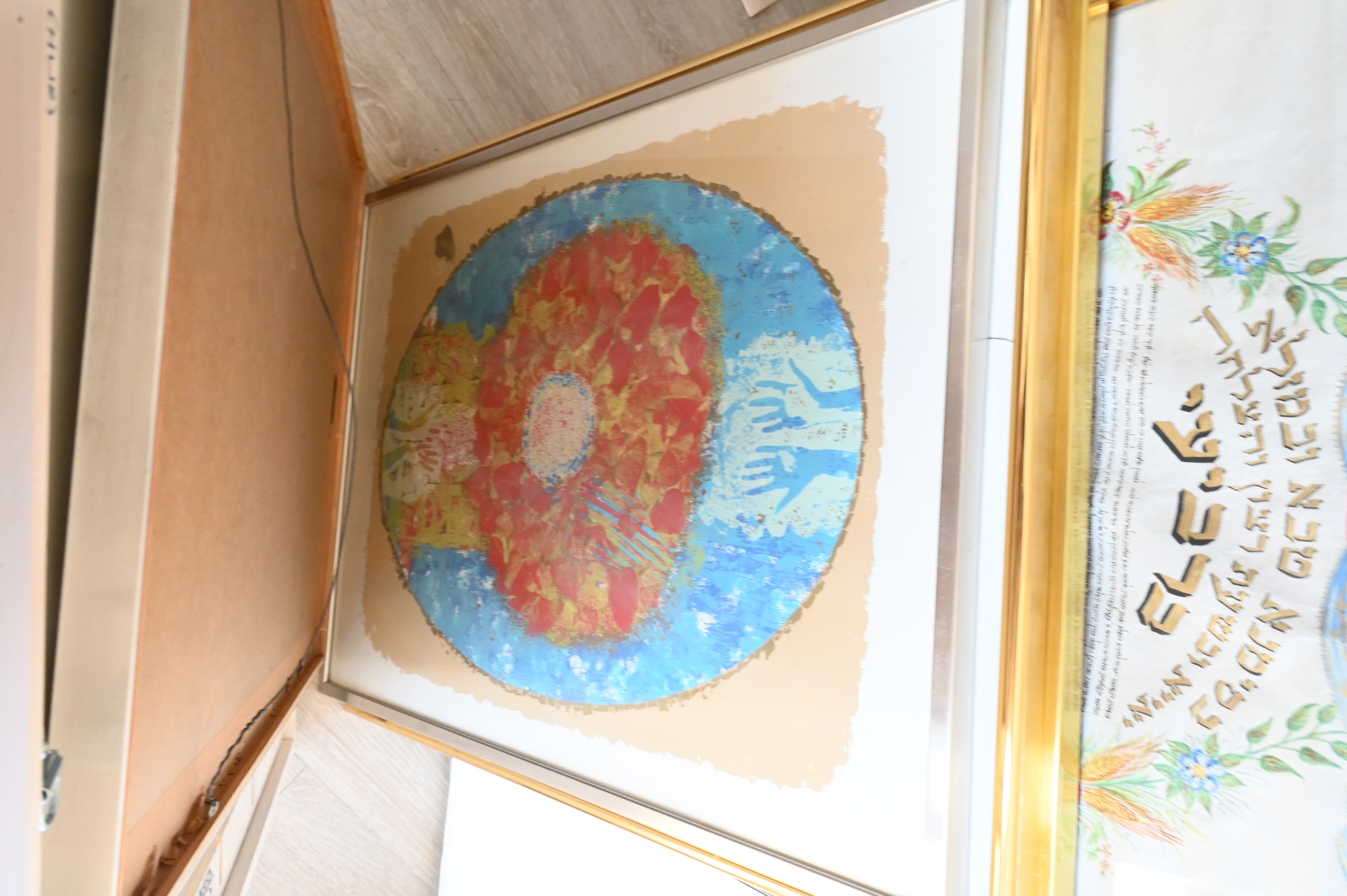 Lot 561: Eight Framed Hebrew / Jewish Art Pieces