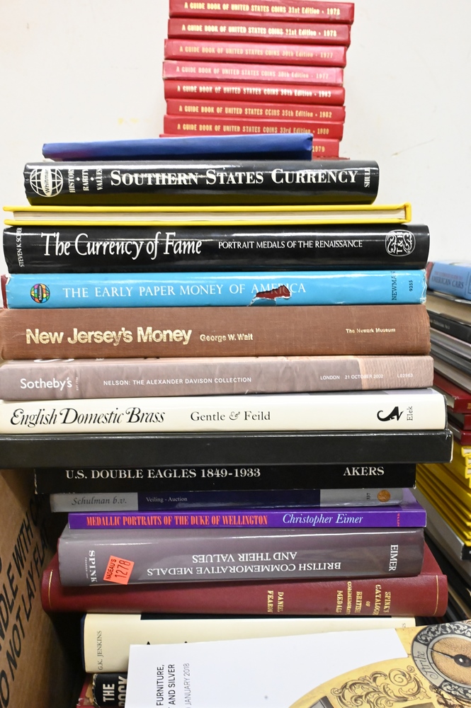 Large Group of Books, topics include cars, trains, coins, gold, collectables, etc.