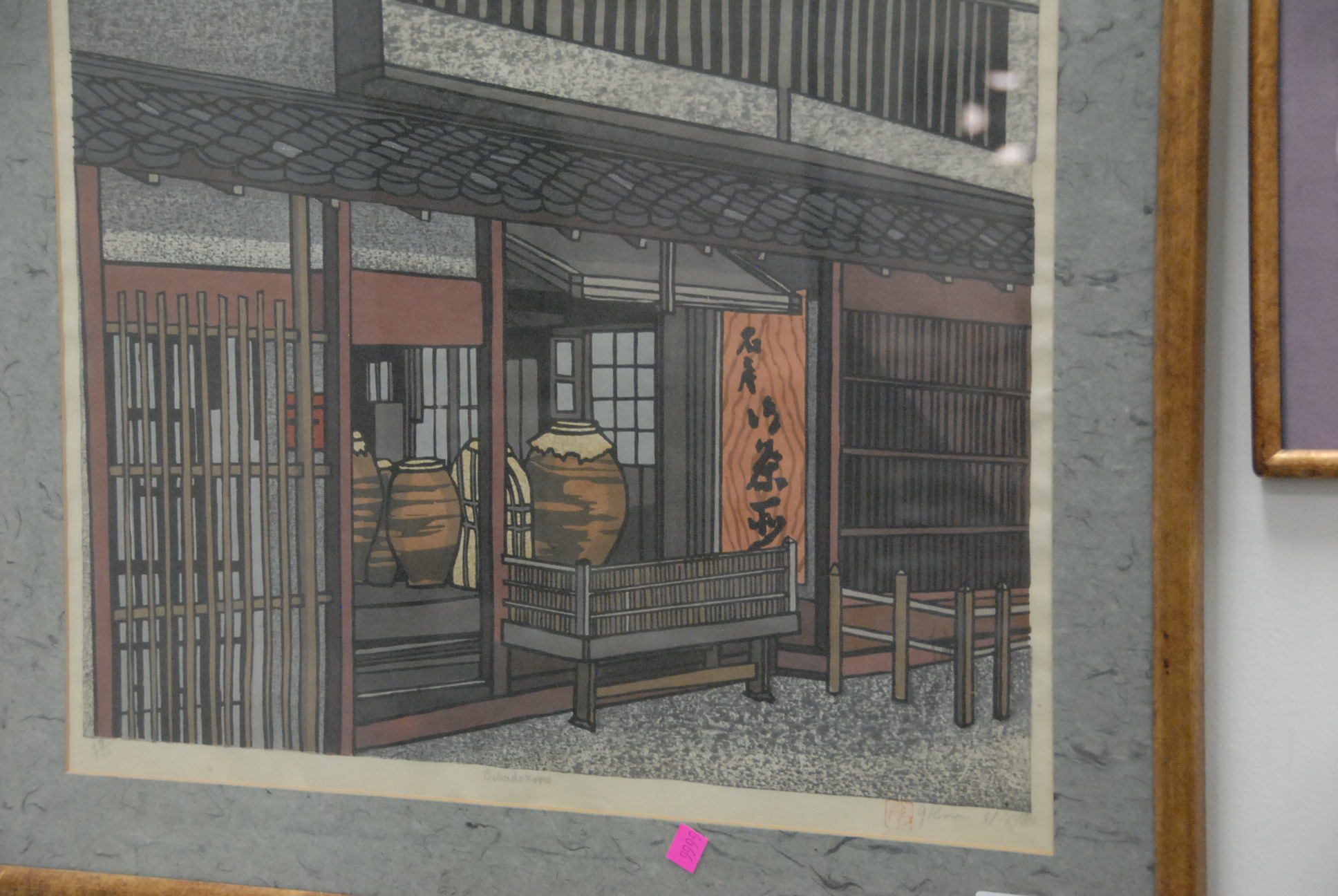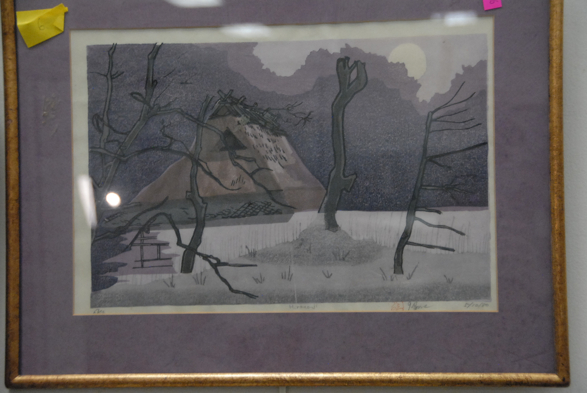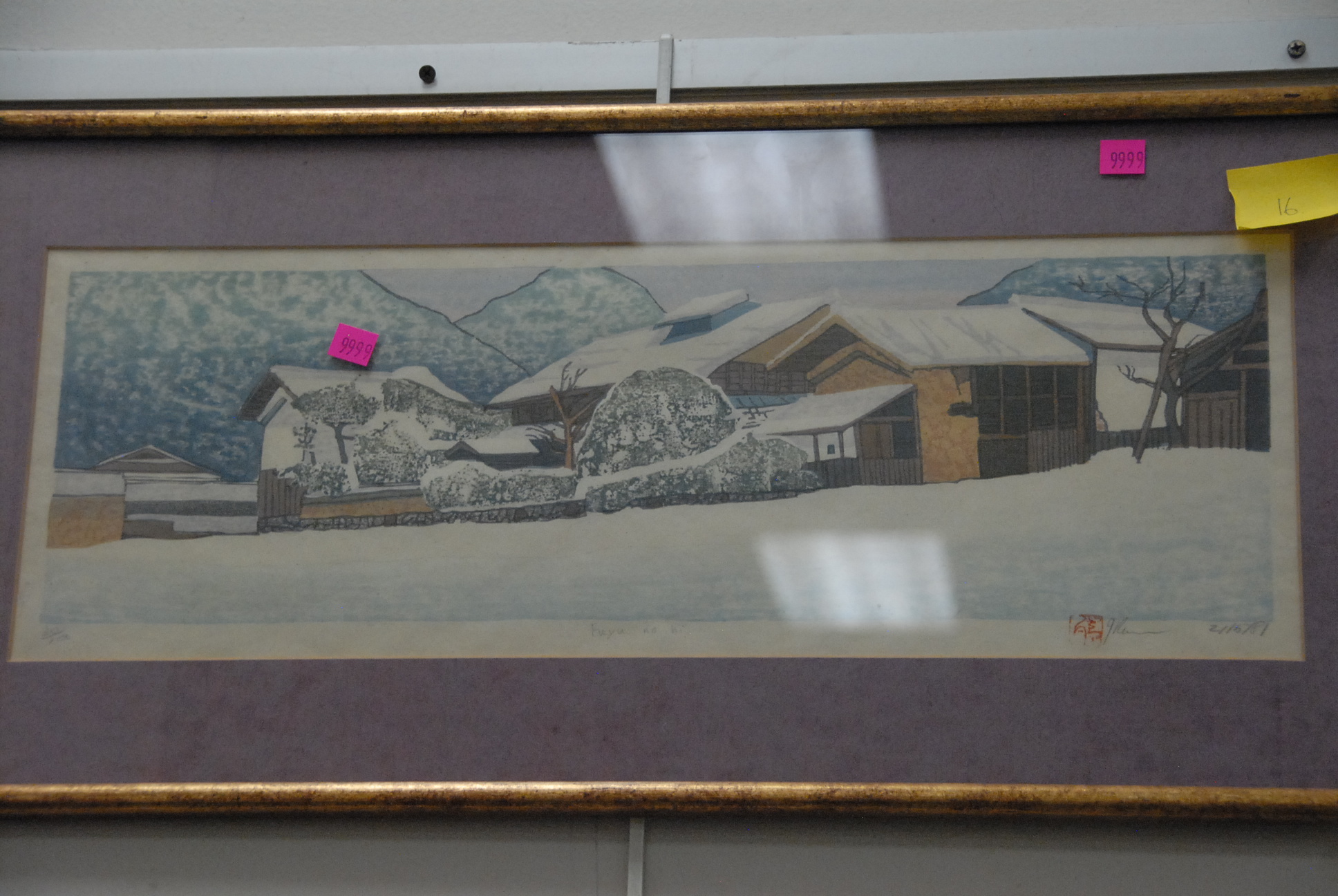 Lot 561: Six Japanese woodblock prints, pencil signed lower right and dated 1980. 7 x 21 1/2 to 15 x 21 1/2