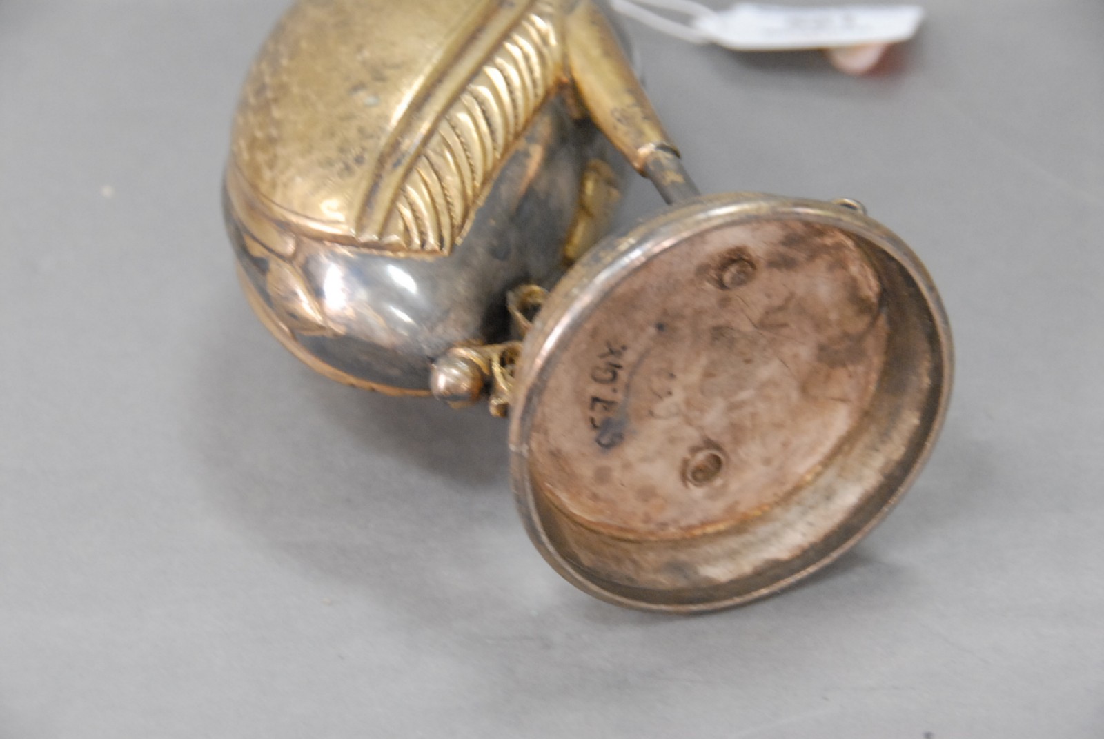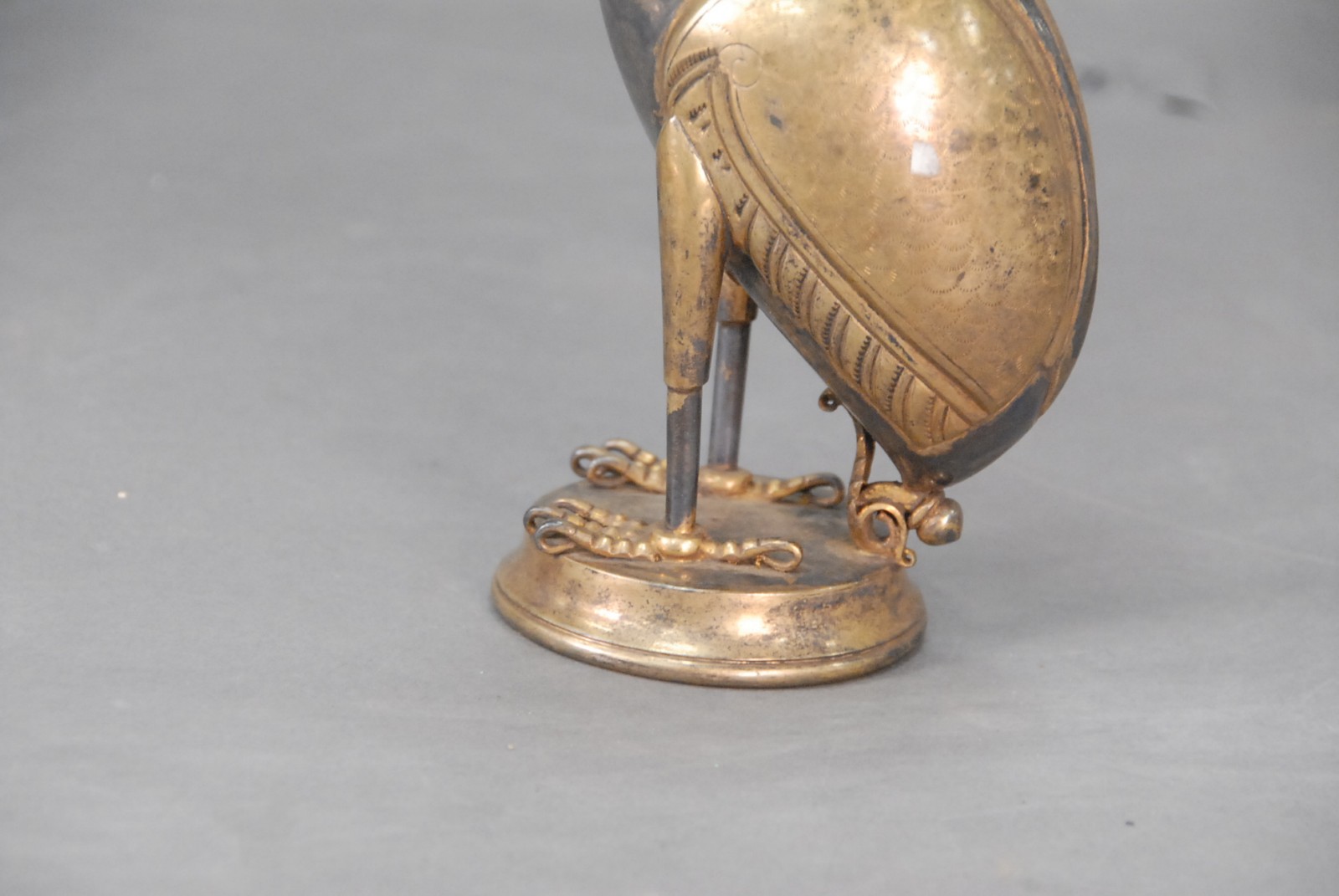 Southeast Asian mixed metal scent flask in the shape of a crane.
