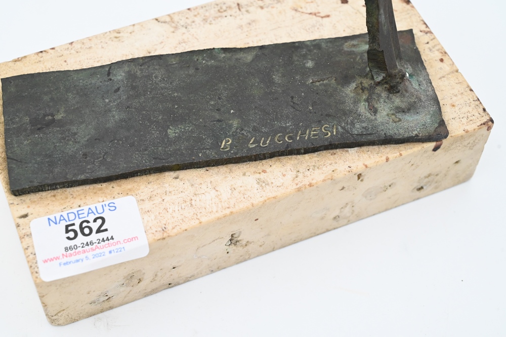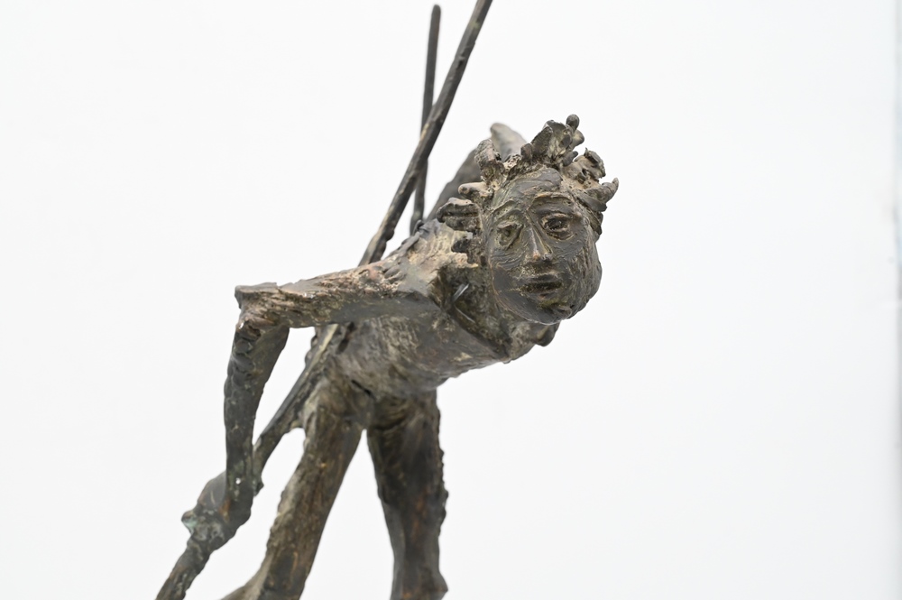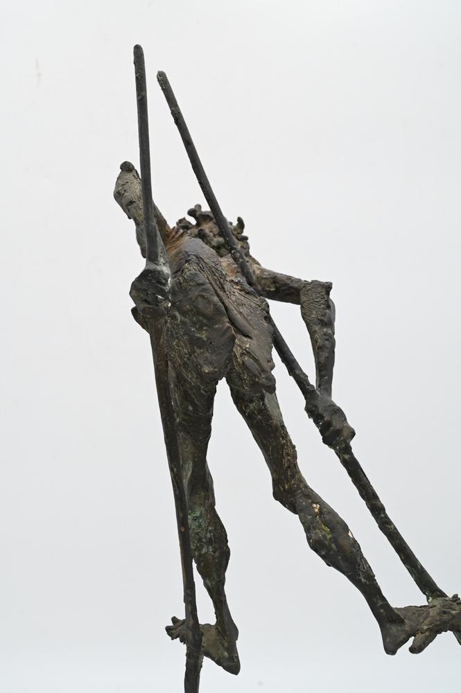 Bruno Lucchesi (b. 1926), Figure Walking on Stilts, bronze, signed B. Lucchesi, Forum Gallery Label on bottom, height 24 inches.