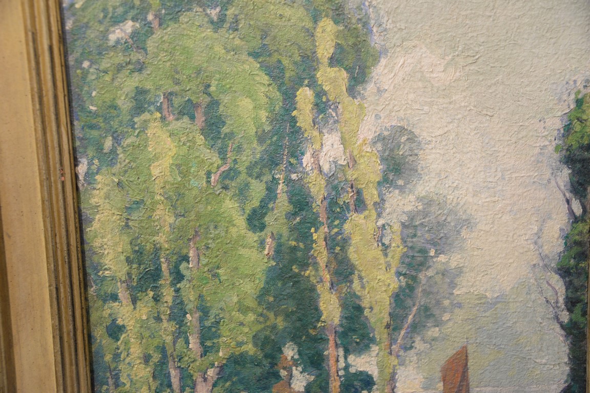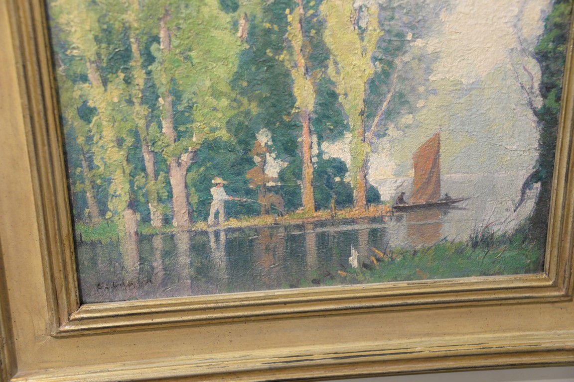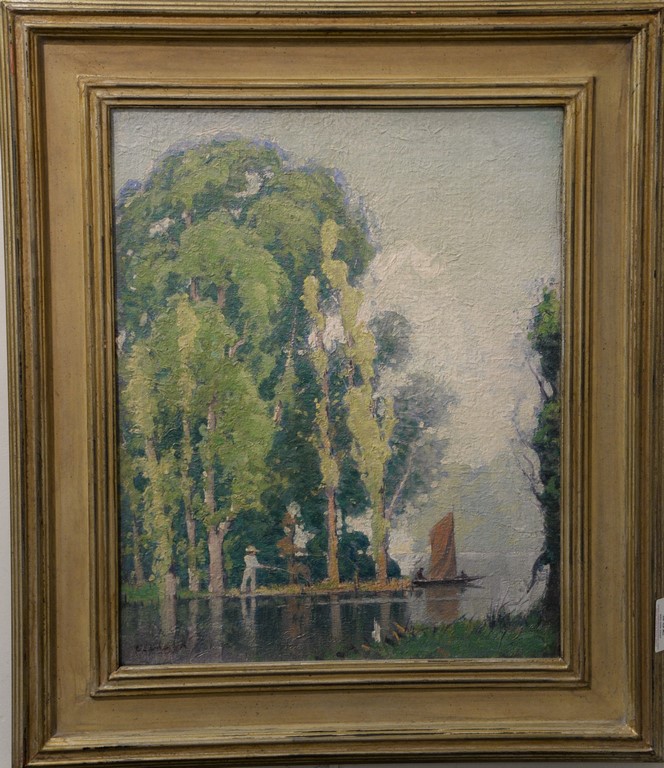 Lot 562: Charles Augustus Lasar 1856-1936 oil on canvas Fishing Along the River signed lower right: C. Lasar relined 16 x 13 sold 2…