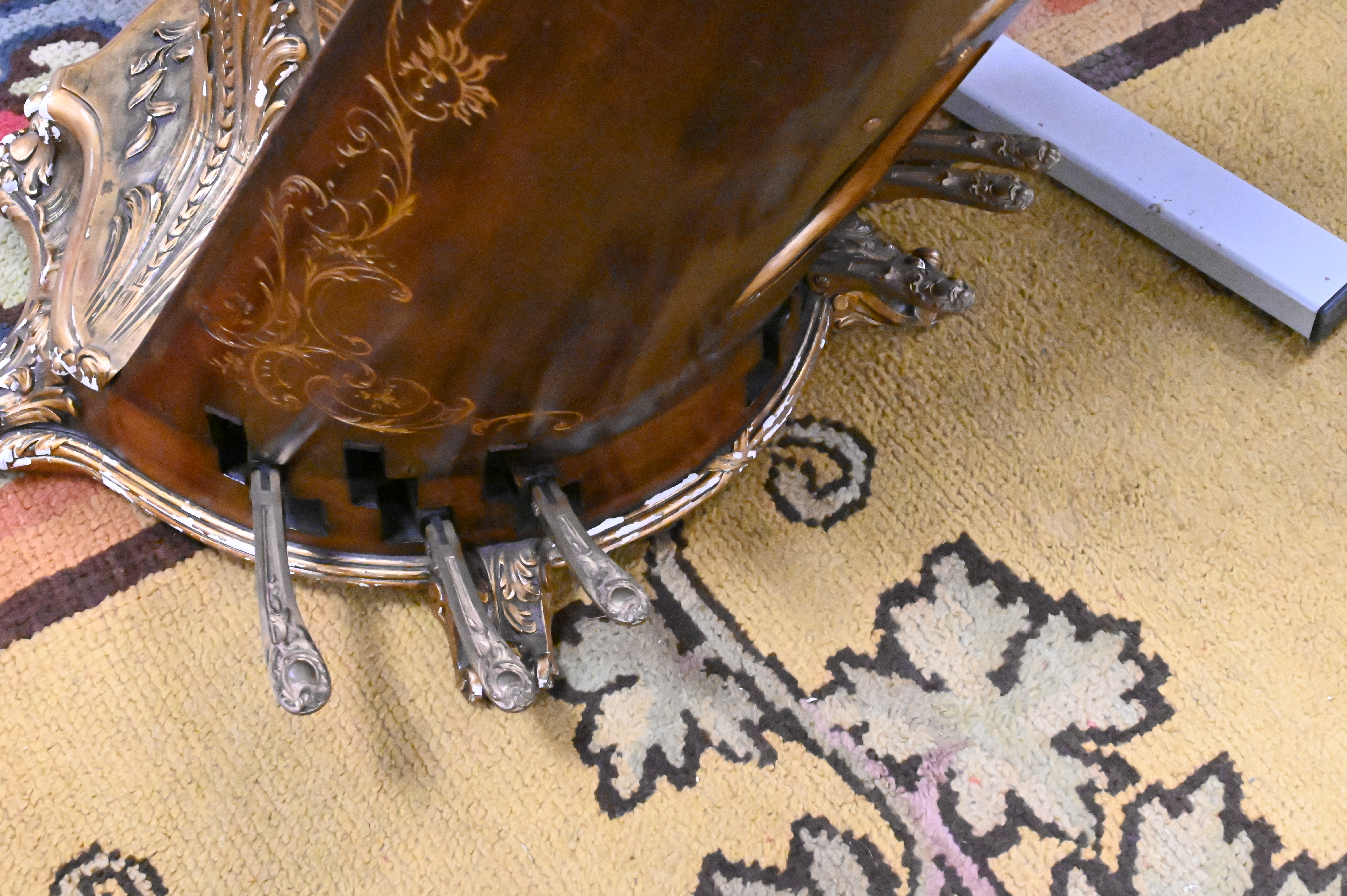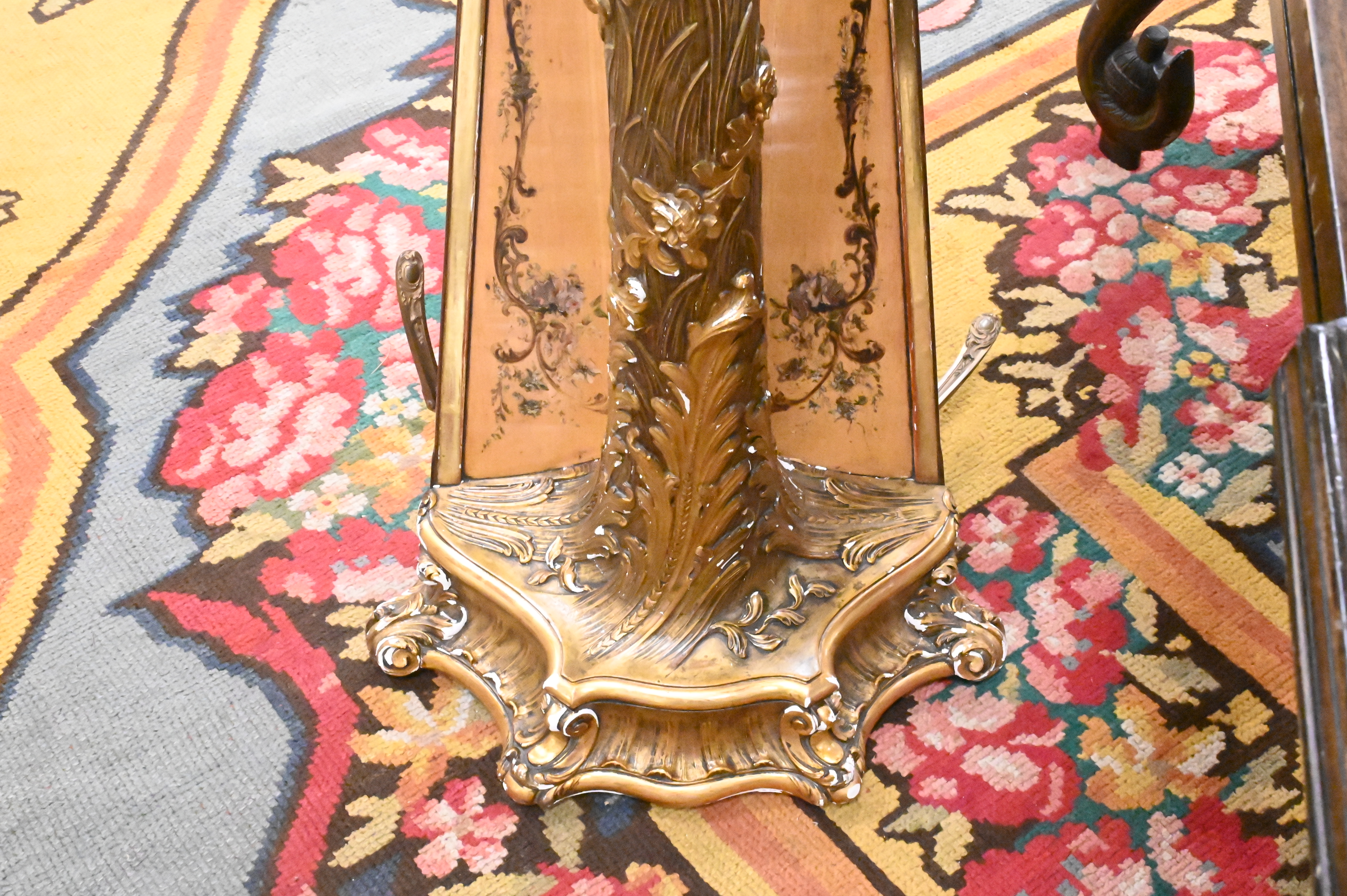 the support having floral entwined clustered palmettes, having some chips and flaking