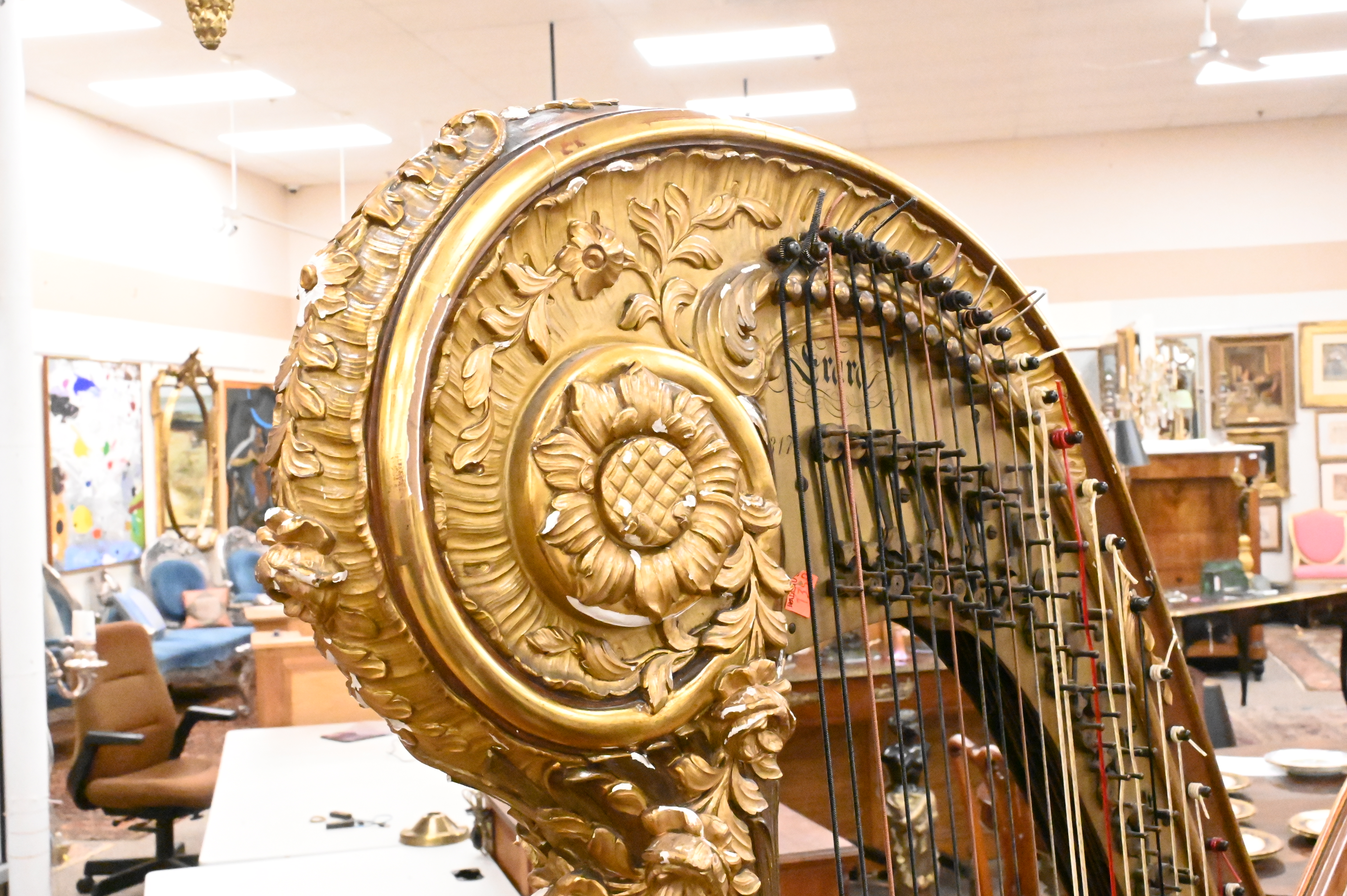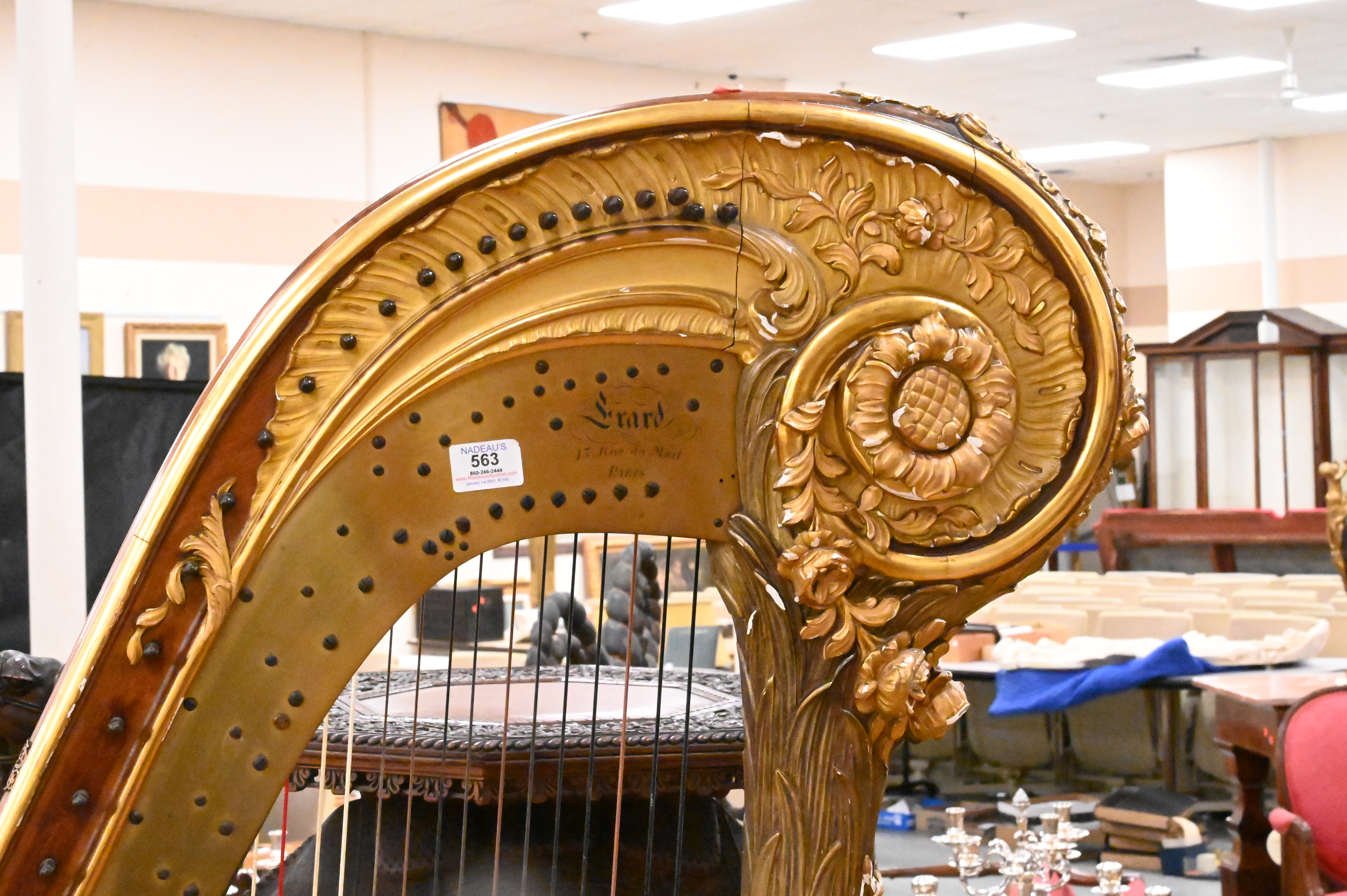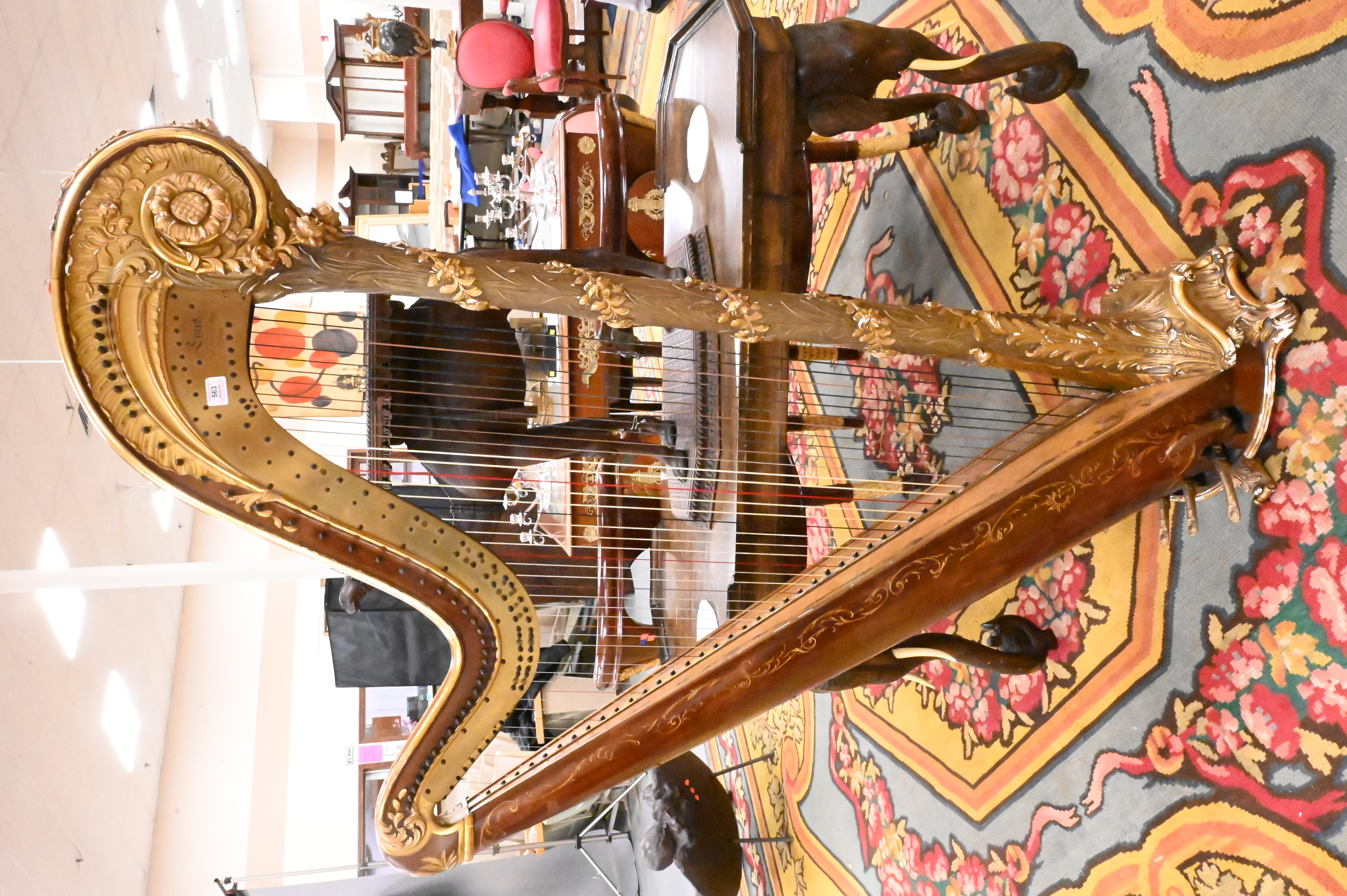 Lot 563: A Napoleon III Mahogany and Parcel-Gilt Harp
