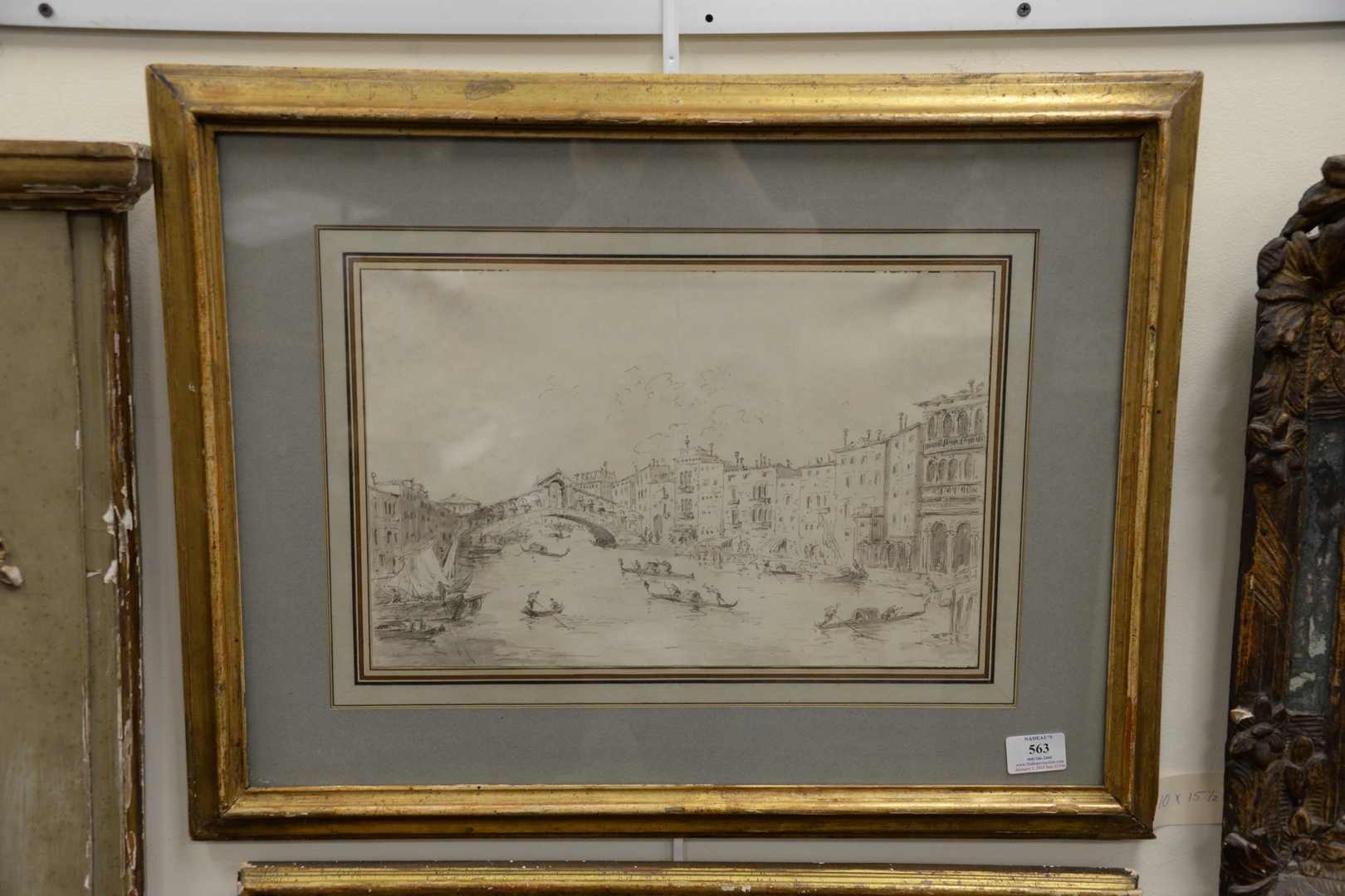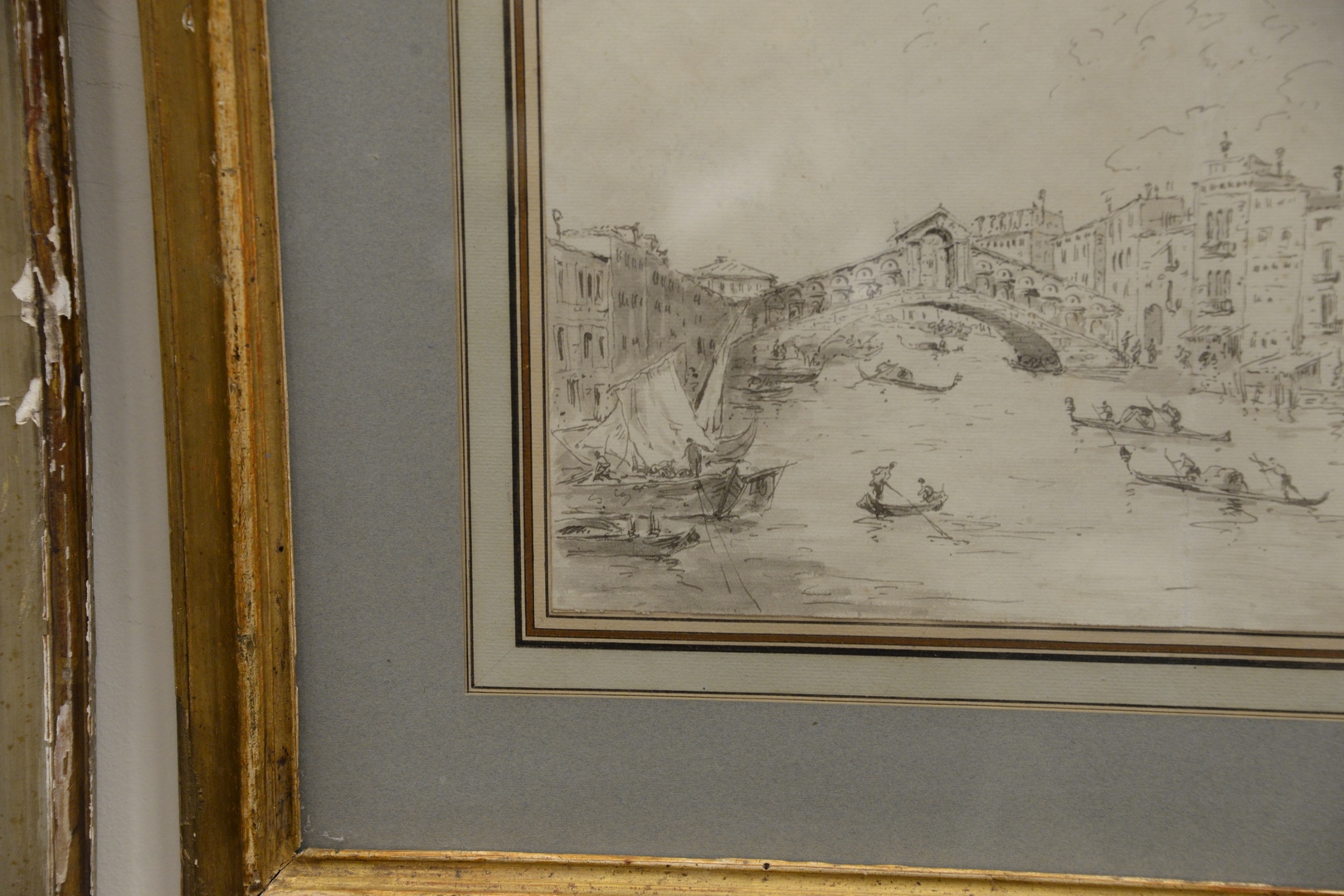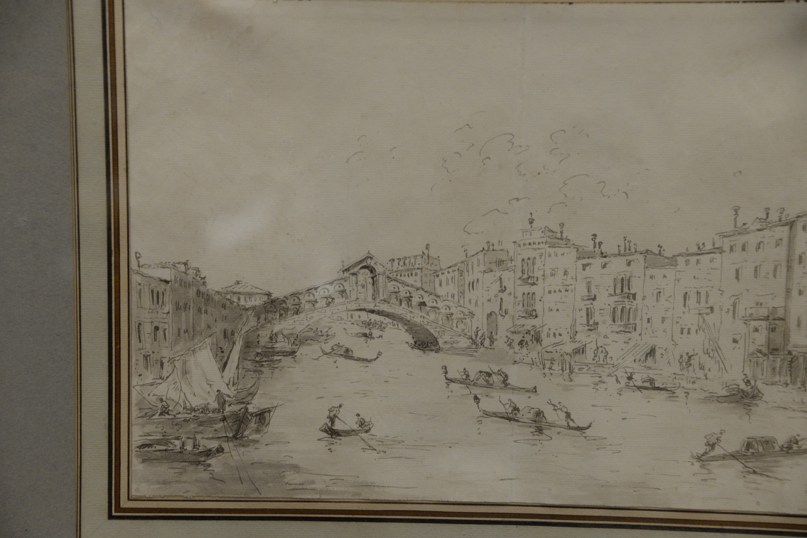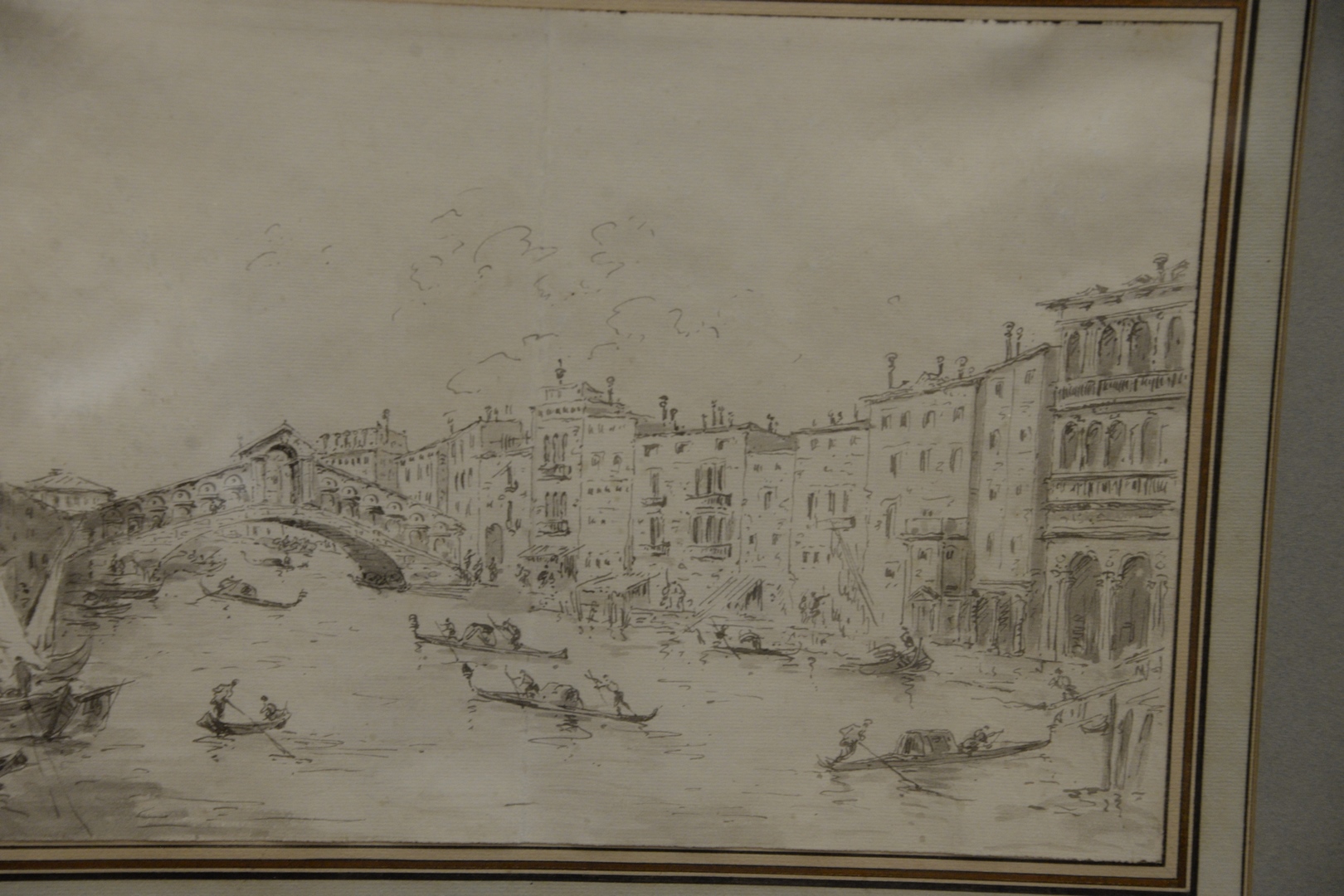 Lot 563: Circle of Francesco Lazzaro Guardi 1712 – 1793 18th century Venice the Rialto Bridge Over Canal grey wash and ink unsigned sheet s…