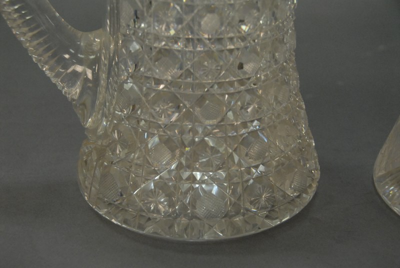 Two cut glass pitchers both in excellent condition. ht. 8 1/2in. each