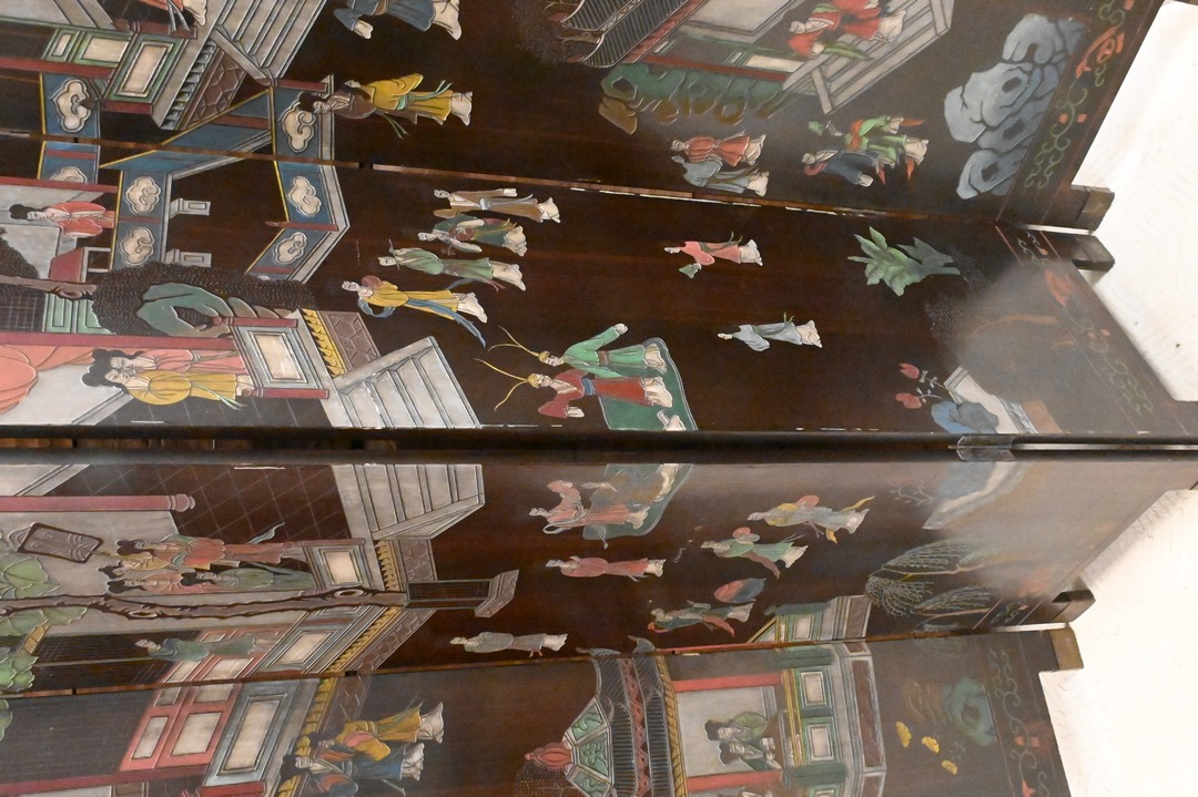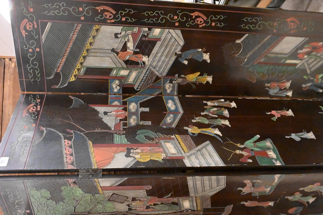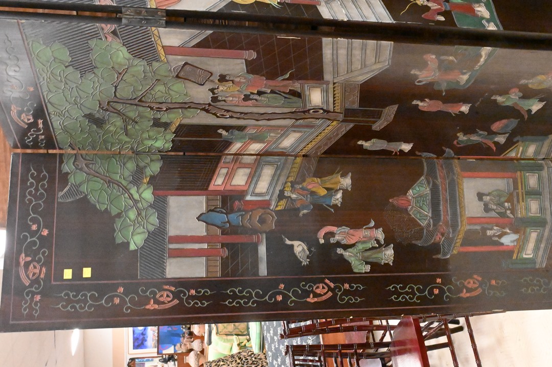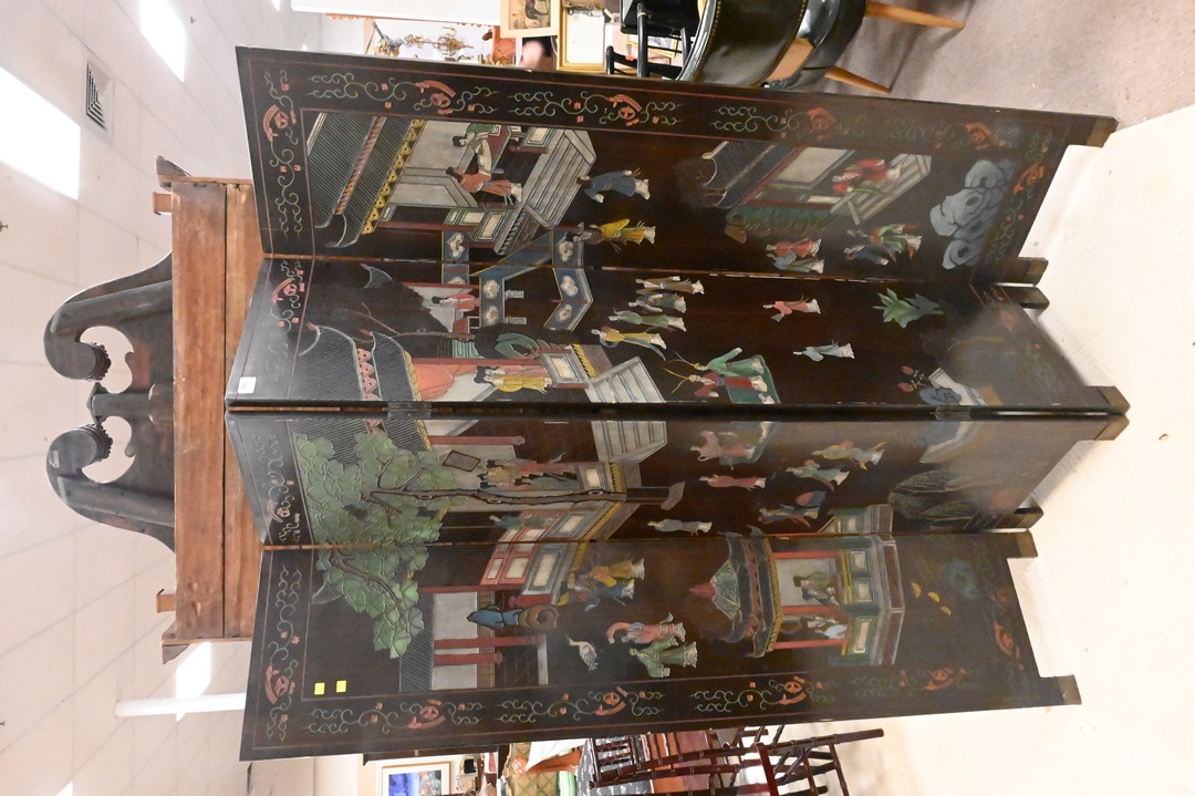 Two Sided Four Fold Chinese Dressing Screen, height 72 inches, width 64 inches.