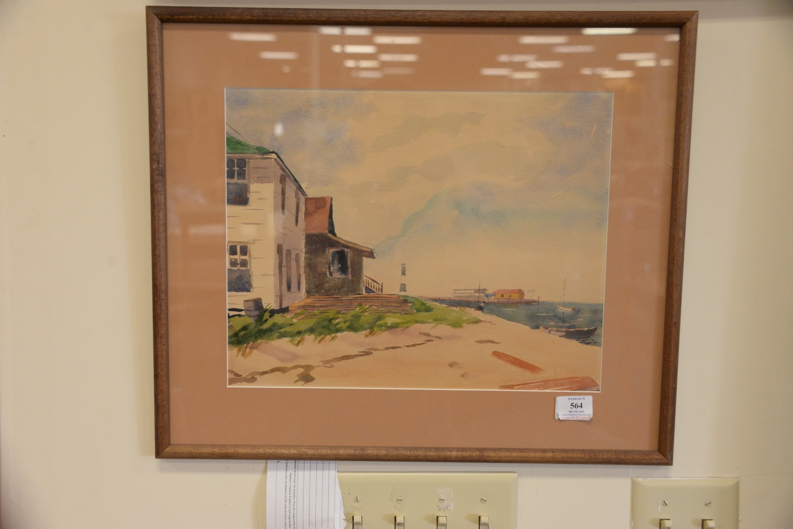 Lot 564: John Cuthbert Hare American, 1908-1978, beach with lighthouse, watercolor on paper, signed lower right 13 x 16.