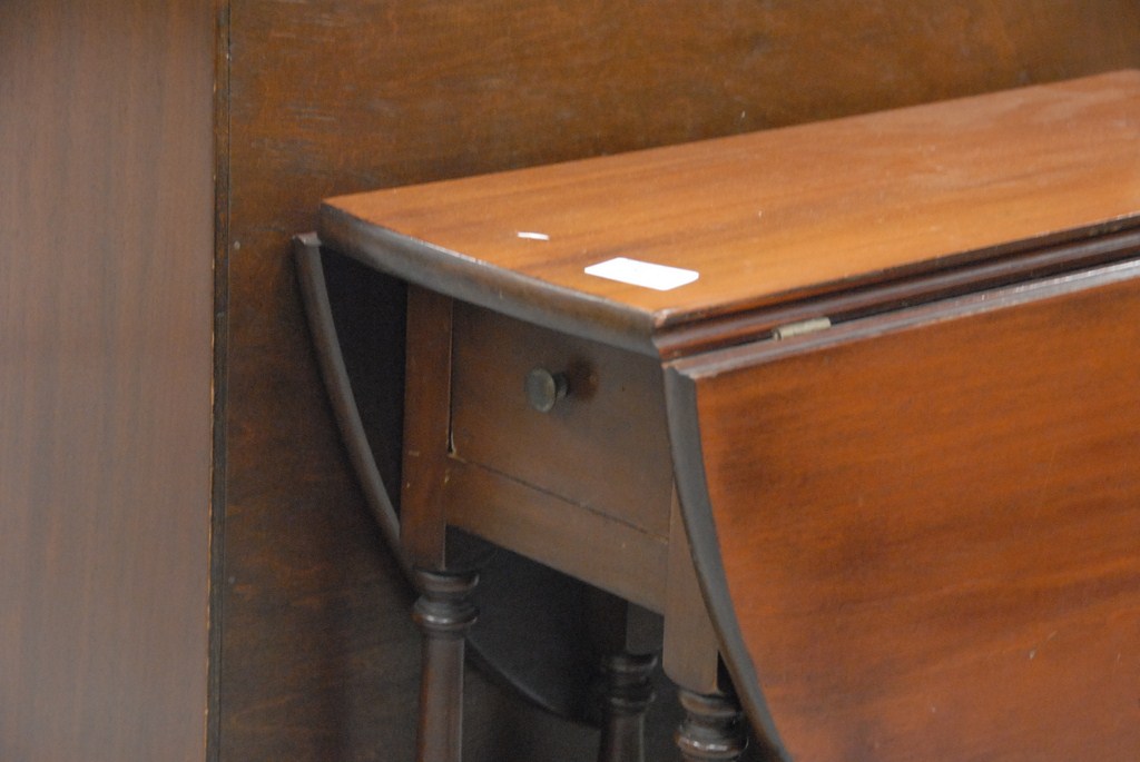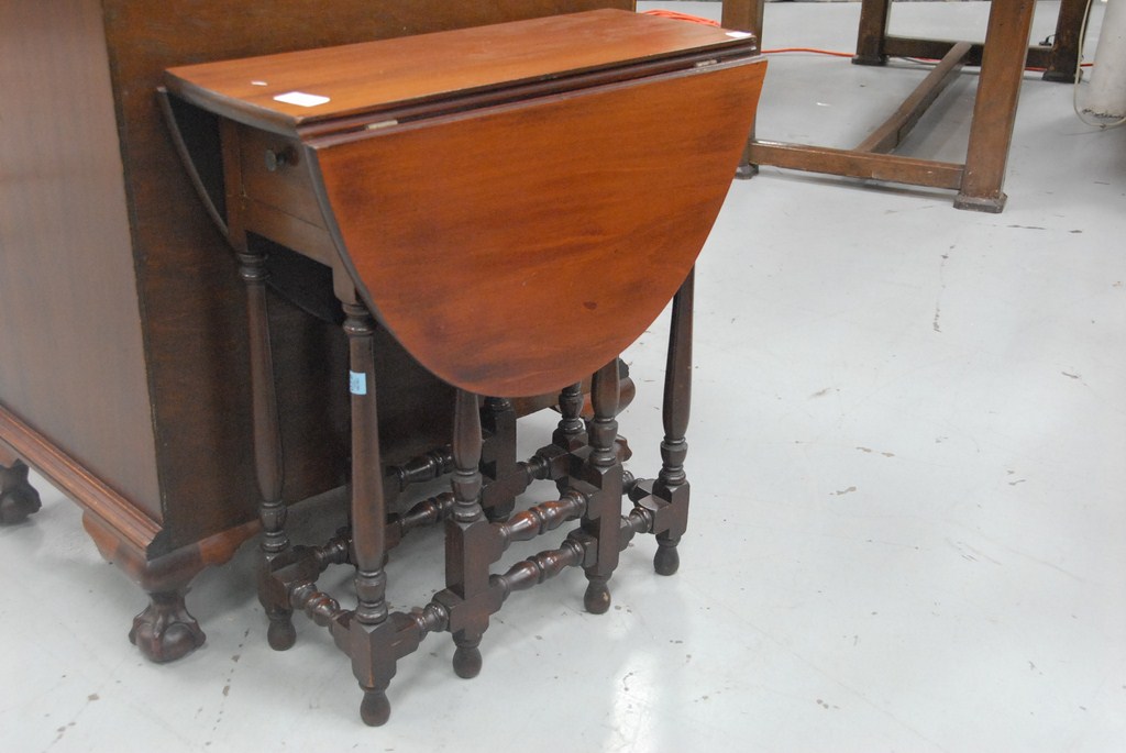 Lot 564: Margolis mahogany diminutive gate leg drop leaf table on turned legs. Provenance: Estate of Charles Archibald Goodwin and Ruth Chene…