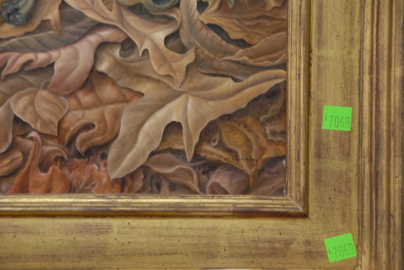 Lot 564: Max Standley 20th century RESURRECTED oil on masonite signed lower right Max Standley labels on reverse with date, title, and artist’s signature written letter stating: Indian-pipe or corps plant, Monotropa