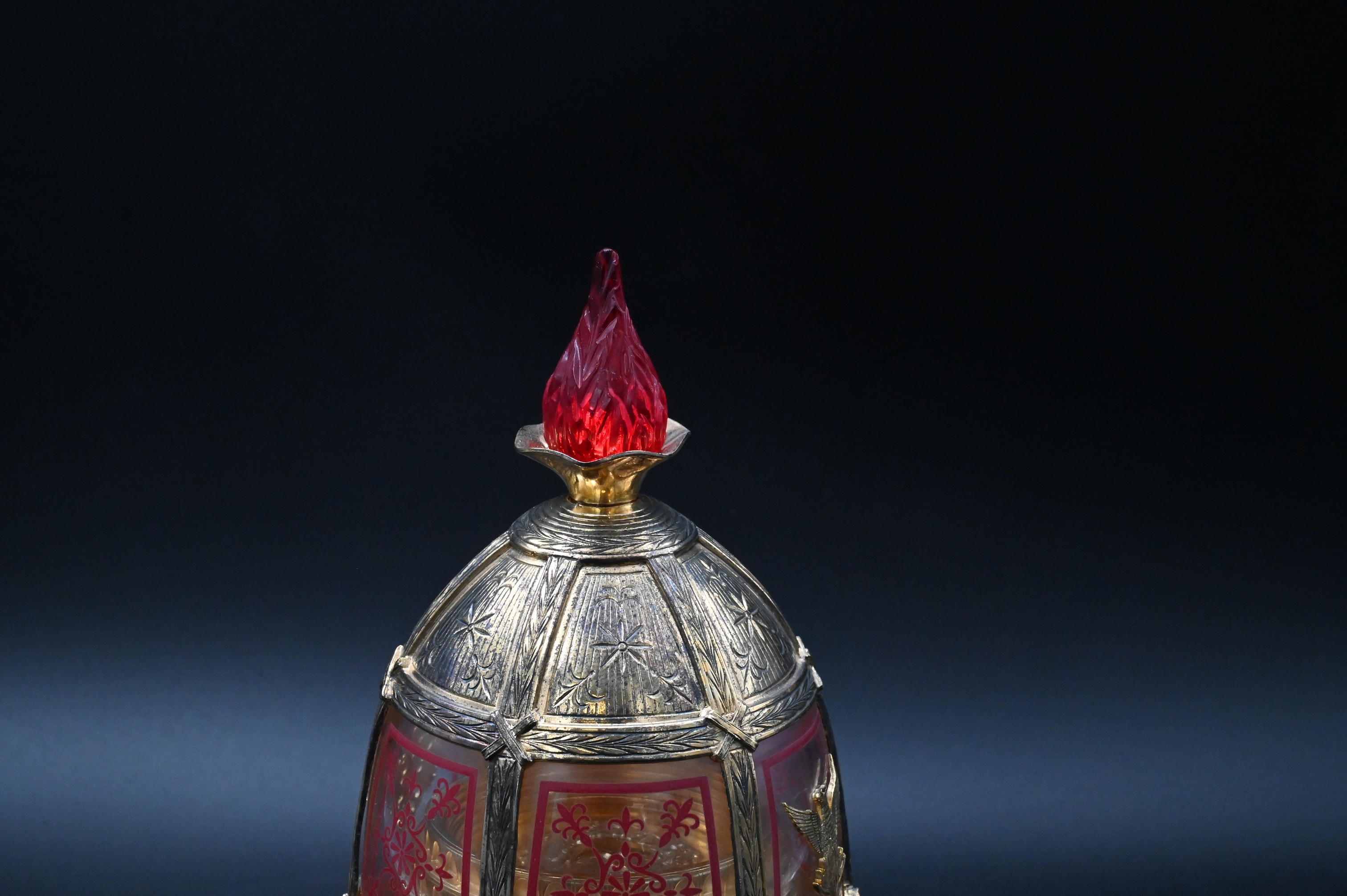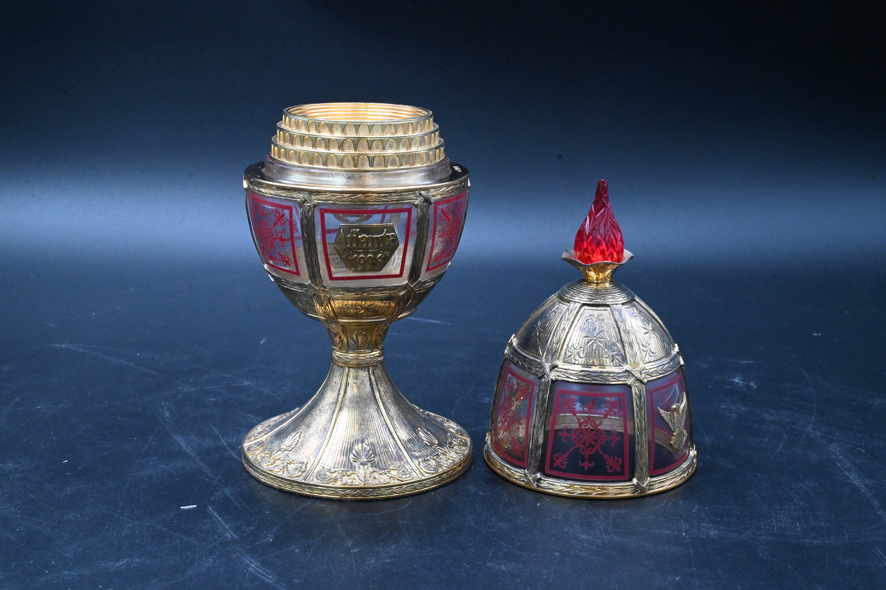 Flame finial over Atlanta themed motifs 1996 edition 15/500, signed, sterling silver and 18k gold