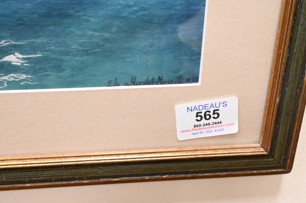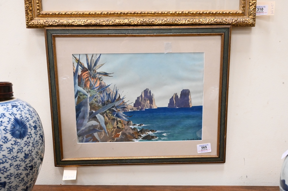 Lot 565: Eduard von Handel-Mazzetti (Austrian, 1883 – 1950), Capri, I Faraglioni, watercolor on paper, signed lower right “Edy v. Handel-Mazzetti, 1930″, sight size 9 3/8″ x 13 1/4”. Provenance: Estate of Wallace Bradway, New Haven, CT.