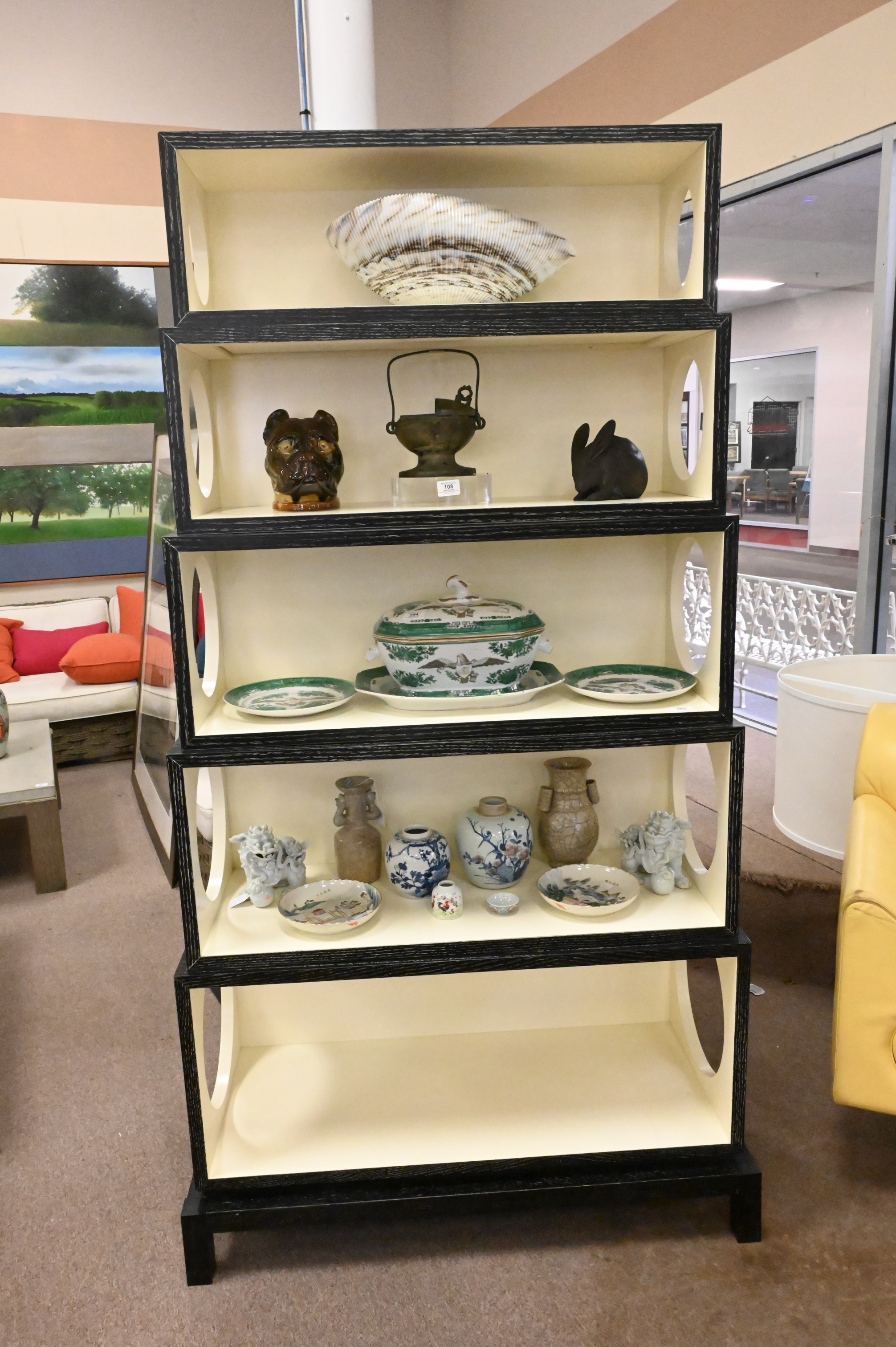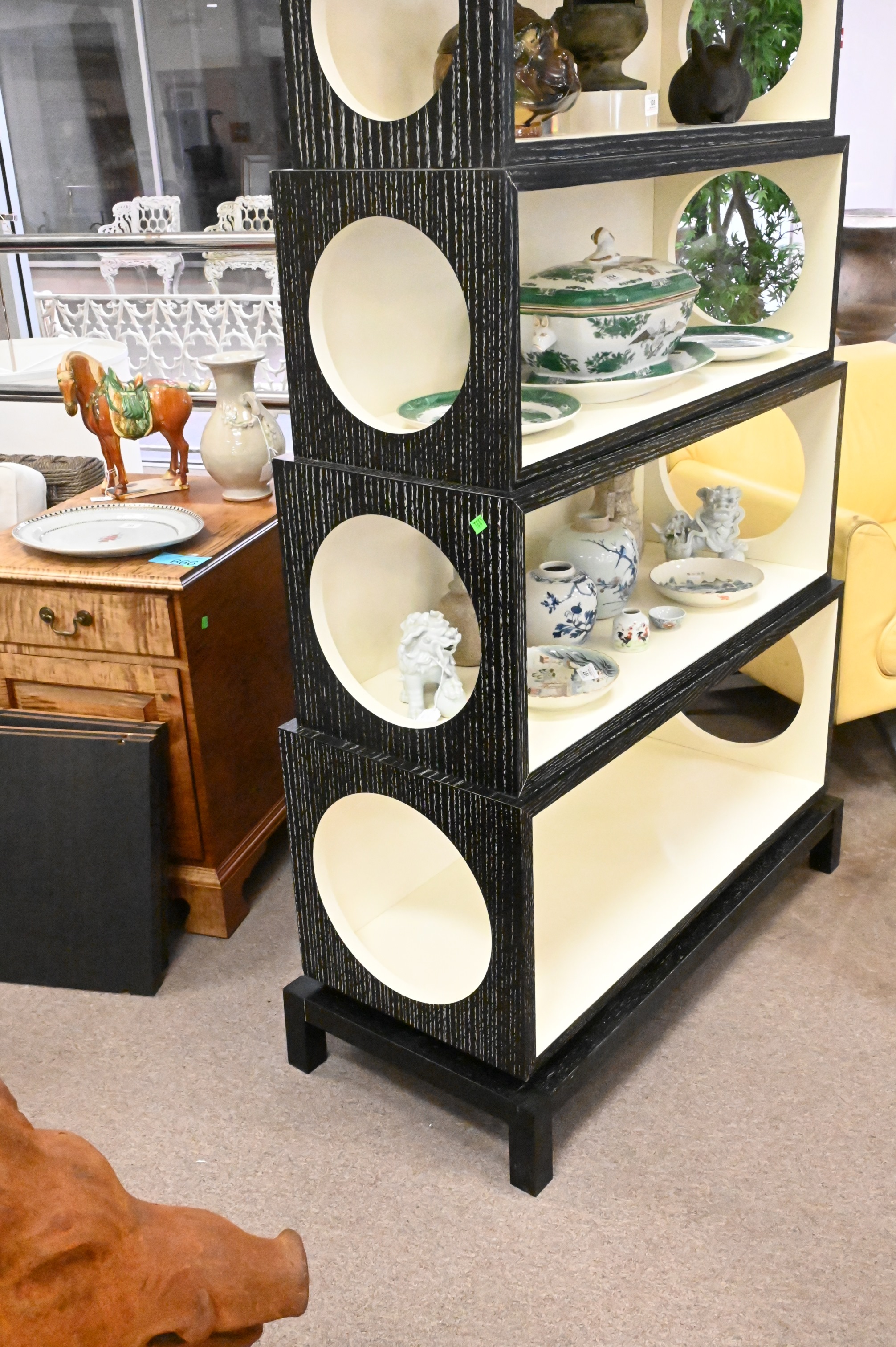 Global Views Six Piece Down Modular Etagere, tapering from smallest to largest section. height 77 1/2 inches, width 40 inches, Depth 19 inches, Provenance: A Private Collection from Greenwich Connecticut.