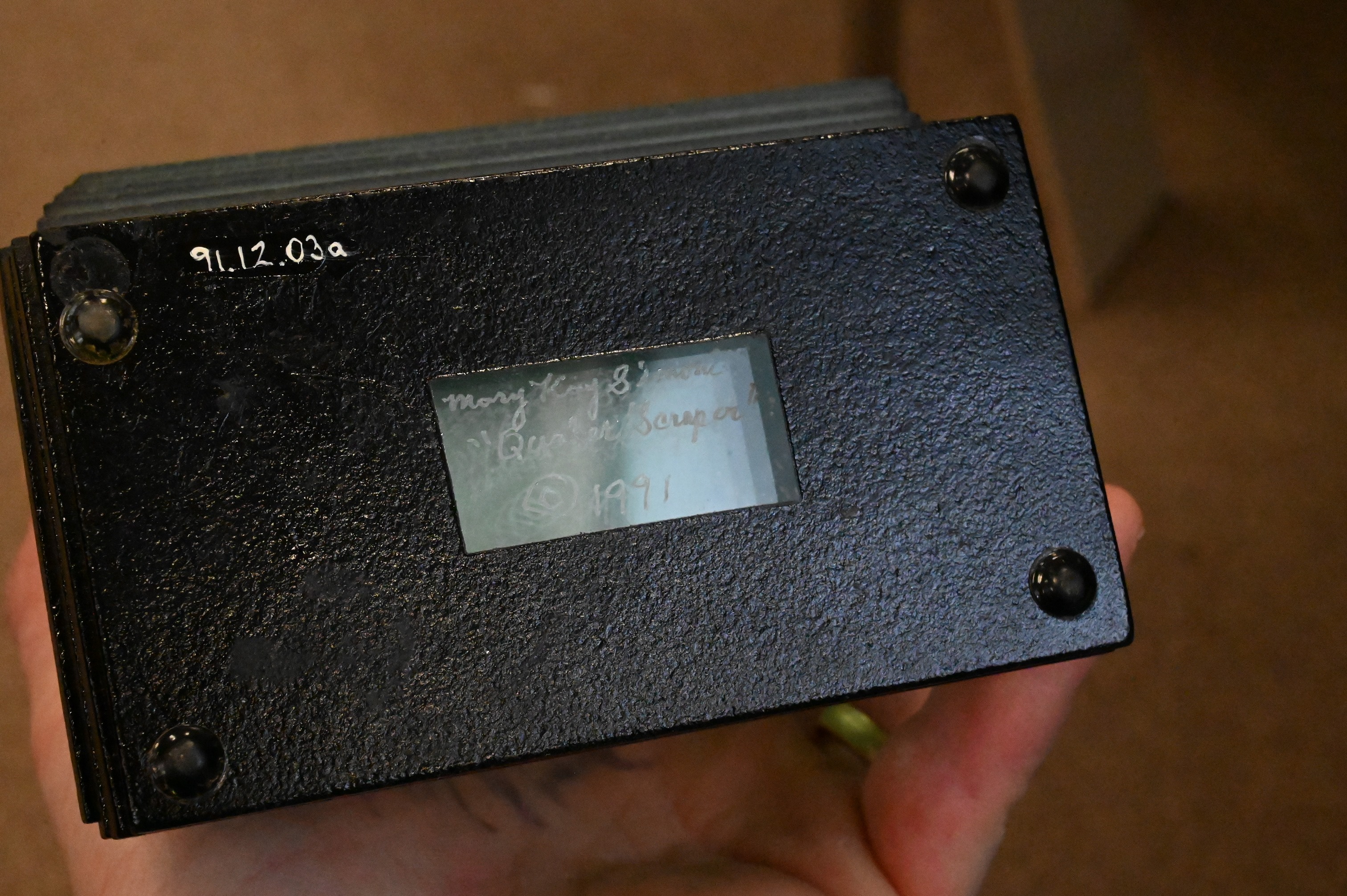 Signed, titled, and dated on verso “Quaker Scraper 1991”