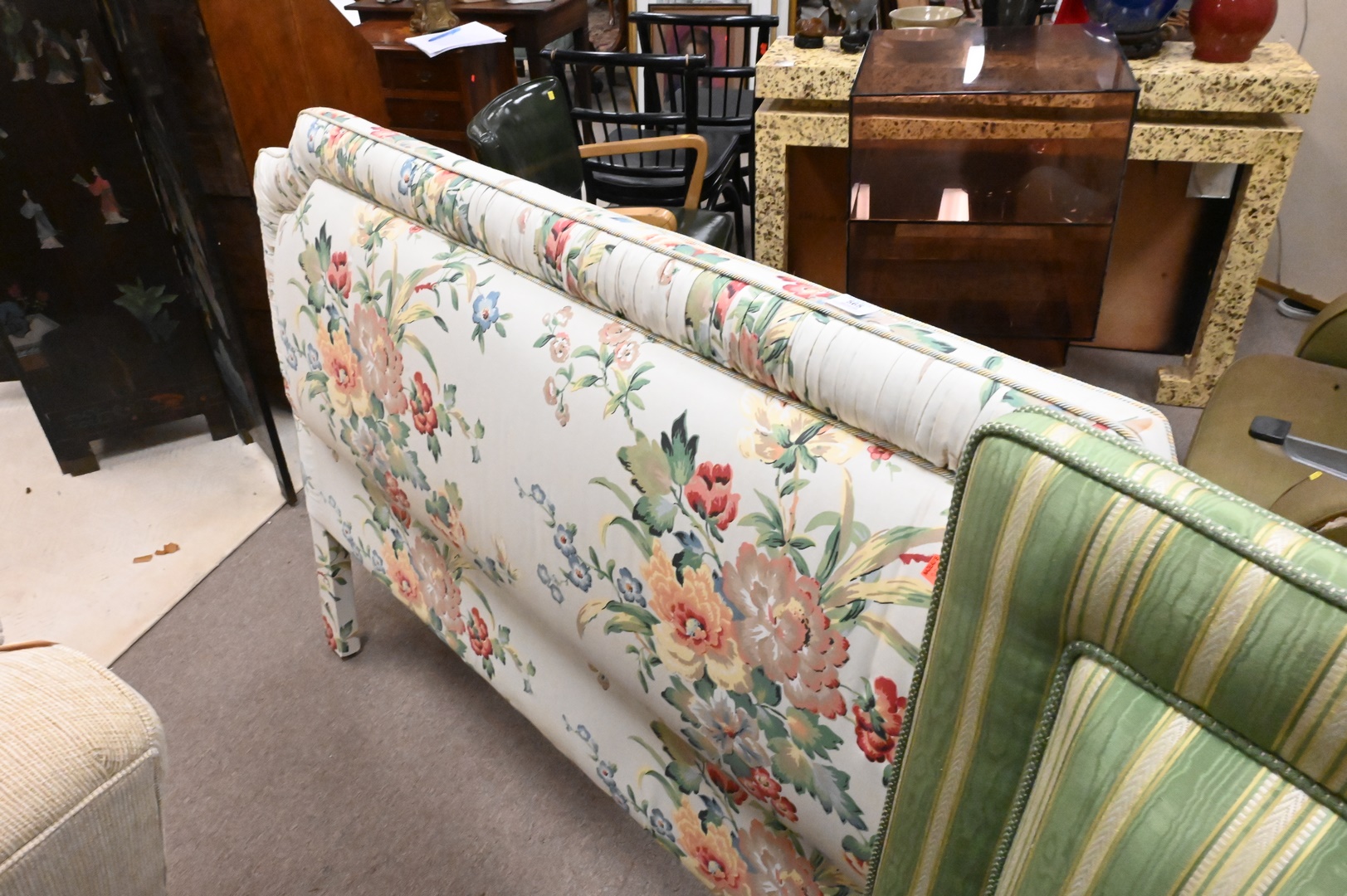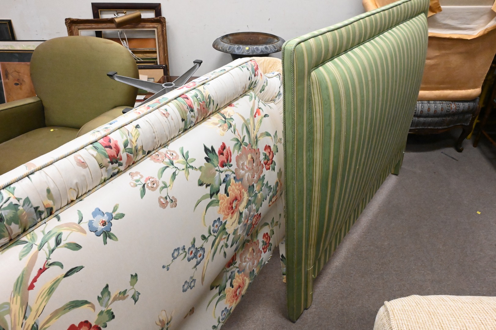 Two Custom Upholstered Full Size Headboards, heights 42 and 45 inches.