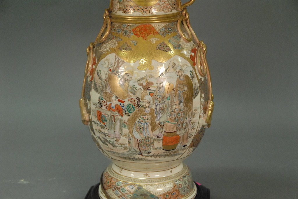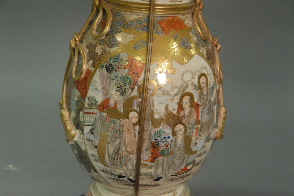 Satsuma vase made into table lamp, not drilled. vase ht. 17 1/4in. total ht. 31 1/4in.