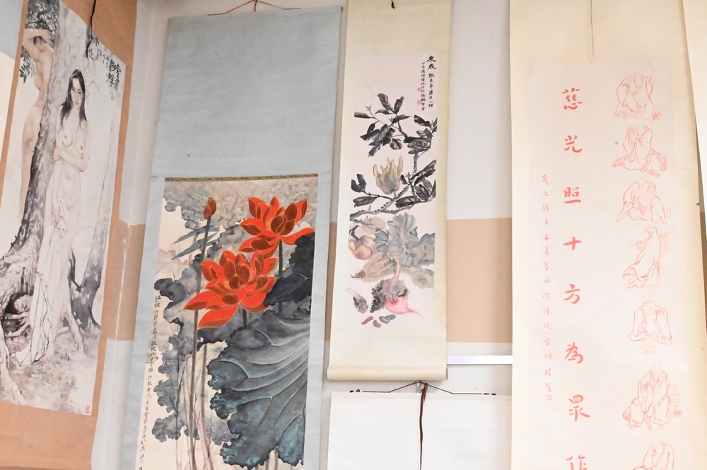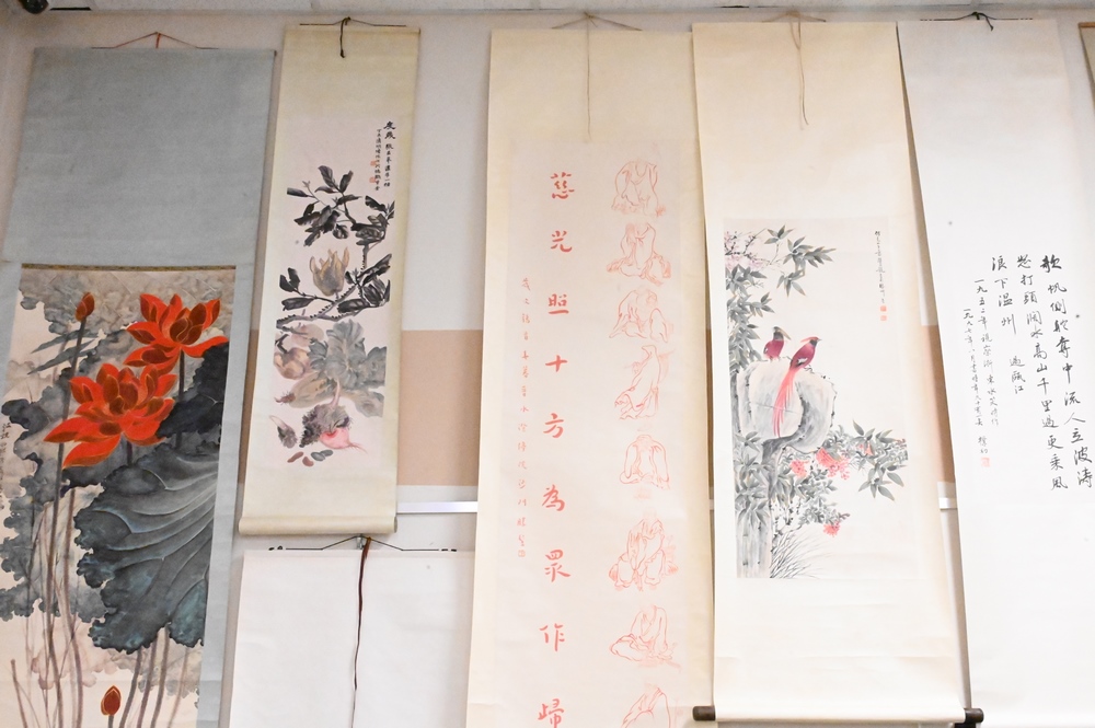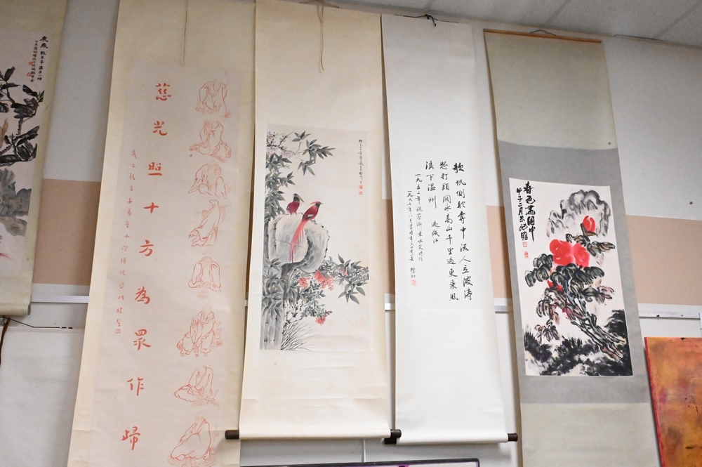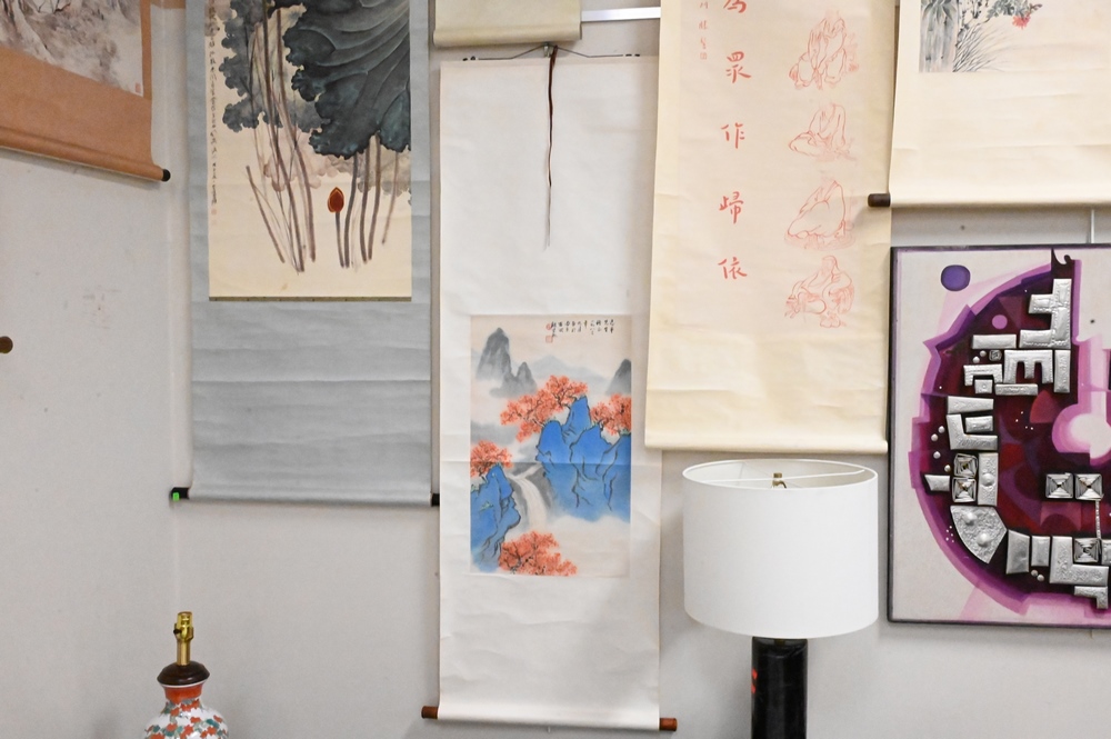 Lot 566A: Group of Seven Chinese Scrolls, to include three having flowers; two with characters; one with birds; along with one having mountainous landscape; largest image 70″ x 18″.