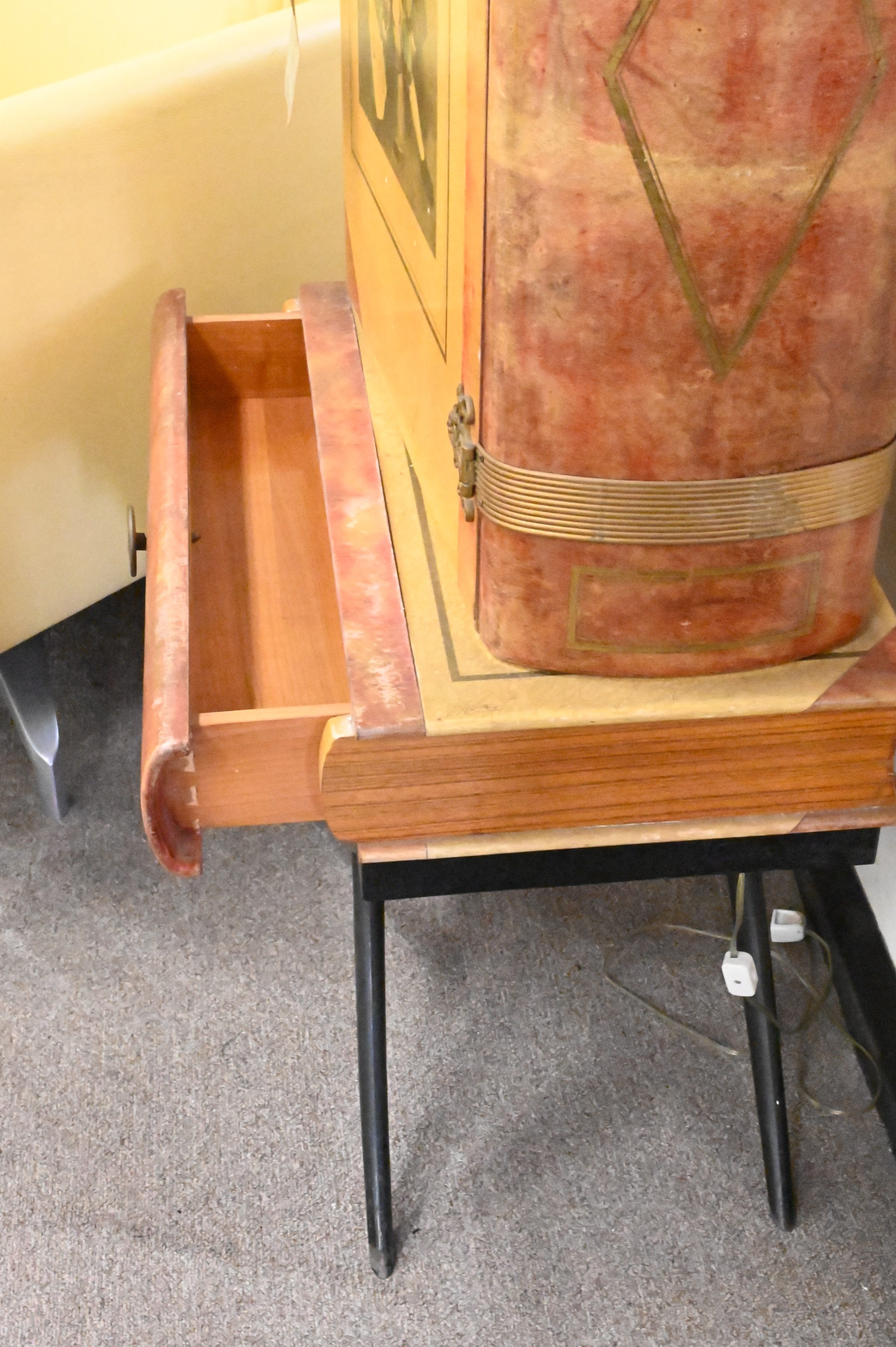 dyed, painted and lacquered parchment, mahogany/rosewood