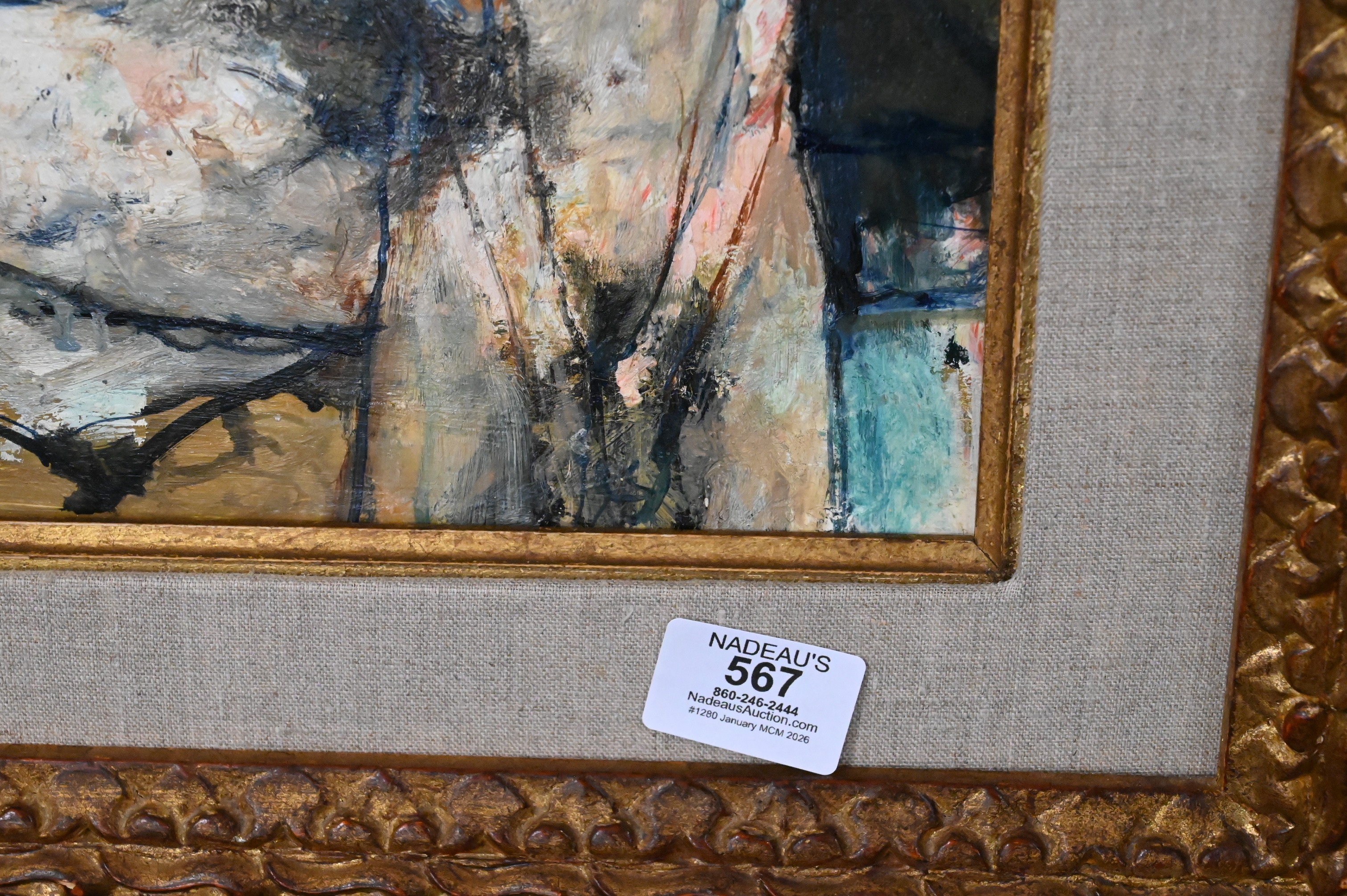 This report is provided by Nadeau’s Auction Gallery as a courtesy and reflects our opinion only. Bidders should conduct their own due diligence. The absence of a report does not imply the lot is free of issues. Assessments are based on visual inspection; unless noted, items have not been examined under UV light, movements and electrical components have not been tested, and artworks are generally not removed from frames. We are not professional conservators, and this report is not a comprehensive condition evaluation. Images provided form part of the report and should be reviewed carefully. All sales are final. For in-person inspection, please call 860-246-2444 or email info@nadeausauction.com.