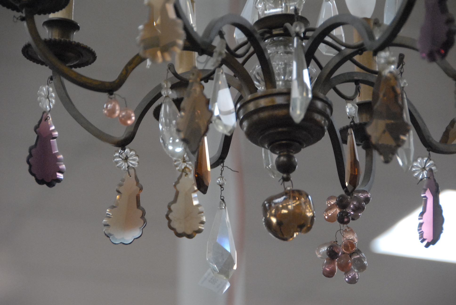 Rococo style bronze and clear and colored cut-glass eight-light chandelier, 20th century. ht. 23 1/2in.