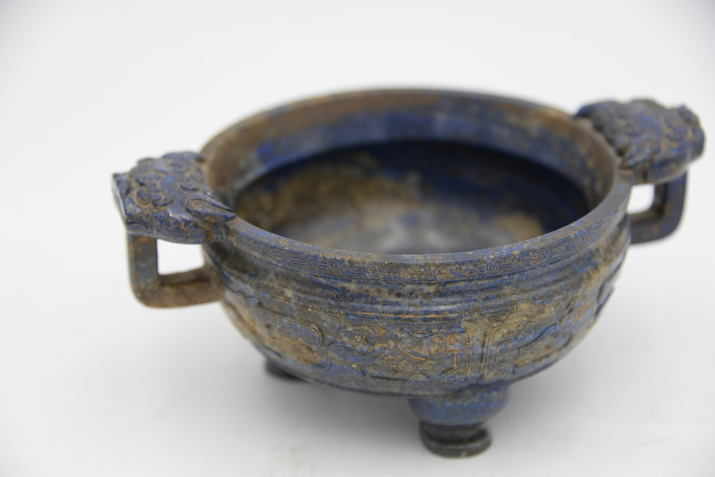 Lot 569: Chinese Lapis Lazuli Tripod Incense Burner