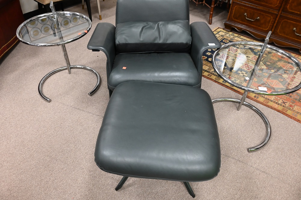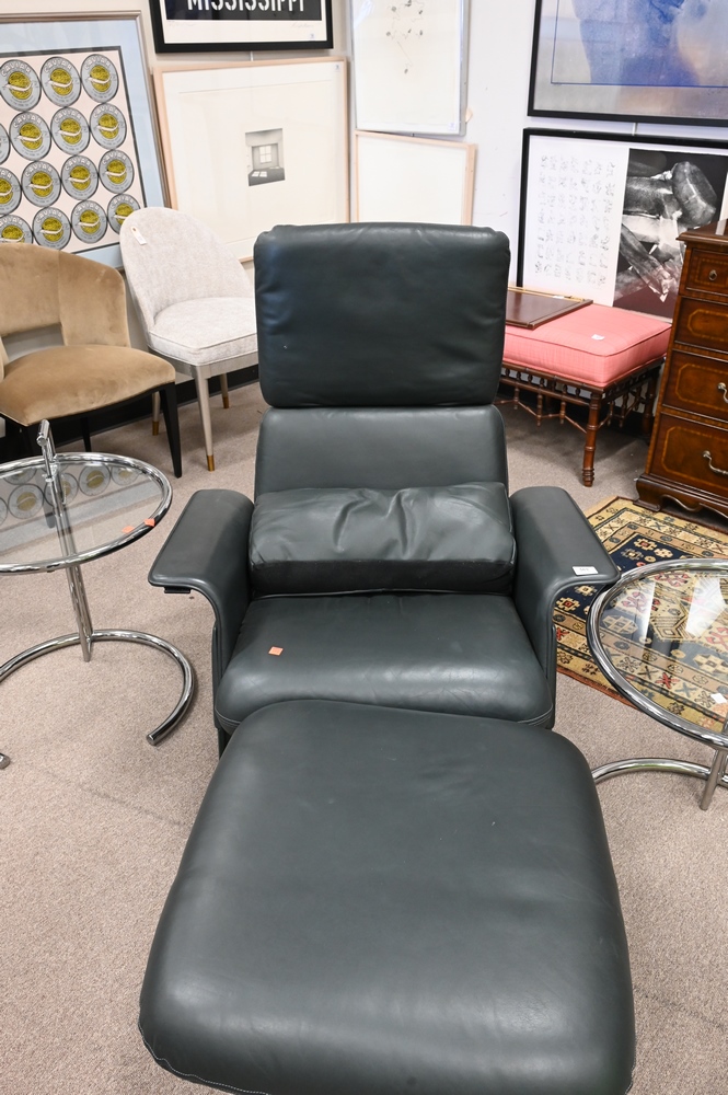 Lot 569: Herman Miller Hollington Armchair, with ottoman, designed by Geoff Hollington, height 41 1/2 inches, width 33 inches.