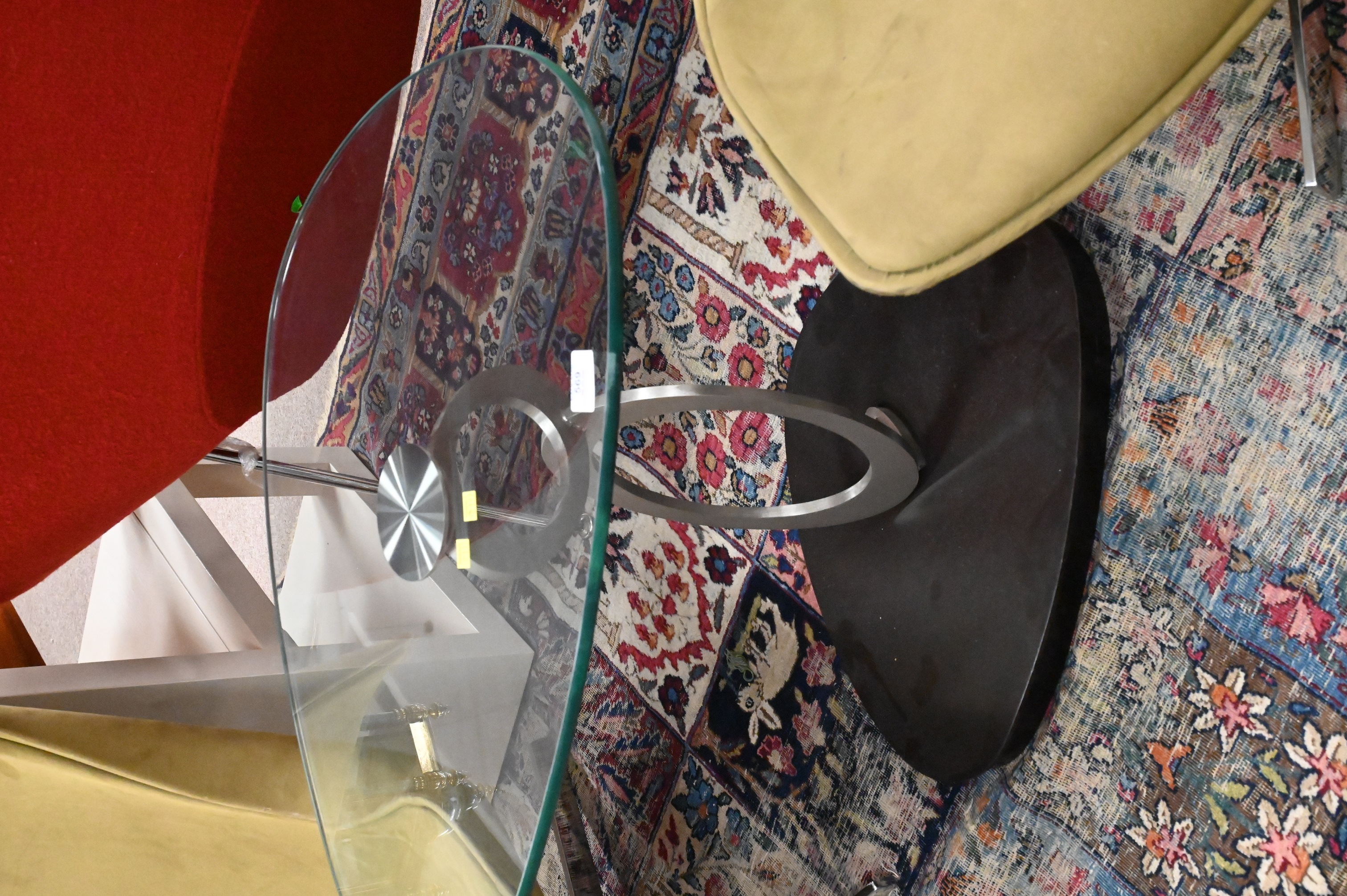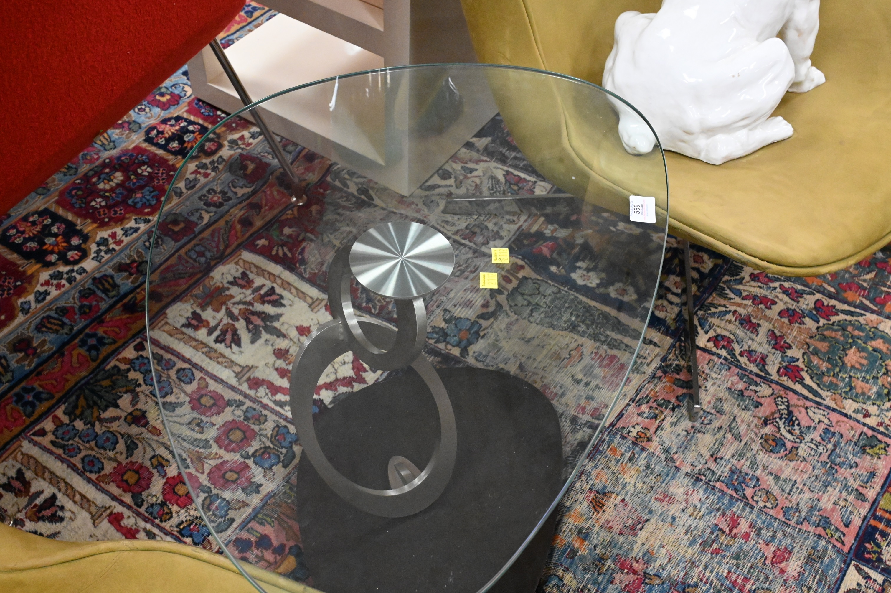 Lot 569: Modernist Amoeba Shaped Metal and Glass End Table
