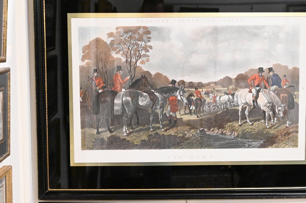 Lot 569: Two Hand-Colored Aquatints by John Frederick Herring Sr., in eglomise mats, image 17 1/2″ x 30 1/2″. Provenance: An estate from Redding, CT.